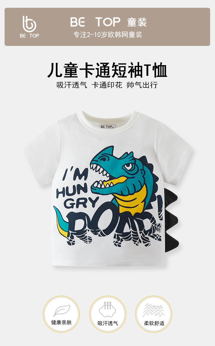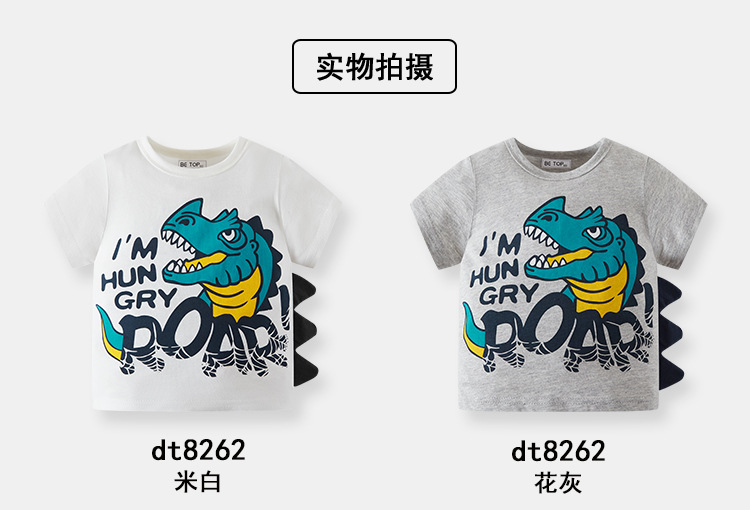 Ser Superior dinosaurio algodón de los niños de manga corta 2024 verano nuevo estilo coreano de dibujos animados Top Boy bebé entrega de una sola pieza
