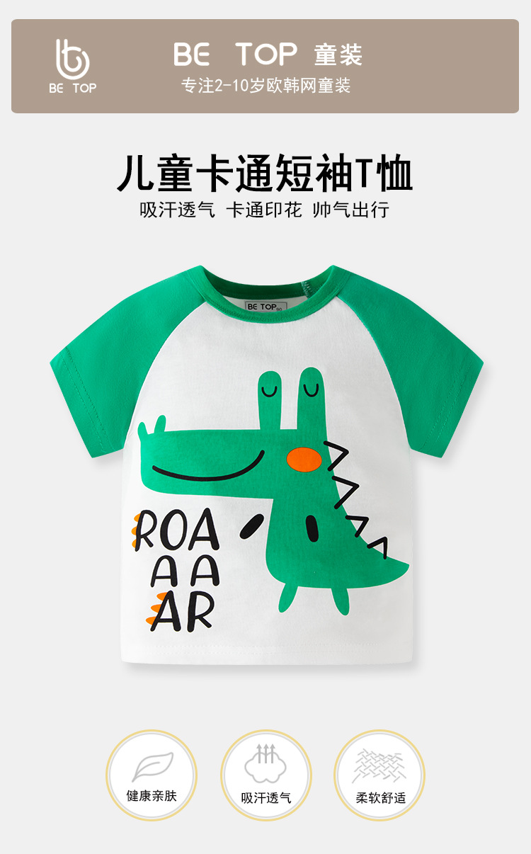 Camiseta de manga corta para niños de verano de algodón para niños de media manga de estilo coreano de dibujos animados para bebés de moda entrega de una pieza para niños