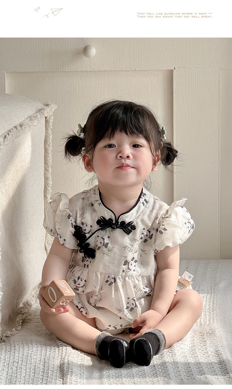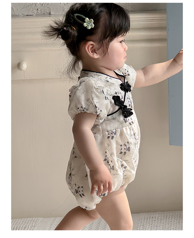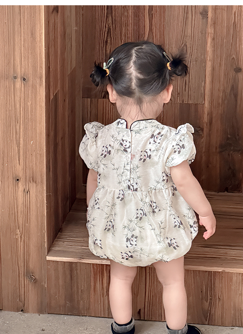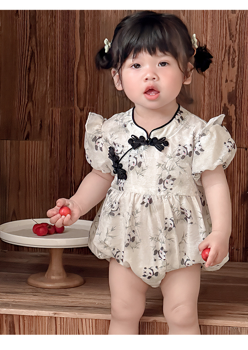 Estilo de verano nuevo estilo chino ropa nacional de una pieza niña bebé verano gatear vestido de cumpleaños de panda luna llena cien días vestido de fin de semana
