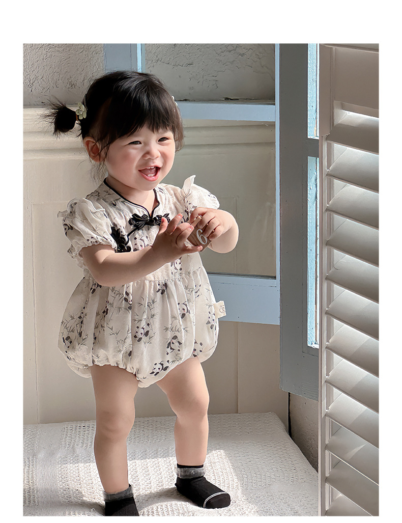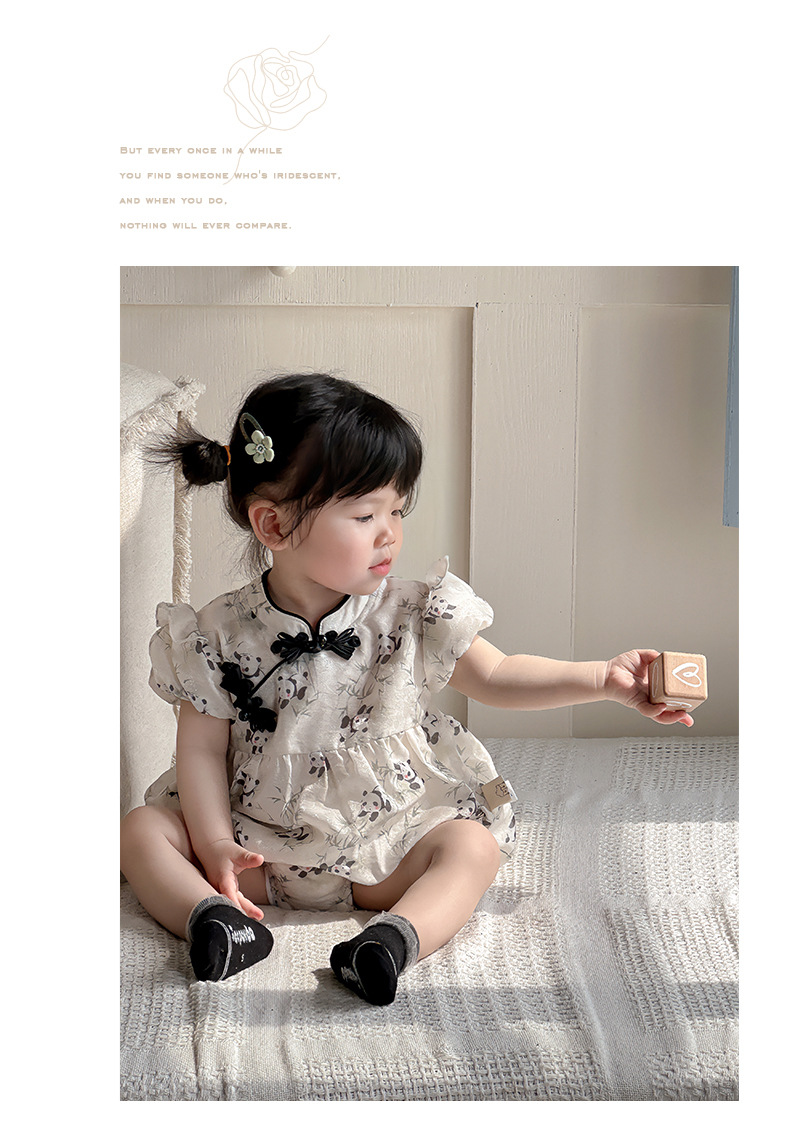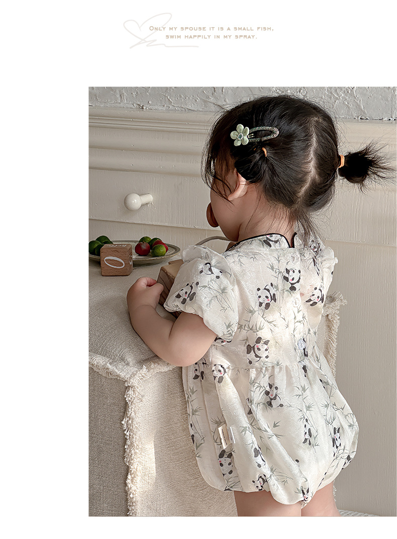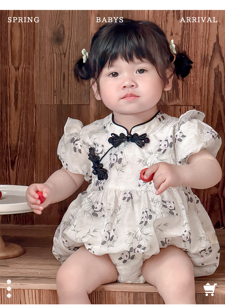 Estilo de verano nuevo estilo chino ropa nacional de una pieza niña bebé verano gatear vestido de cumpleaños de panda luna llena cien días vestido de fin de semana