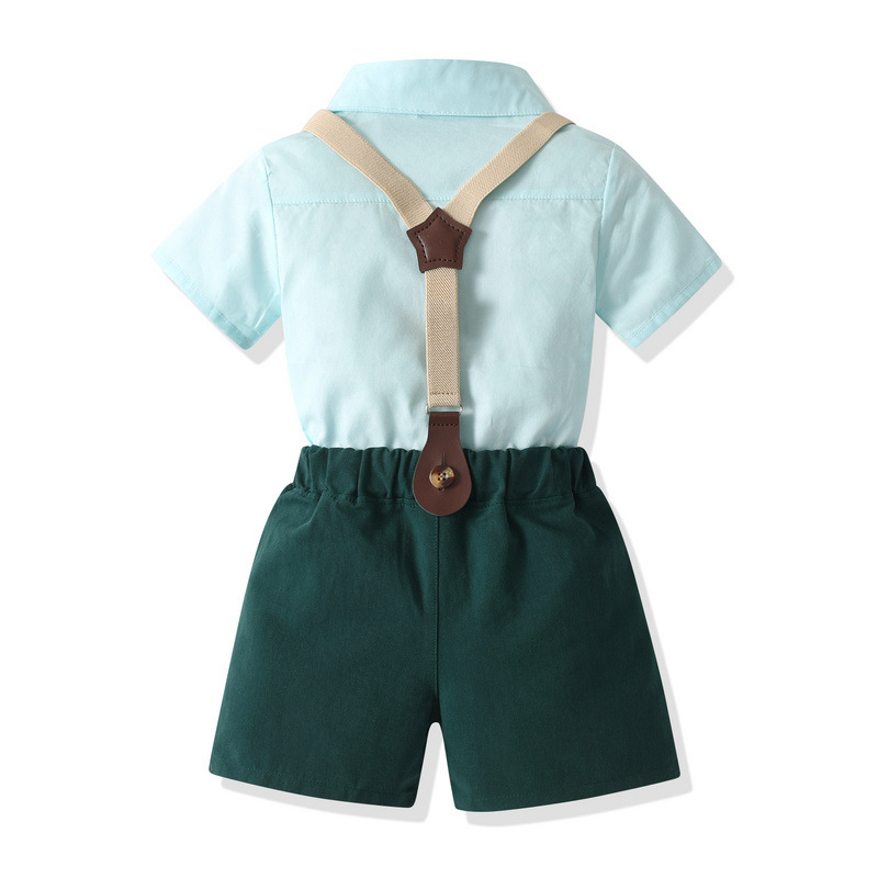 Verano Día del Niño Ropa de actuación para niños Estilo coreano solapa de manga corta con lazo Camisa para niños Pantalones cortos Traje de caballero