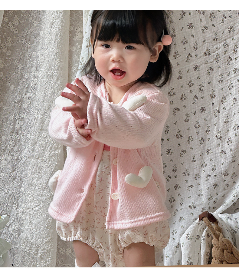 Cárdigan de punto para niñas de ropa para niños coreanos 24 nuevo vestido de primavera y otoño, abrigo de amor de lana de bebé lindo y súper lindo