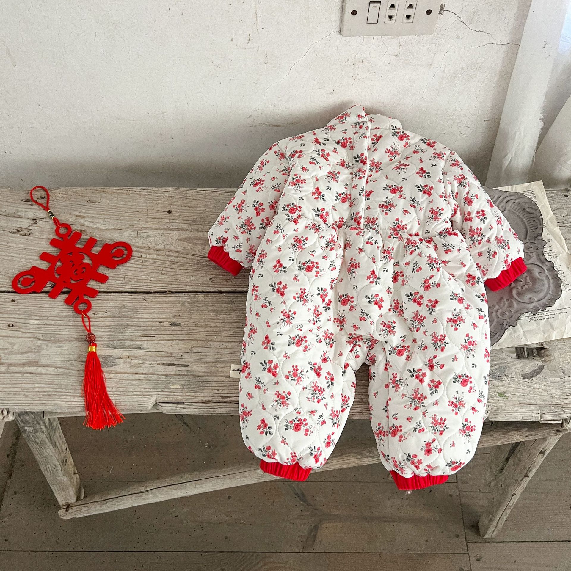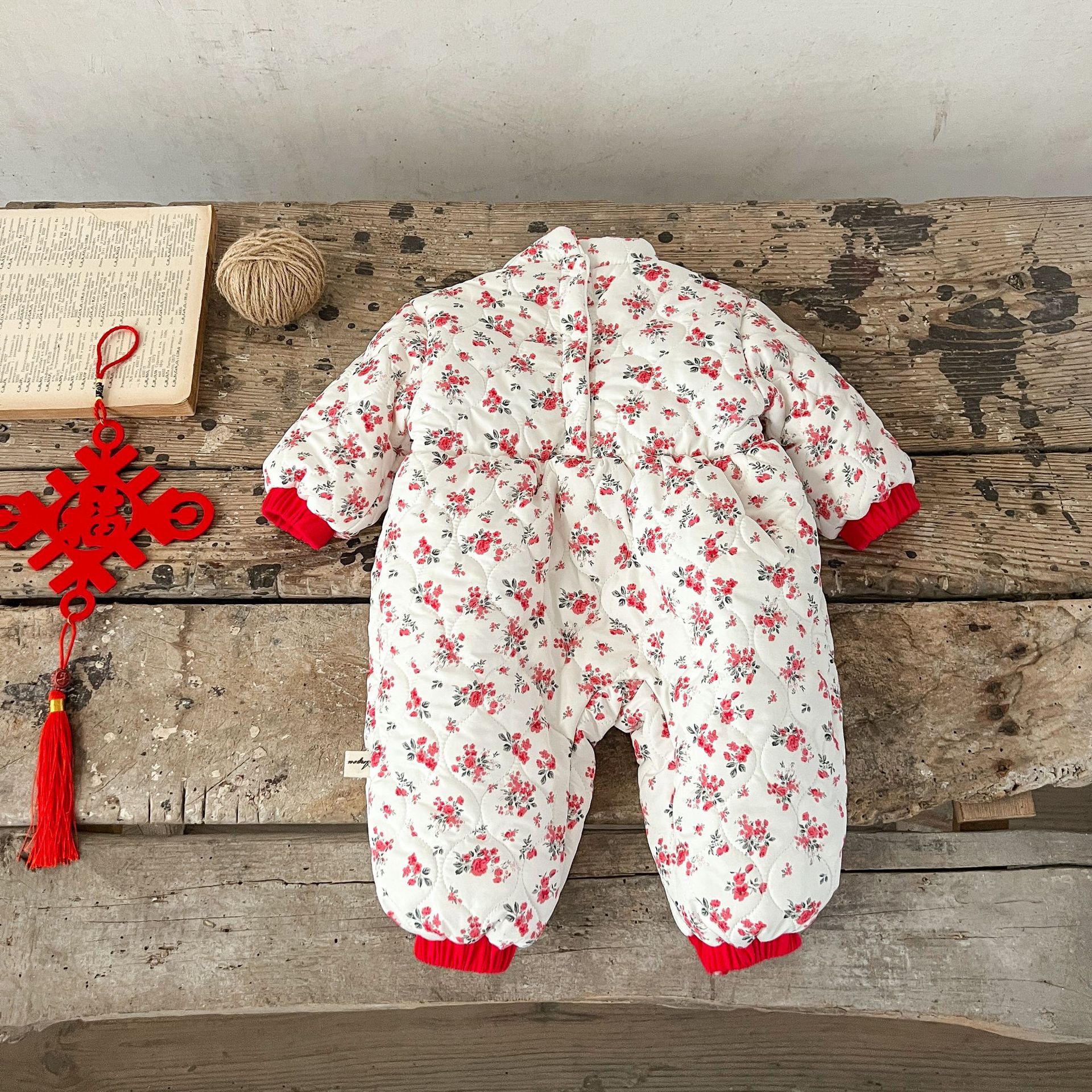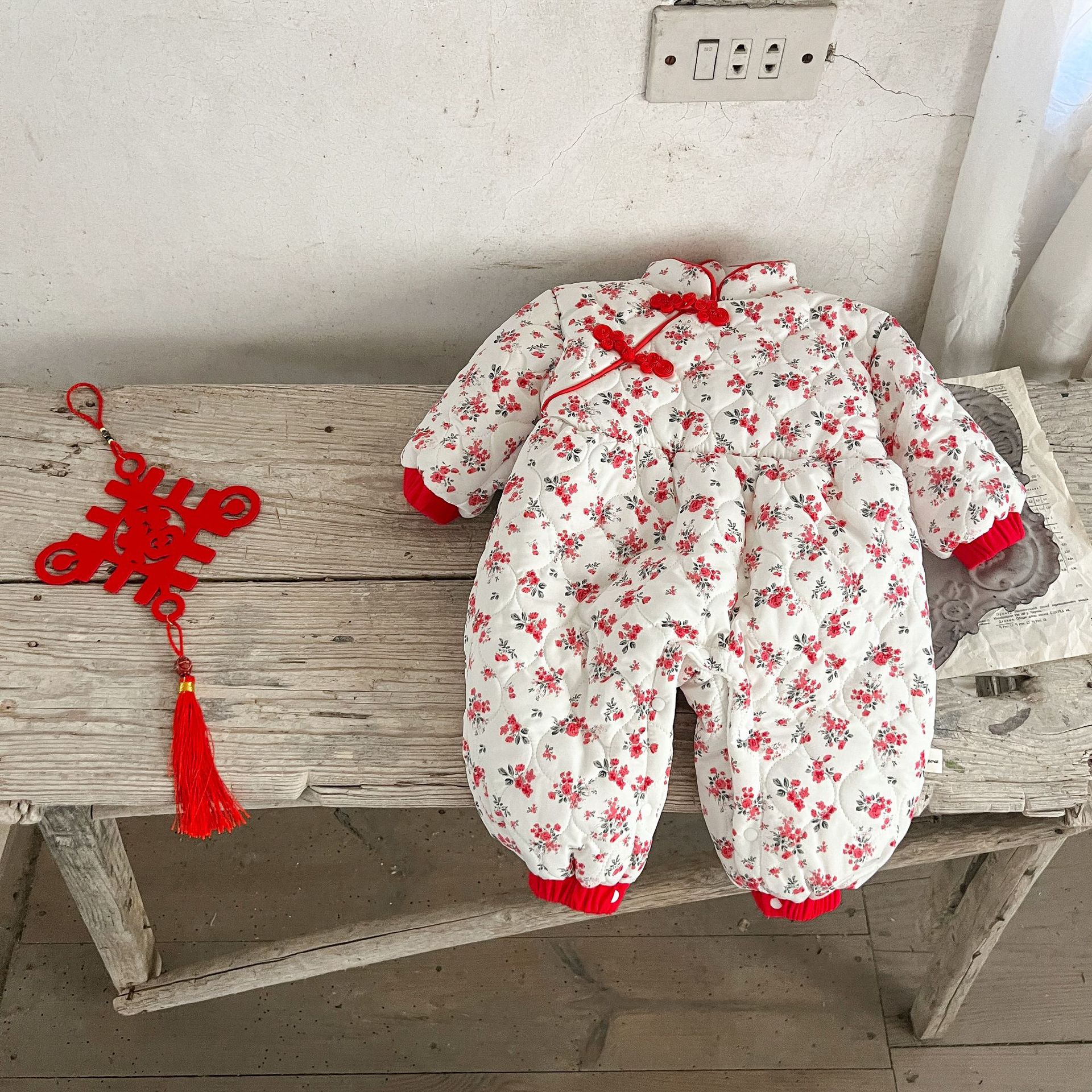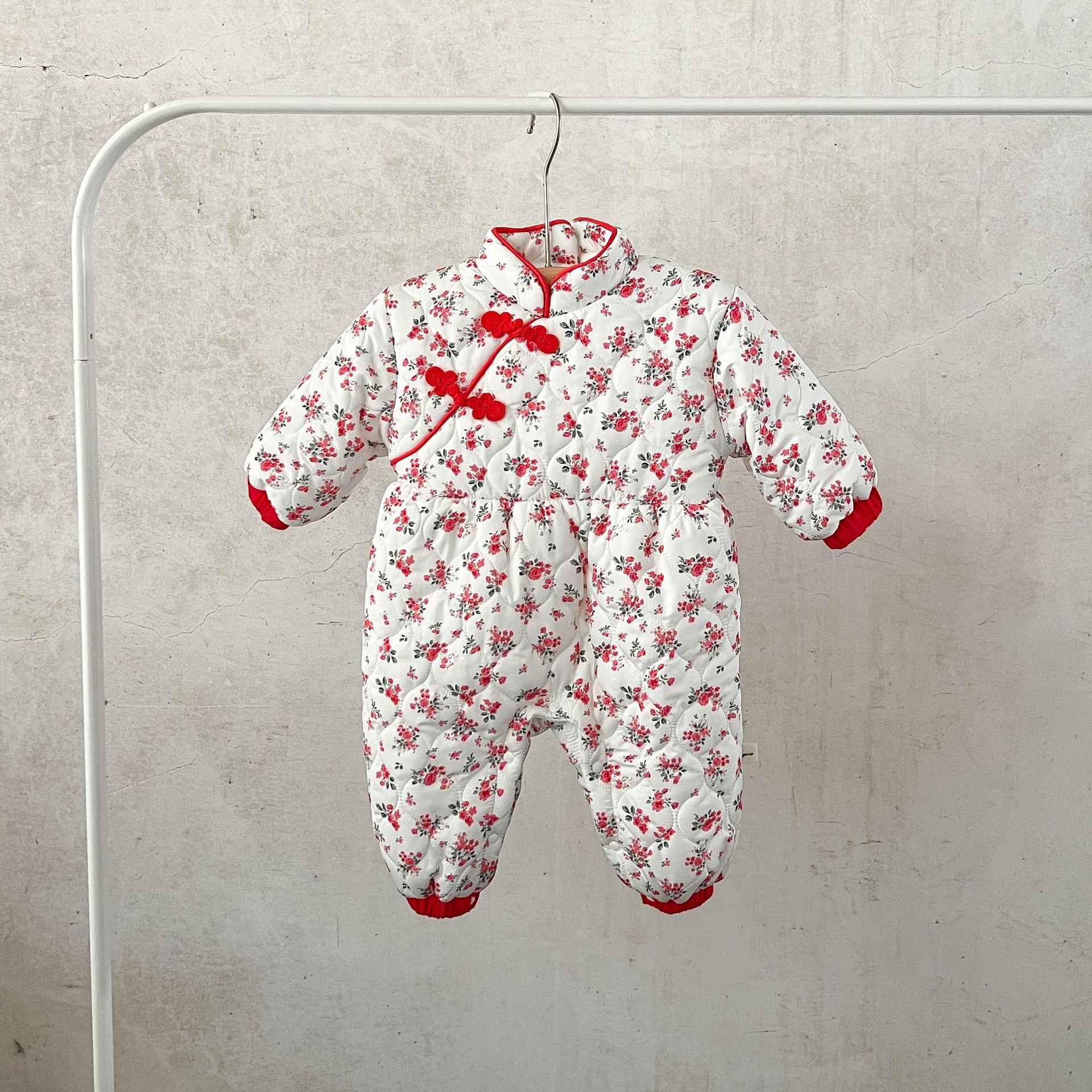 Niñas de invierno Tang estilo de lana forrada acolchado mono mameluco ins estilo chino floral engrosada mameluco caliente