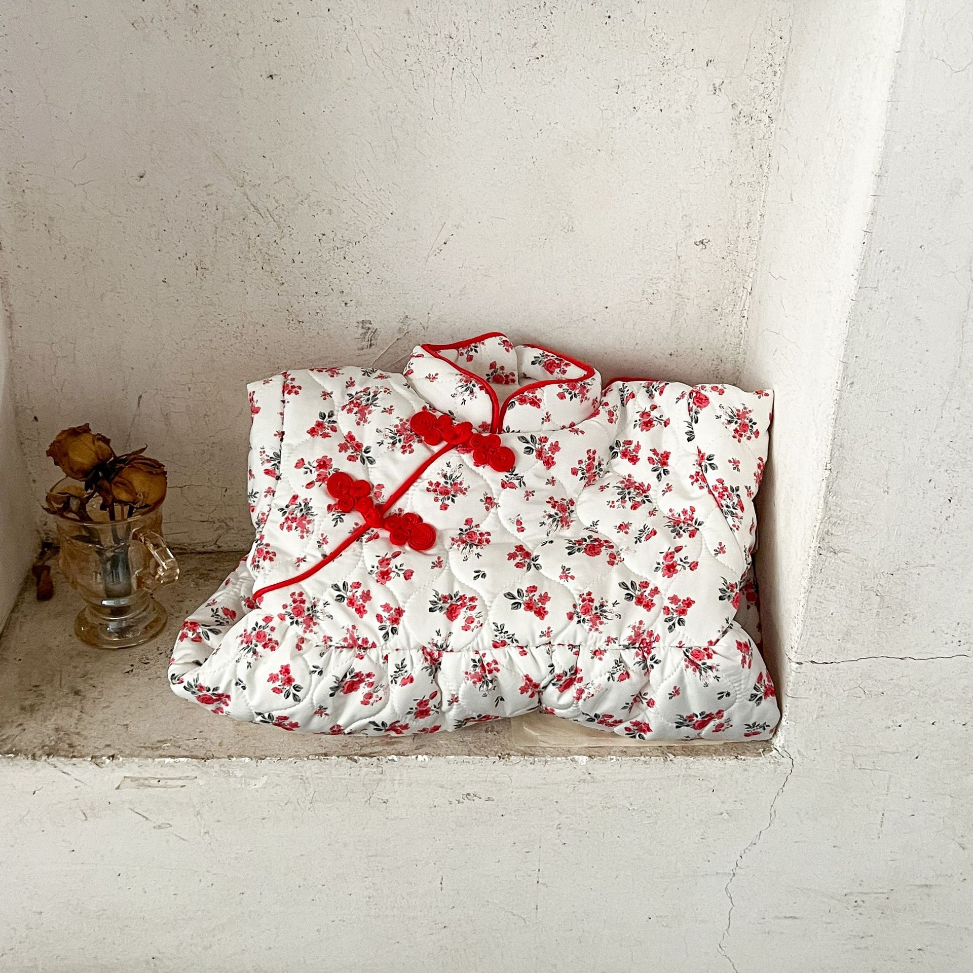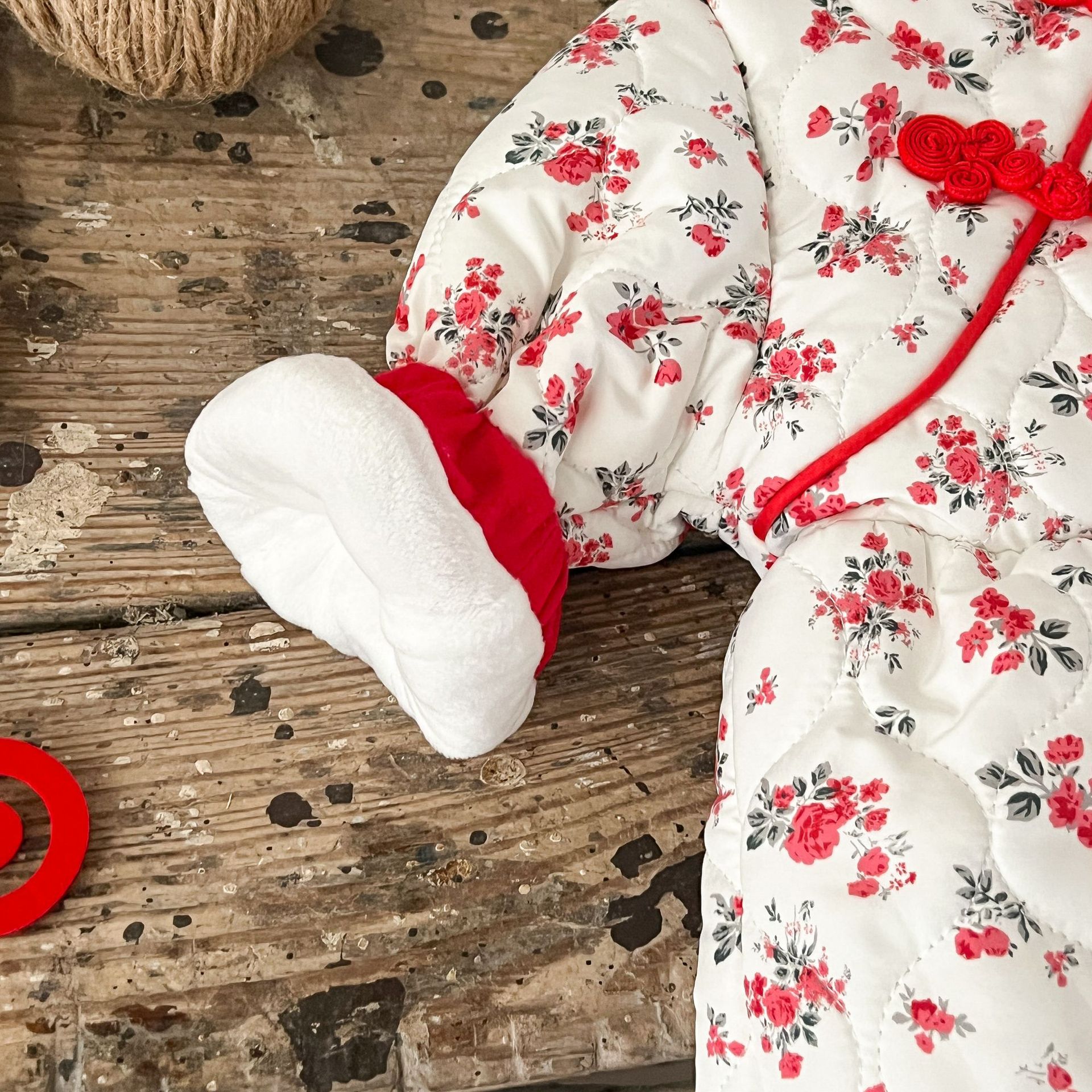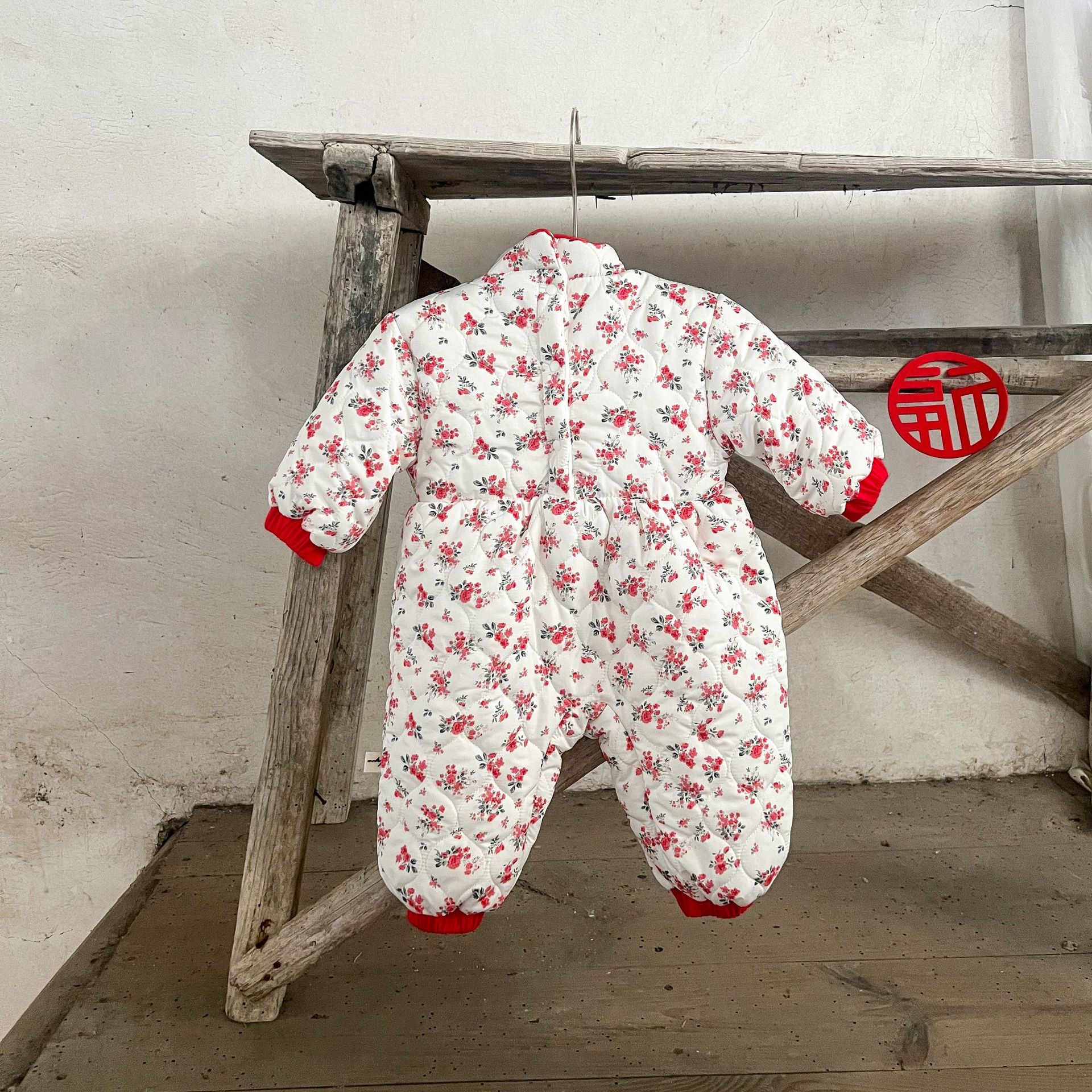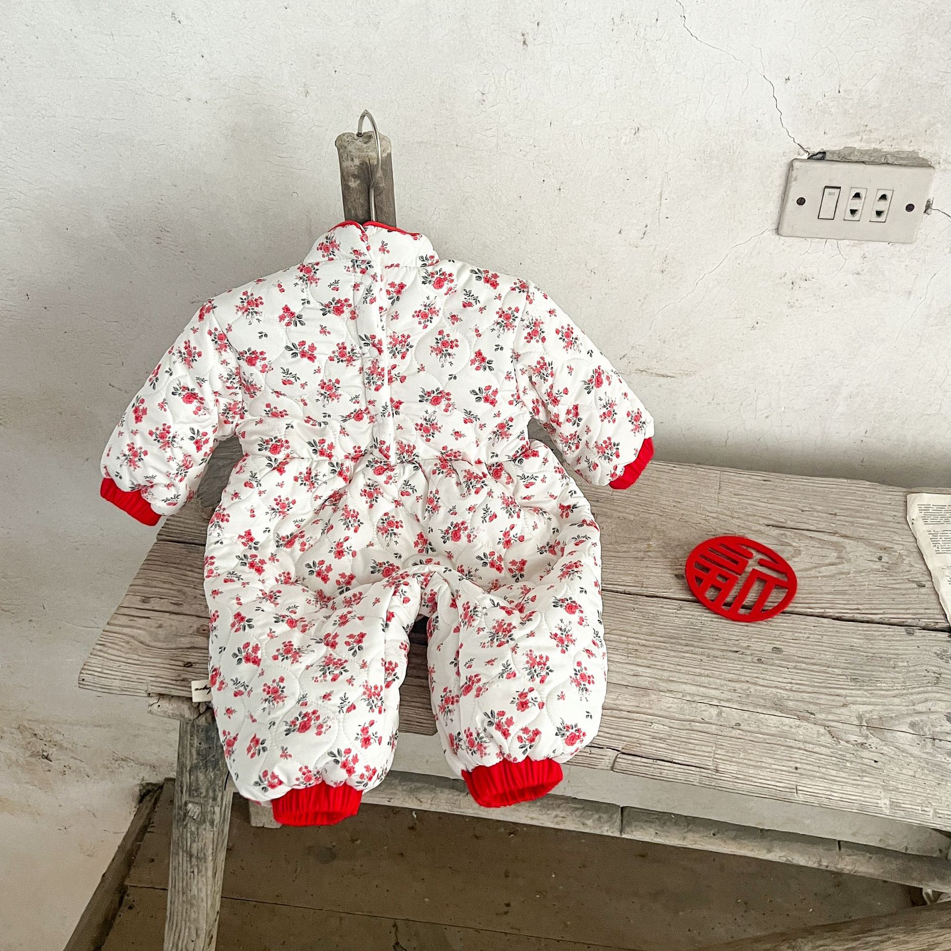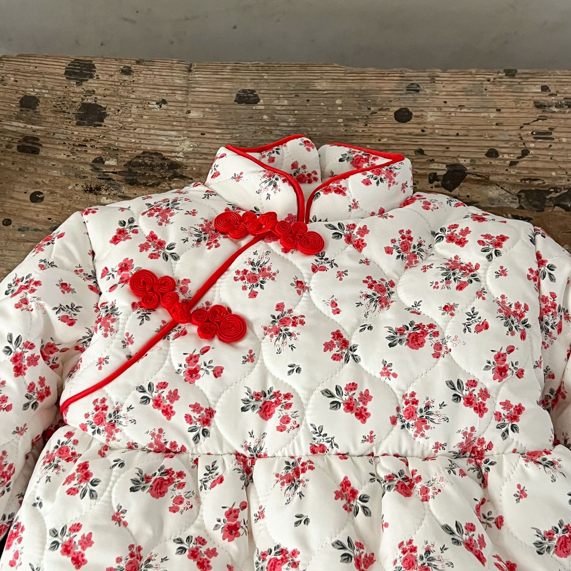 Niñas de invierno Tang estilo de lana forrada acolchado mono mameluco ins estilo chino floral engrosada mameluco caliente