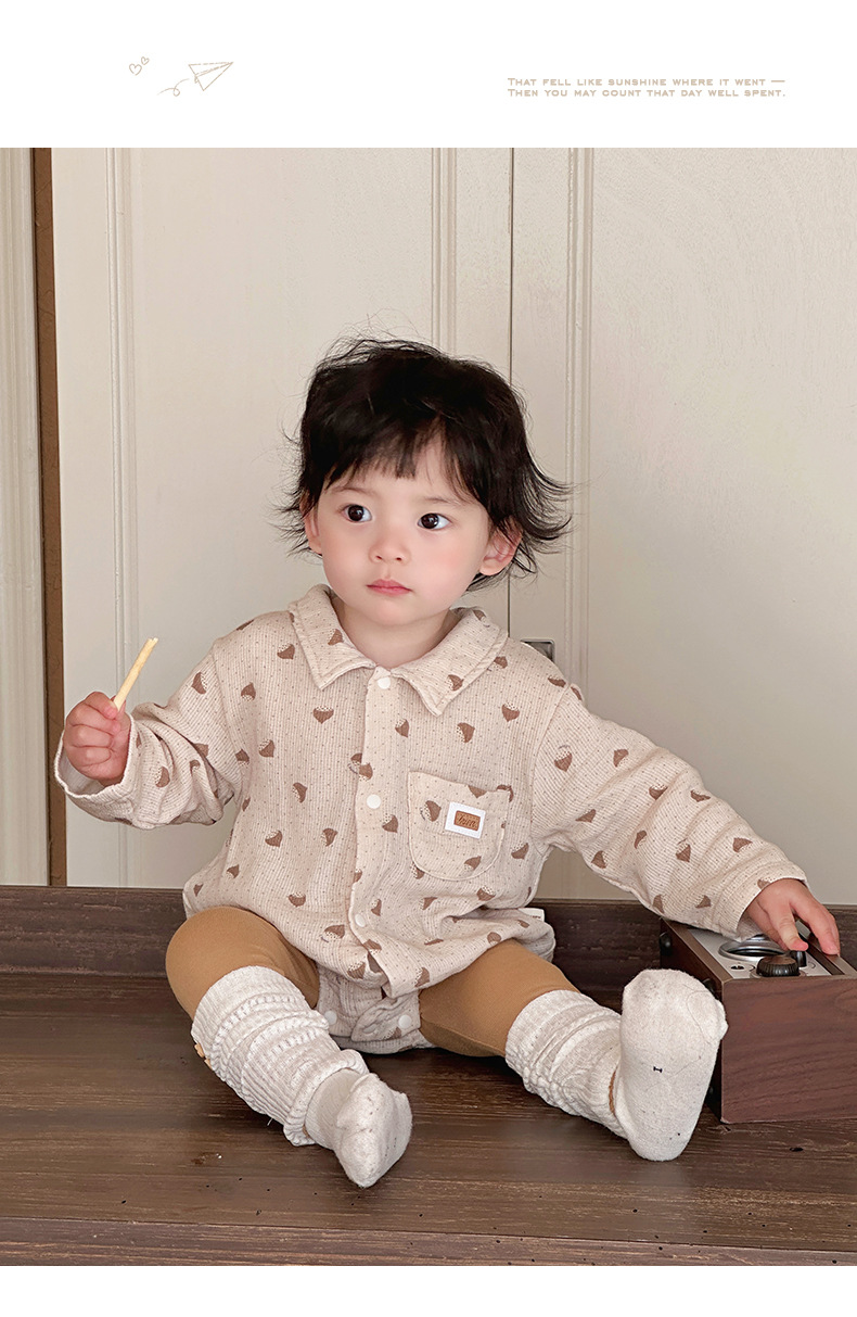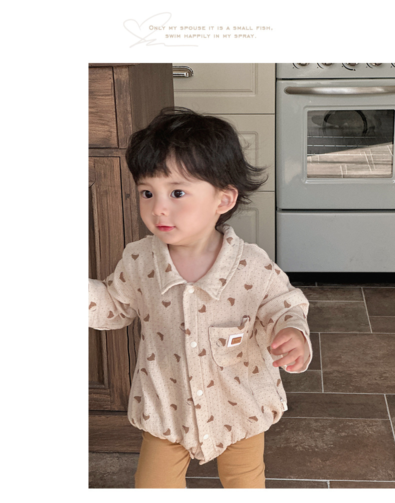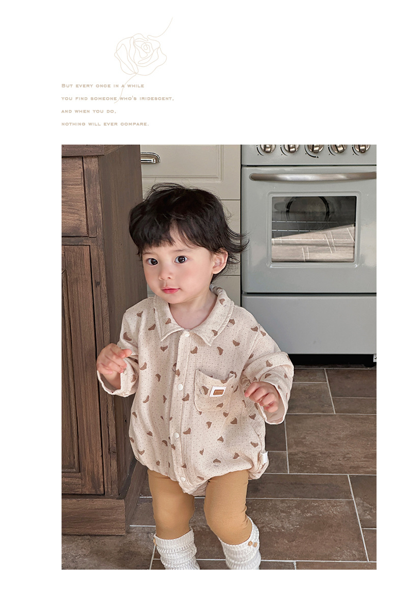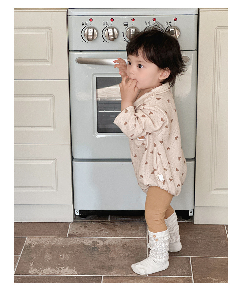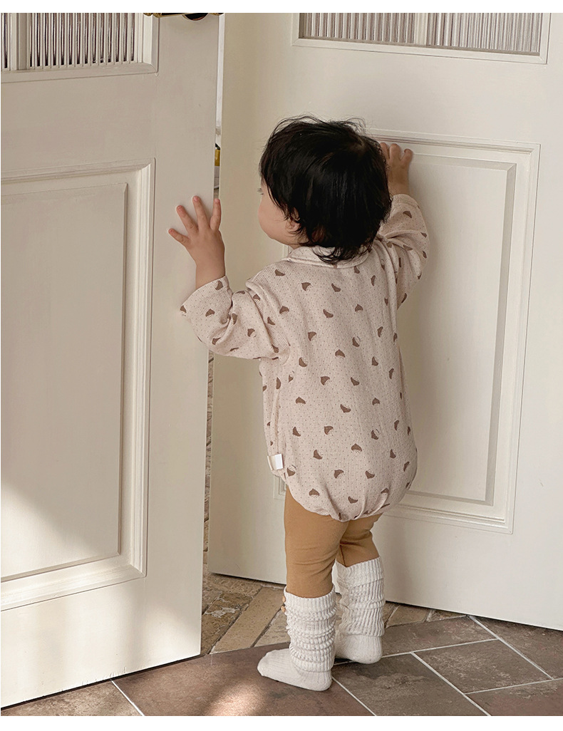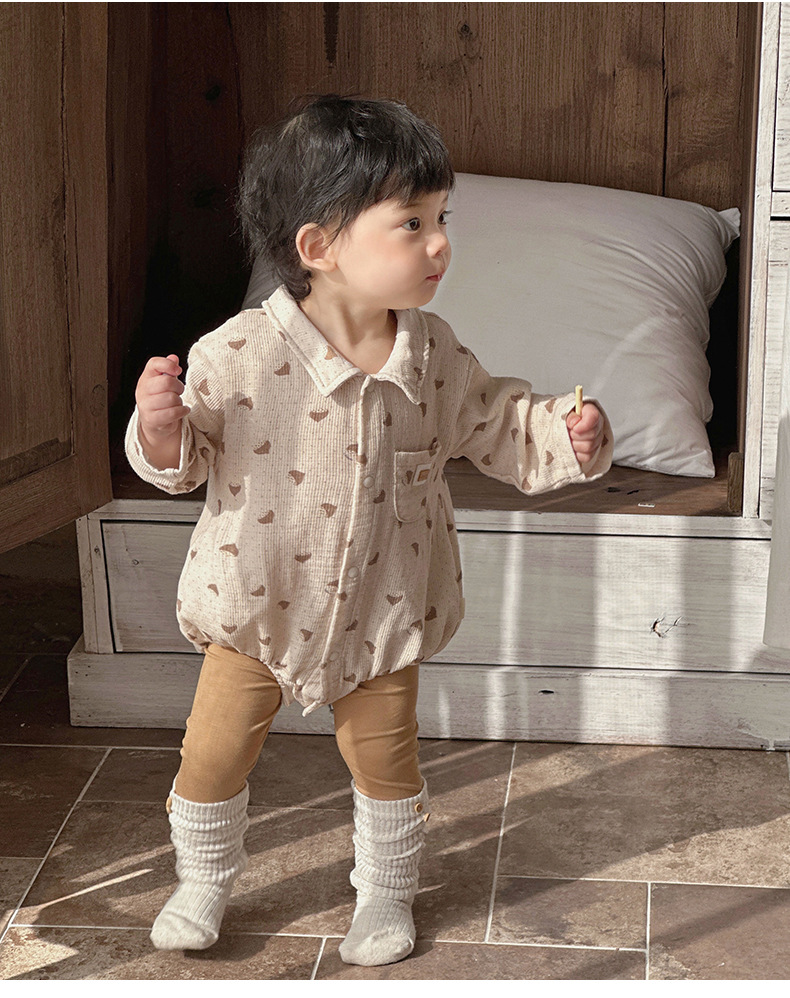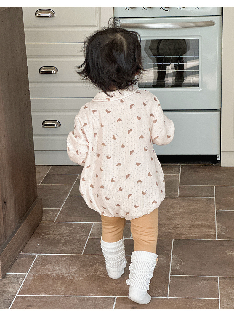 Versión coreana de primavera del mameluco de solapa de manga larga del bebé con impresión completa del bebé