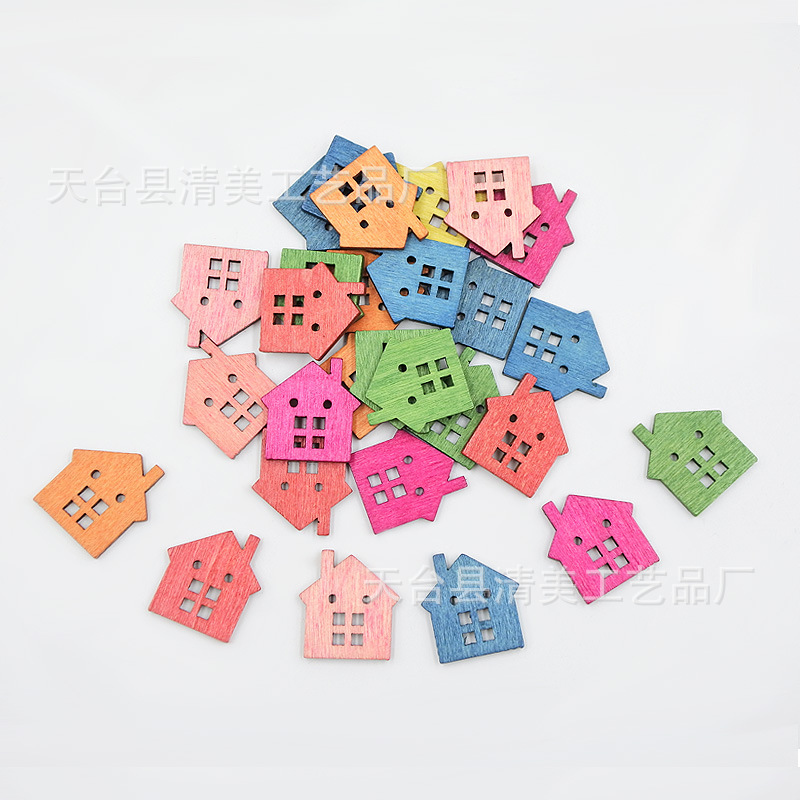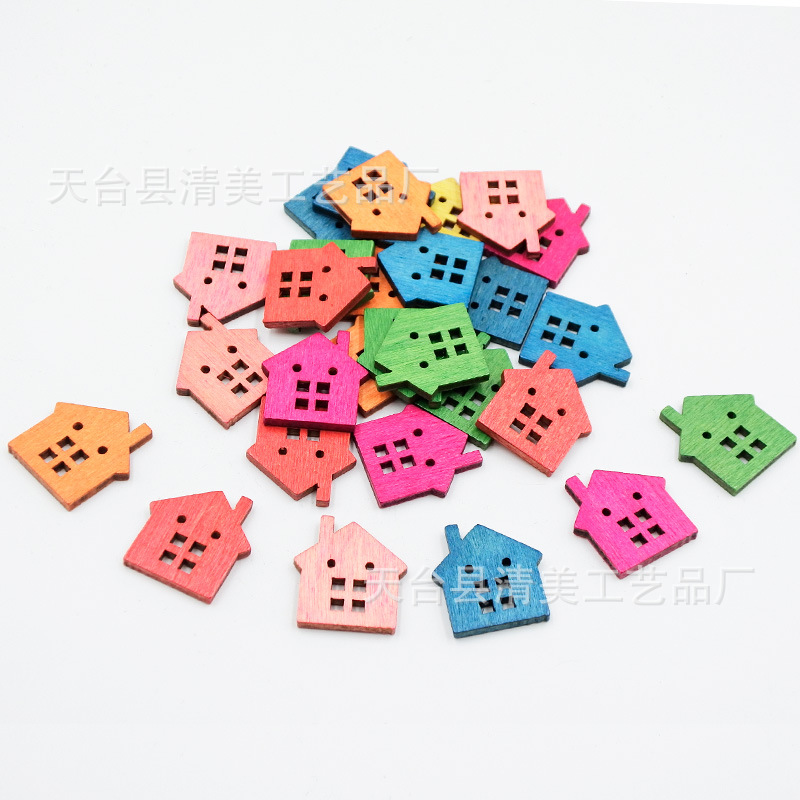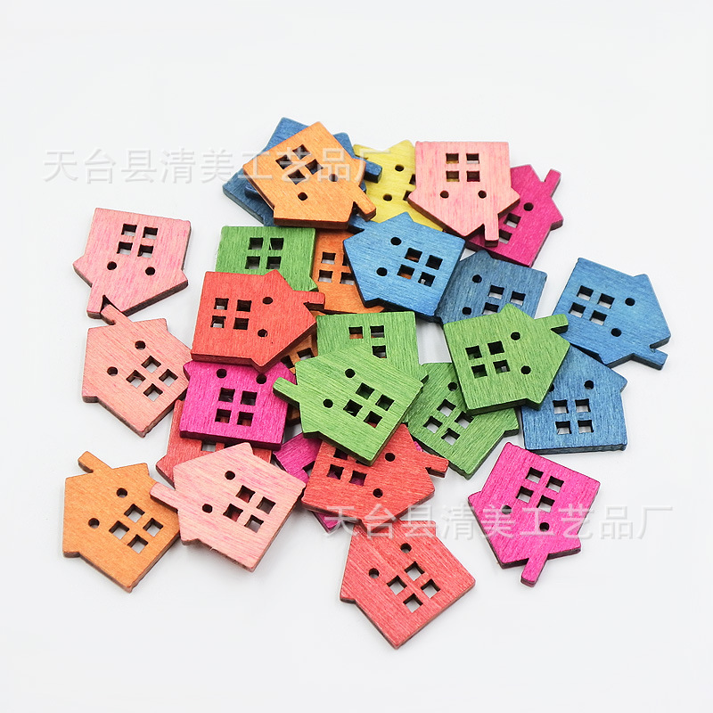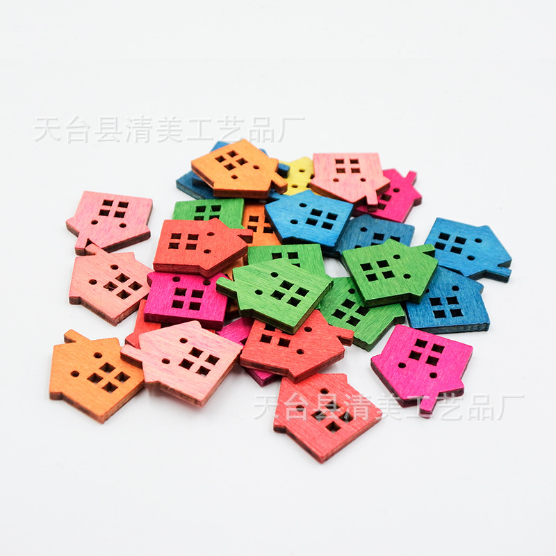 22mm madera retro casa botón de madera decoración de bricolaje decoración colorida forma de casa decoración ecológica pieza de madera decorativa