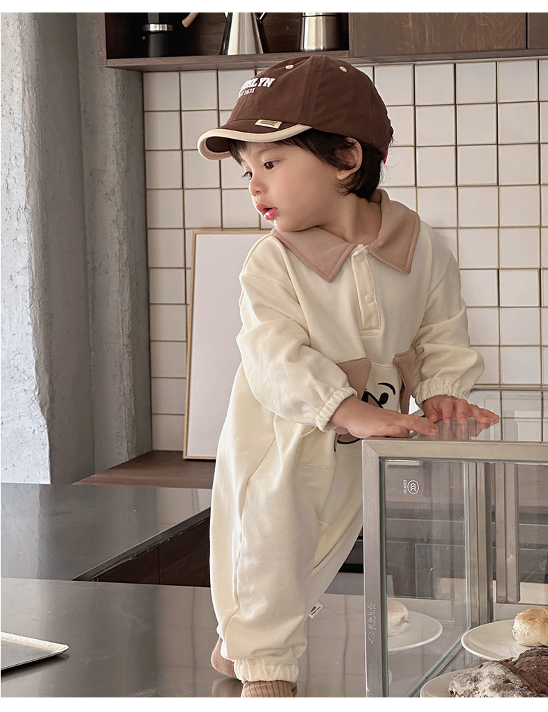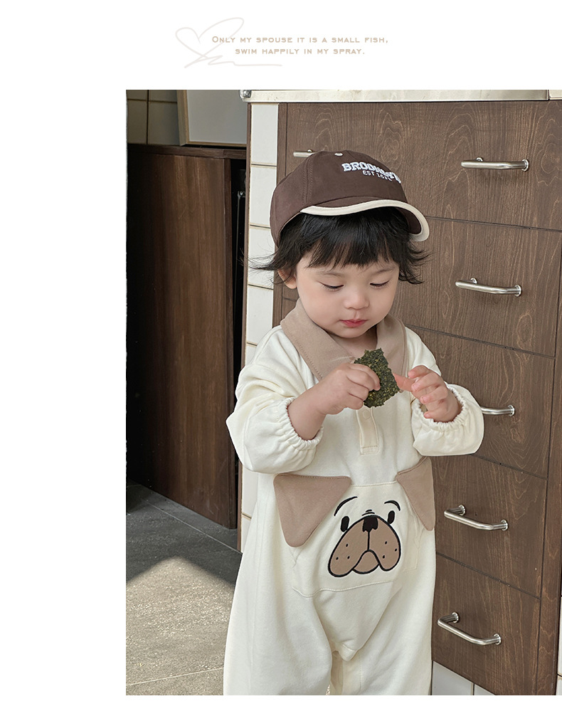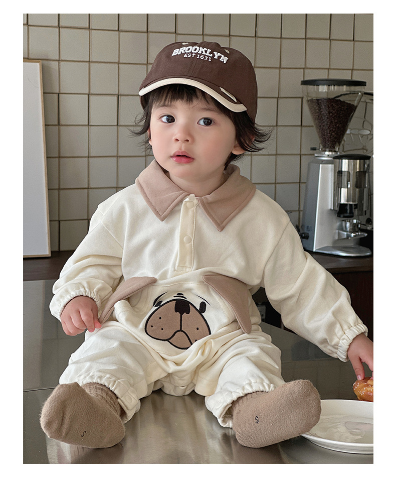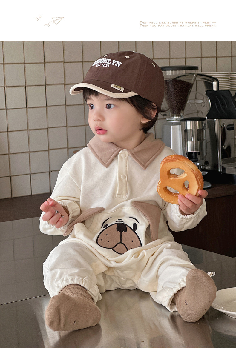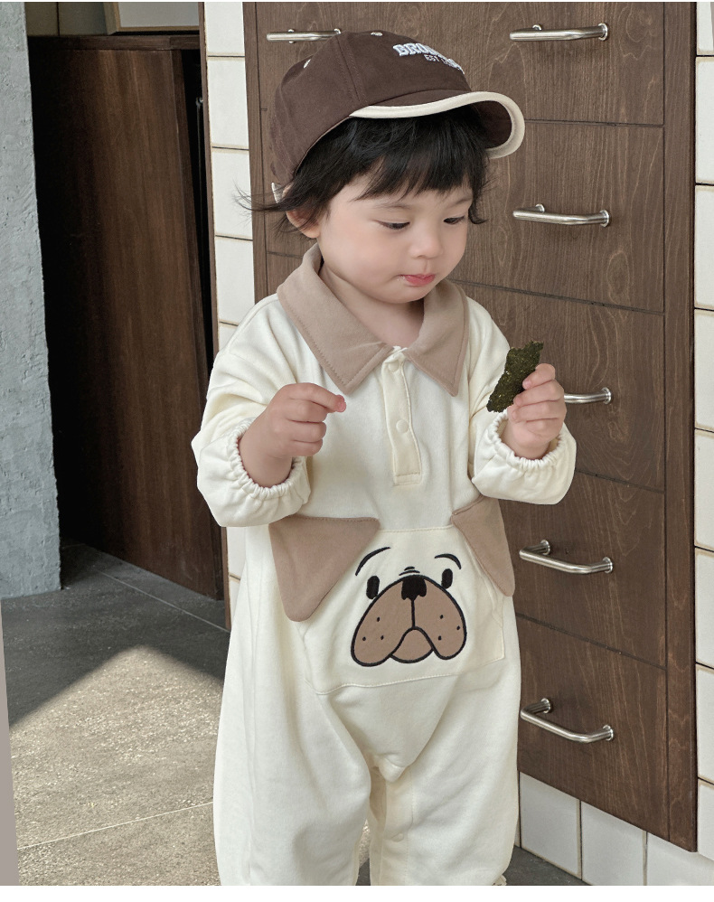 Ins versión coreana del bebé 0-1 bebé primavera y otoño dibujos animados cachorro de manga larga mono ropa de recién nacido lindo traje de escalada