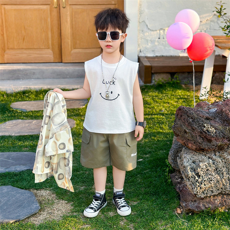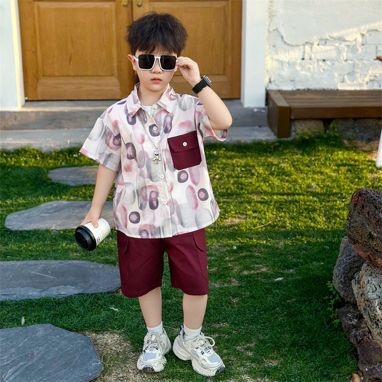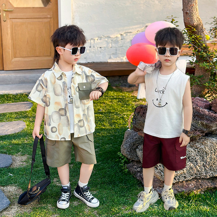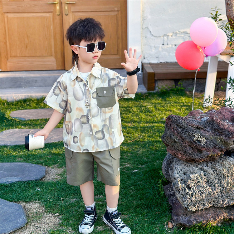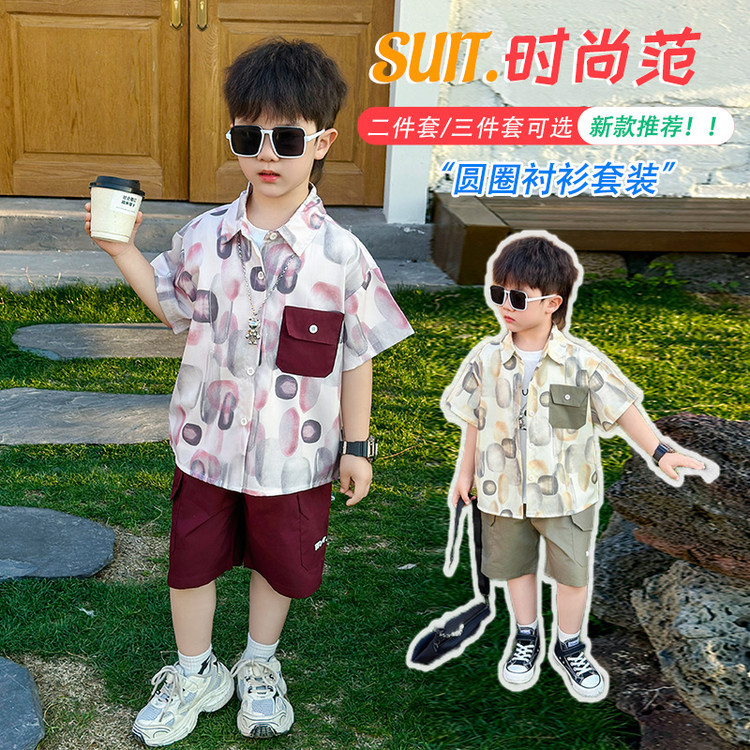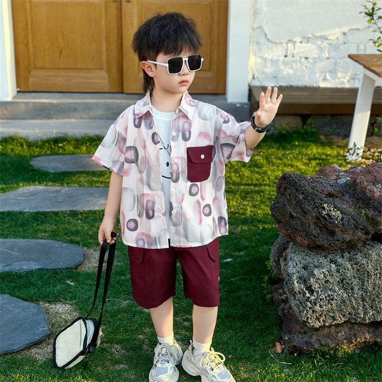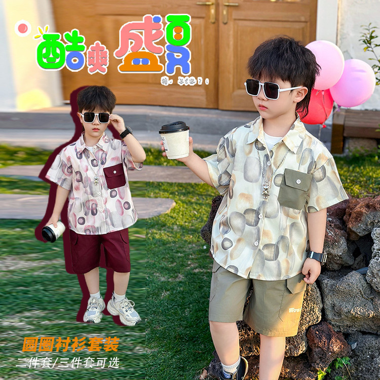 7865 Traje de verano para niños 2025 Nuevo estilo Camisa de manga corta para niños Traje de tres piezas Ropa casual de verano para bebés Coreano