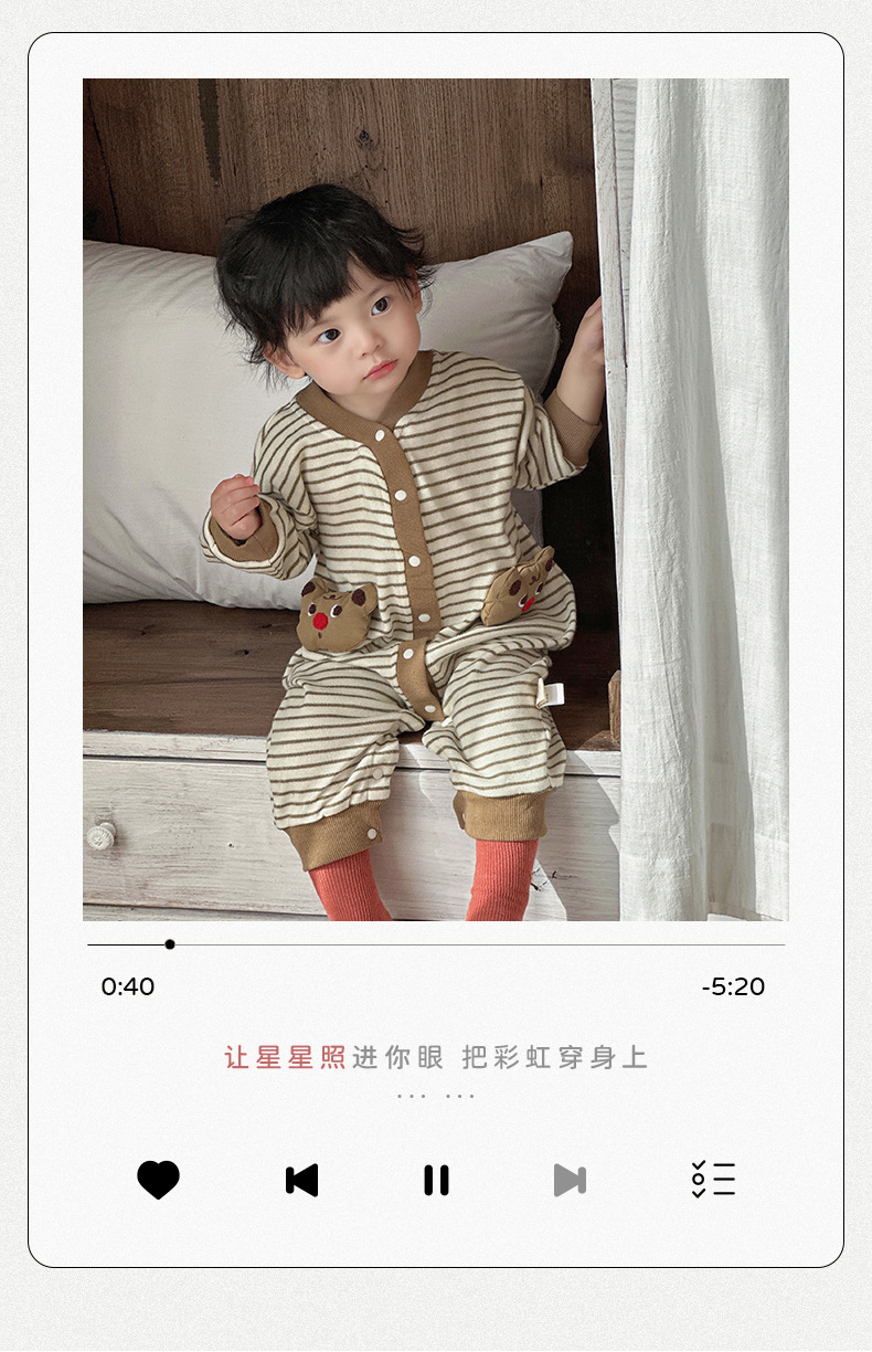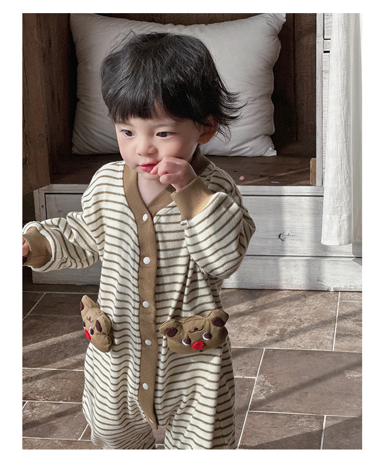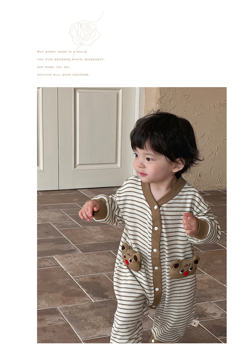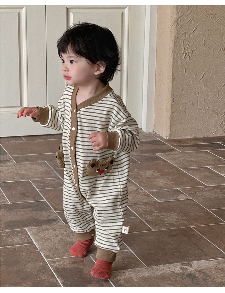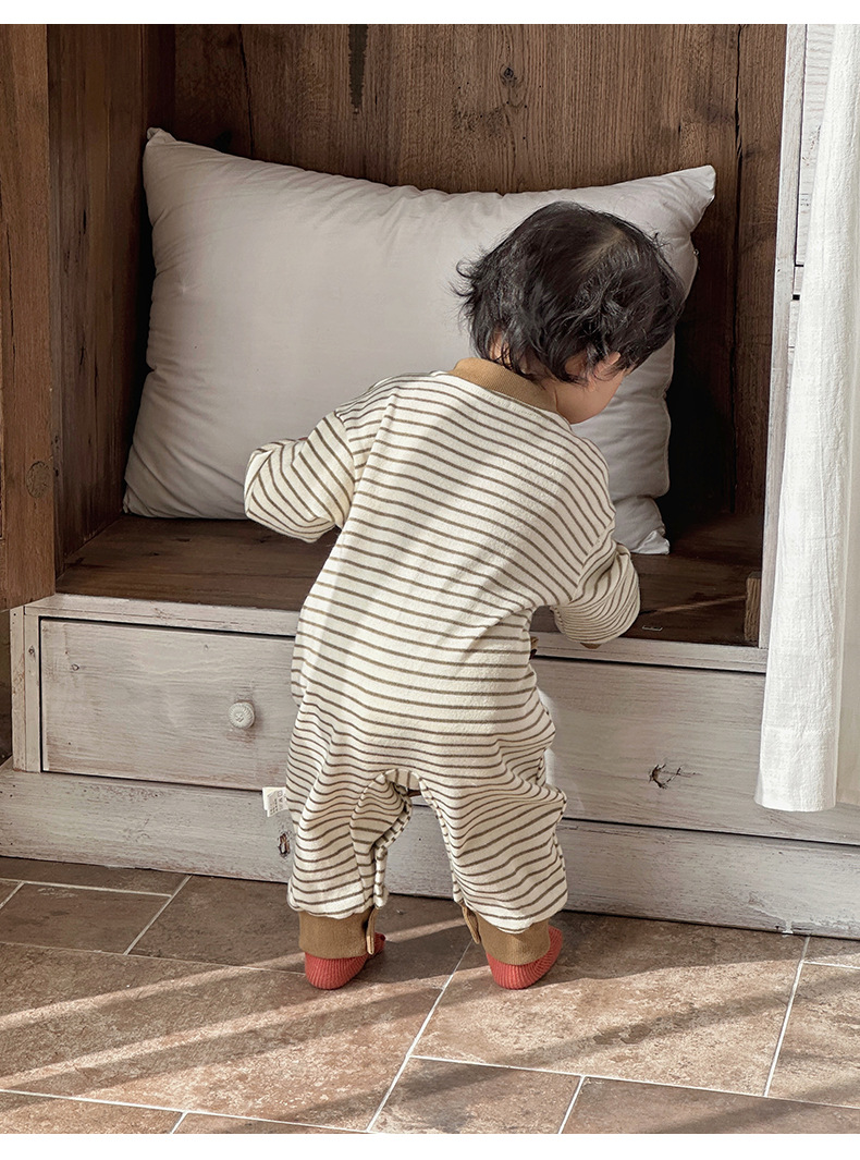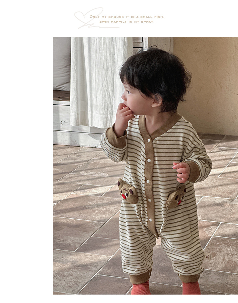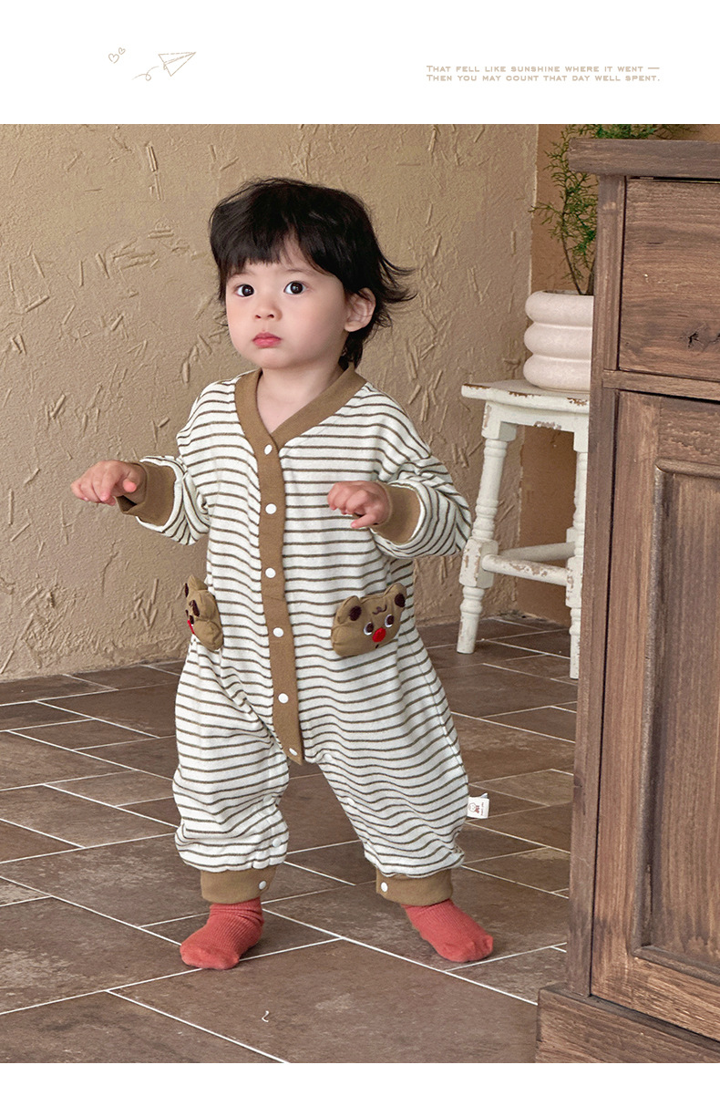 Ropa de una pieza para bebé coreana de primavera, mameluco a rayas de manga larga de estilo occidental para bebés y niños pequeños, traje de escalada de dibujos animados lindo y divertido para bebés