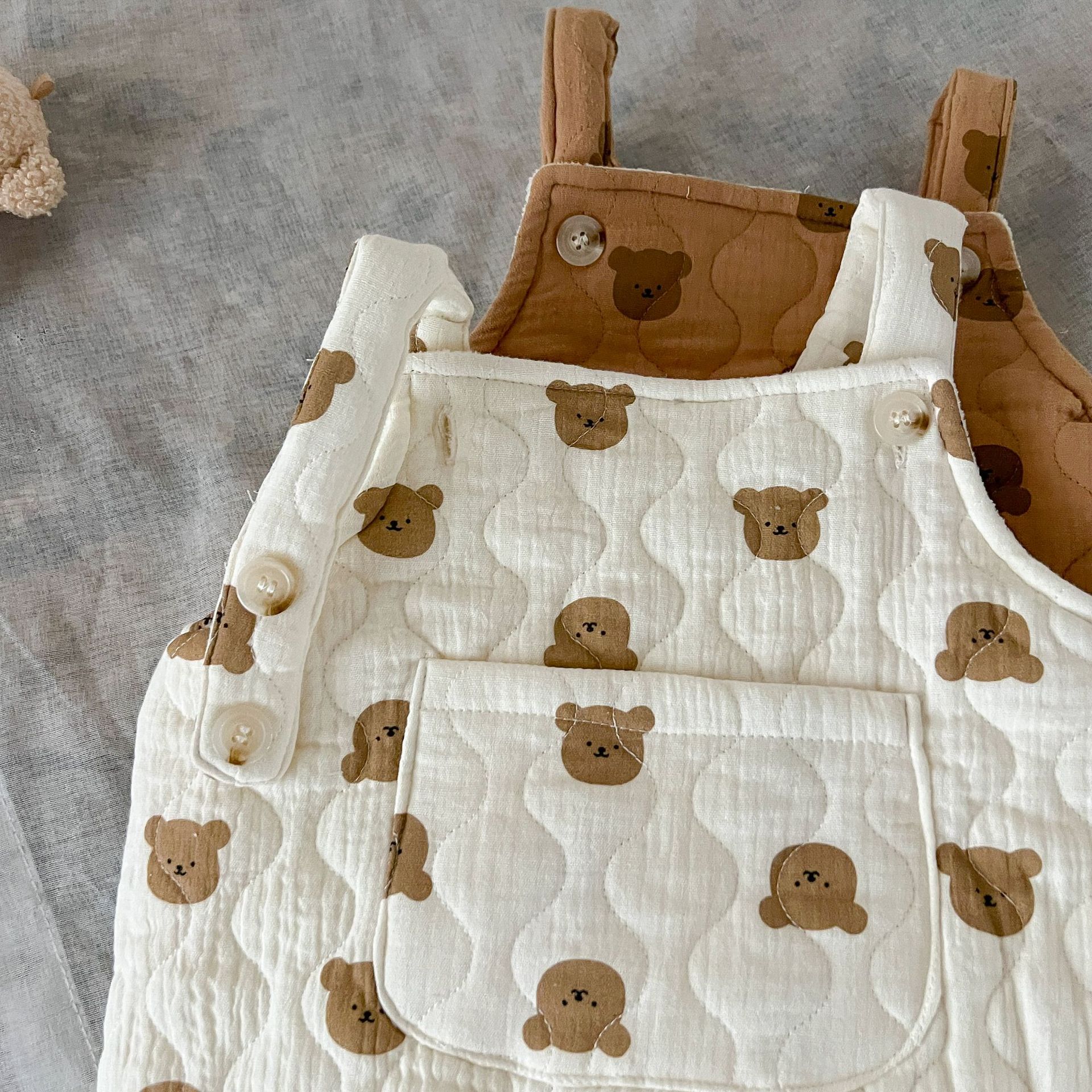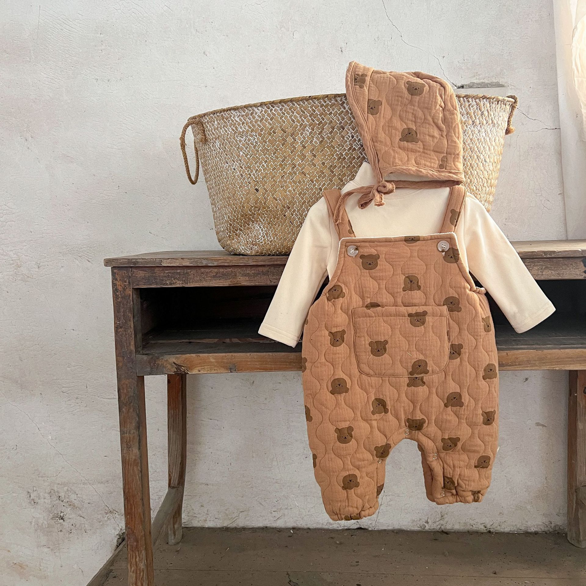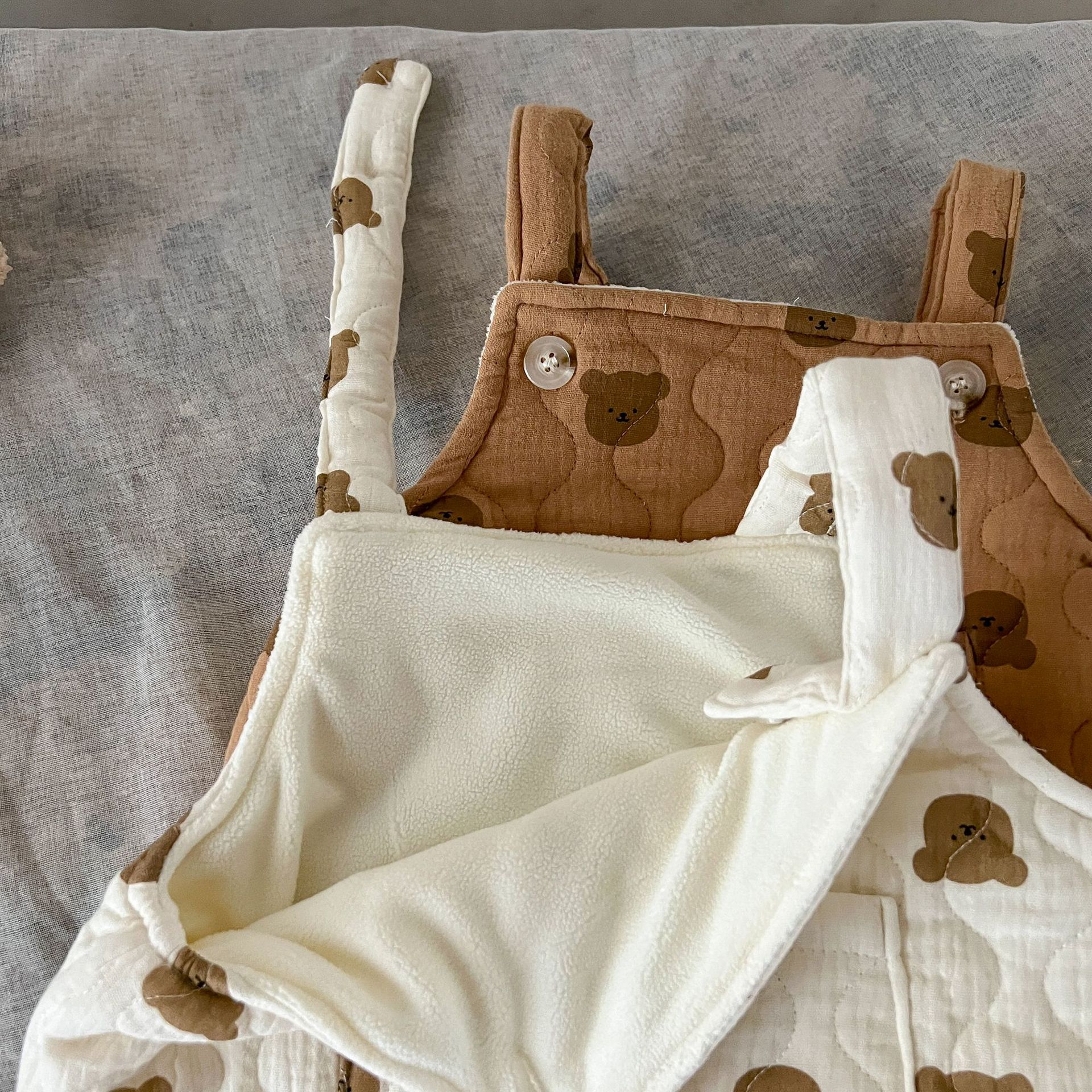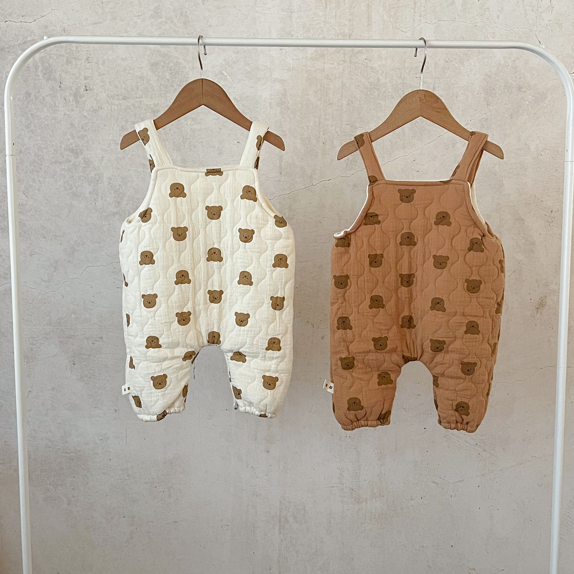 INS Bebé Ropa de otoño e invierno lindo bebé acolchado forrado de lana oso largo mameluco engrosado cálido recién nacido de una sola pieza