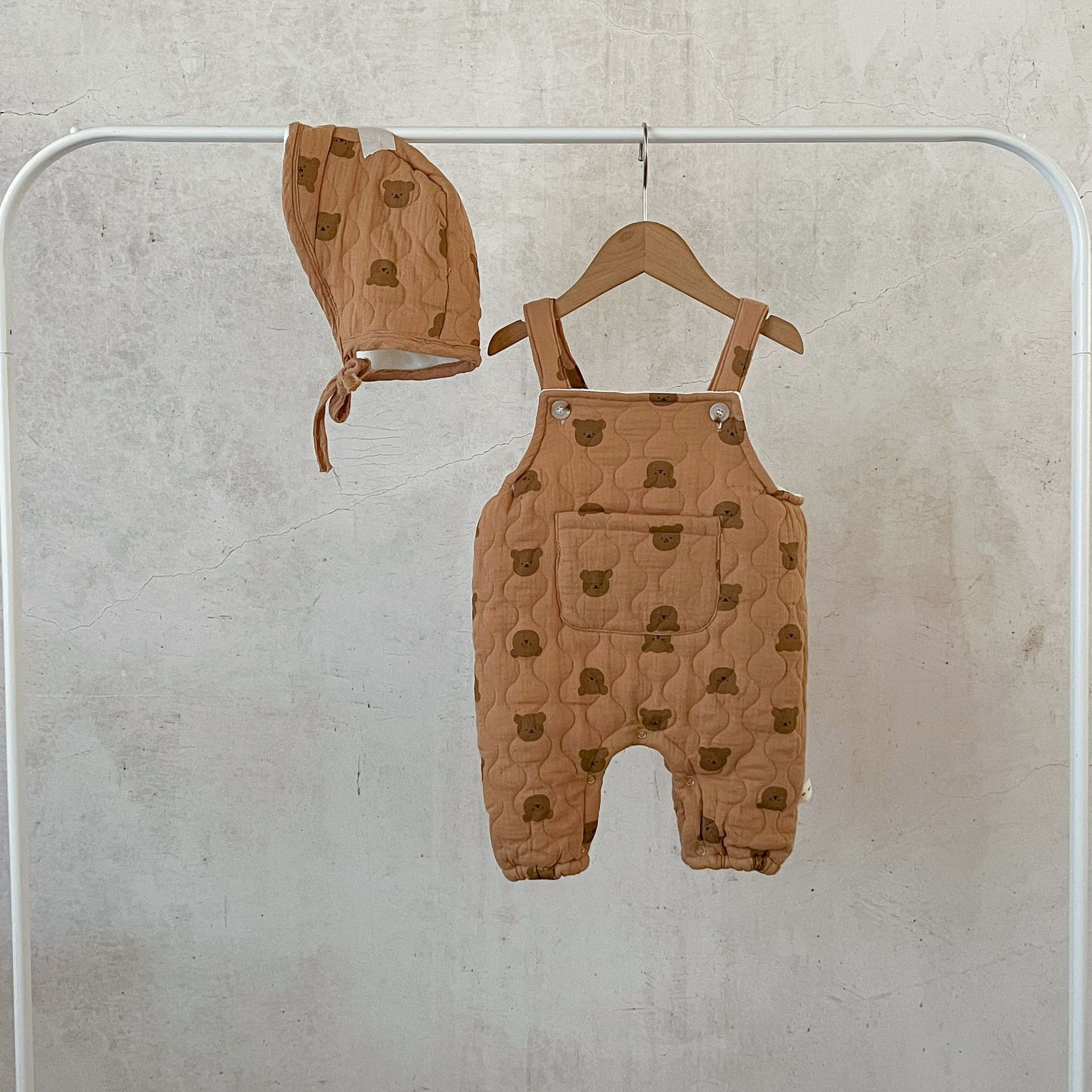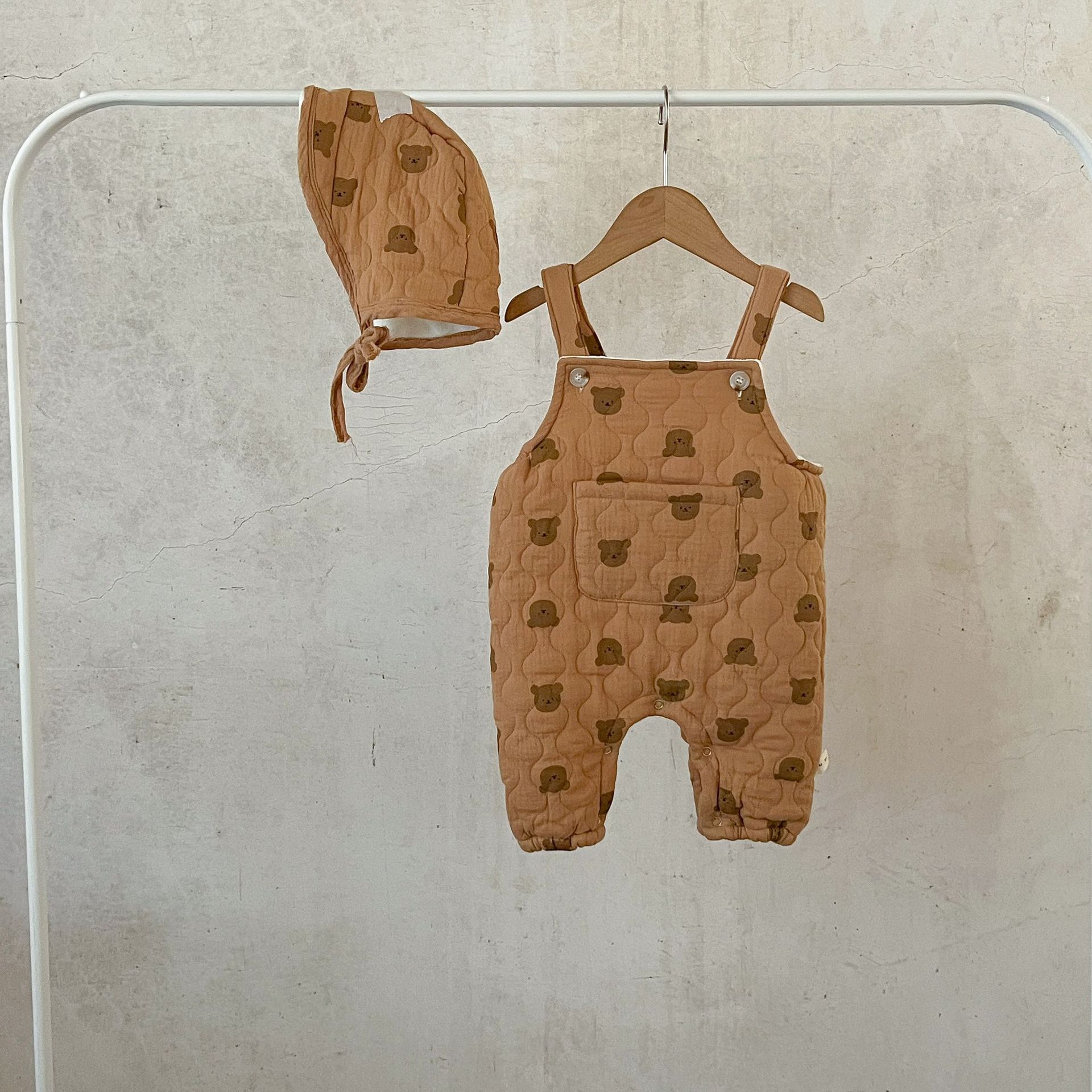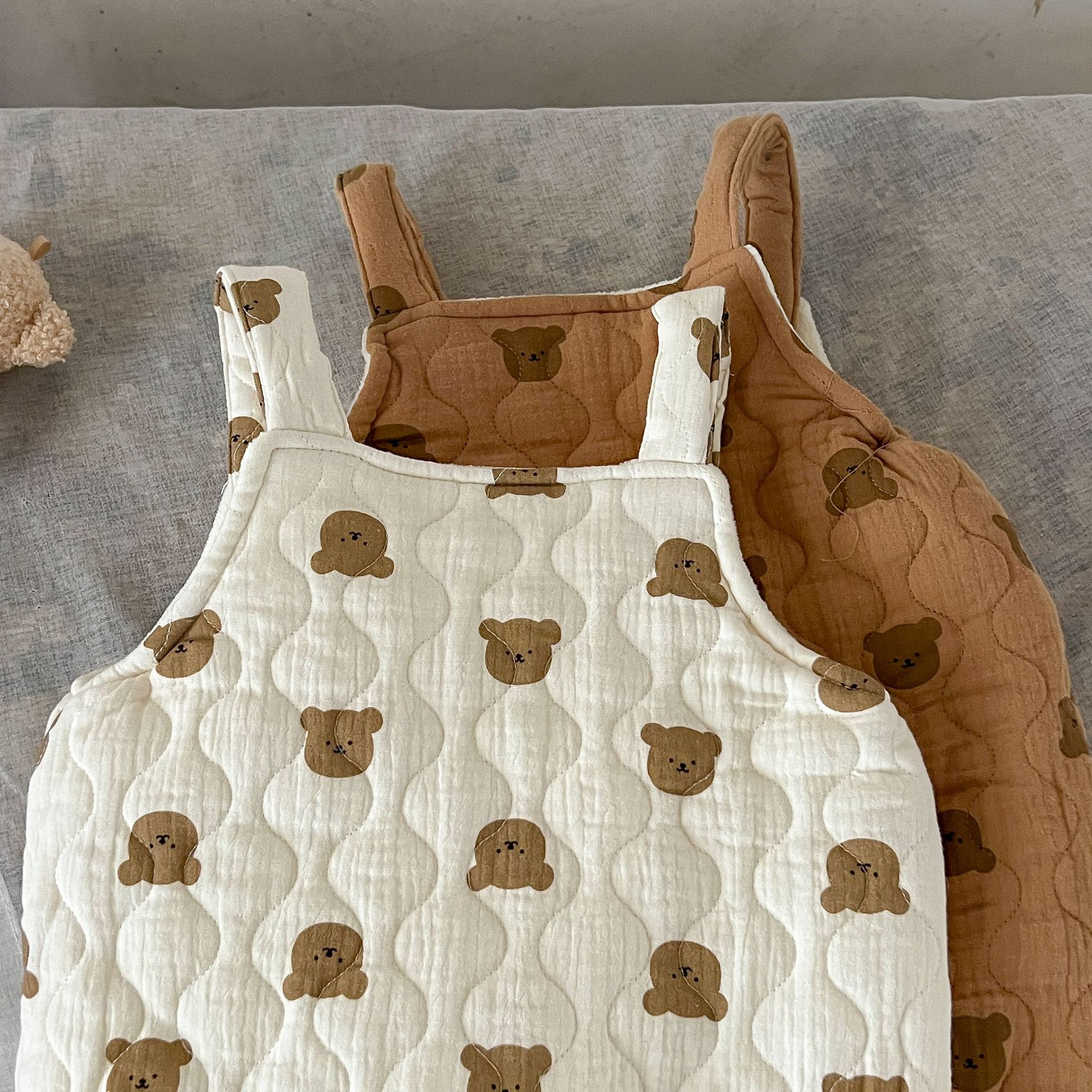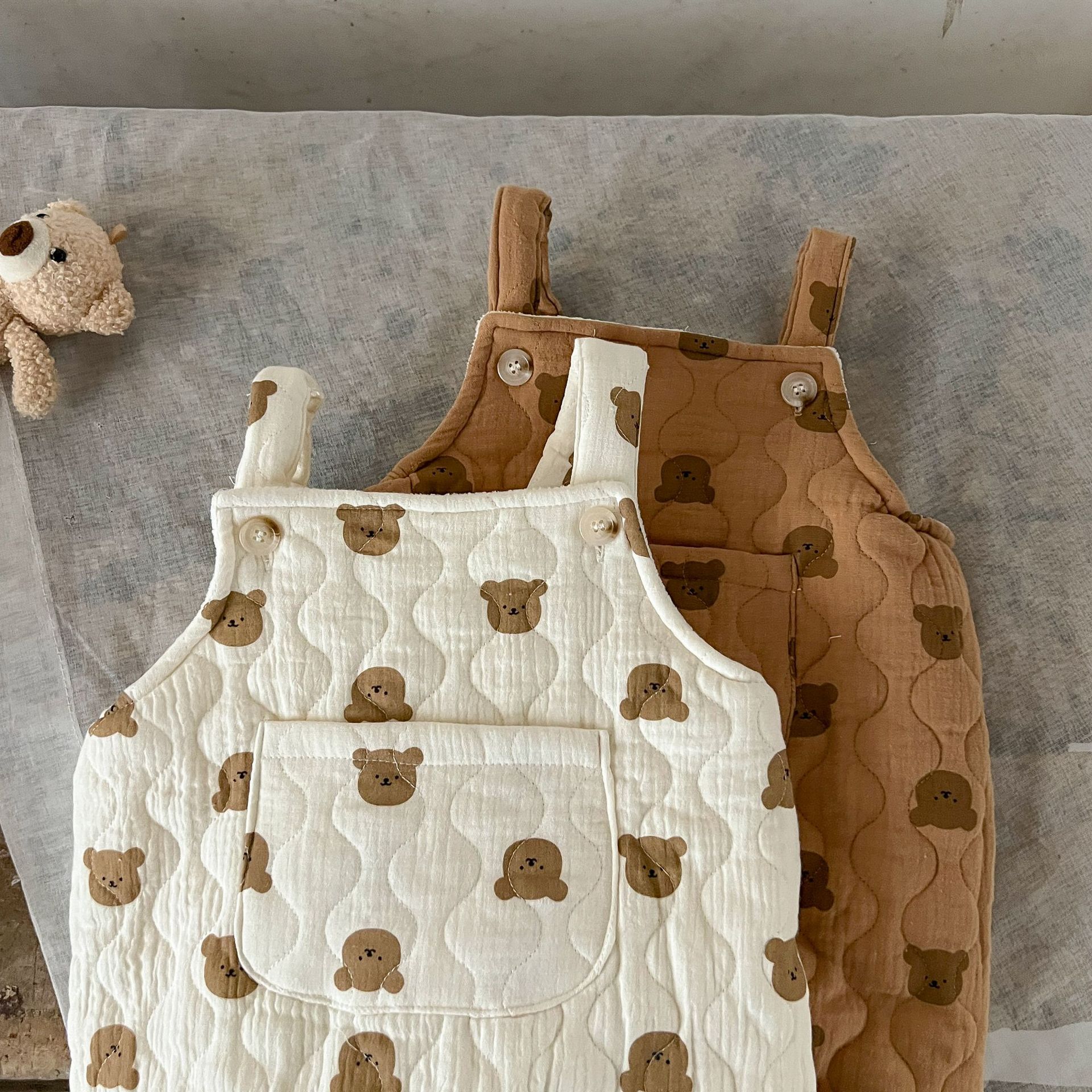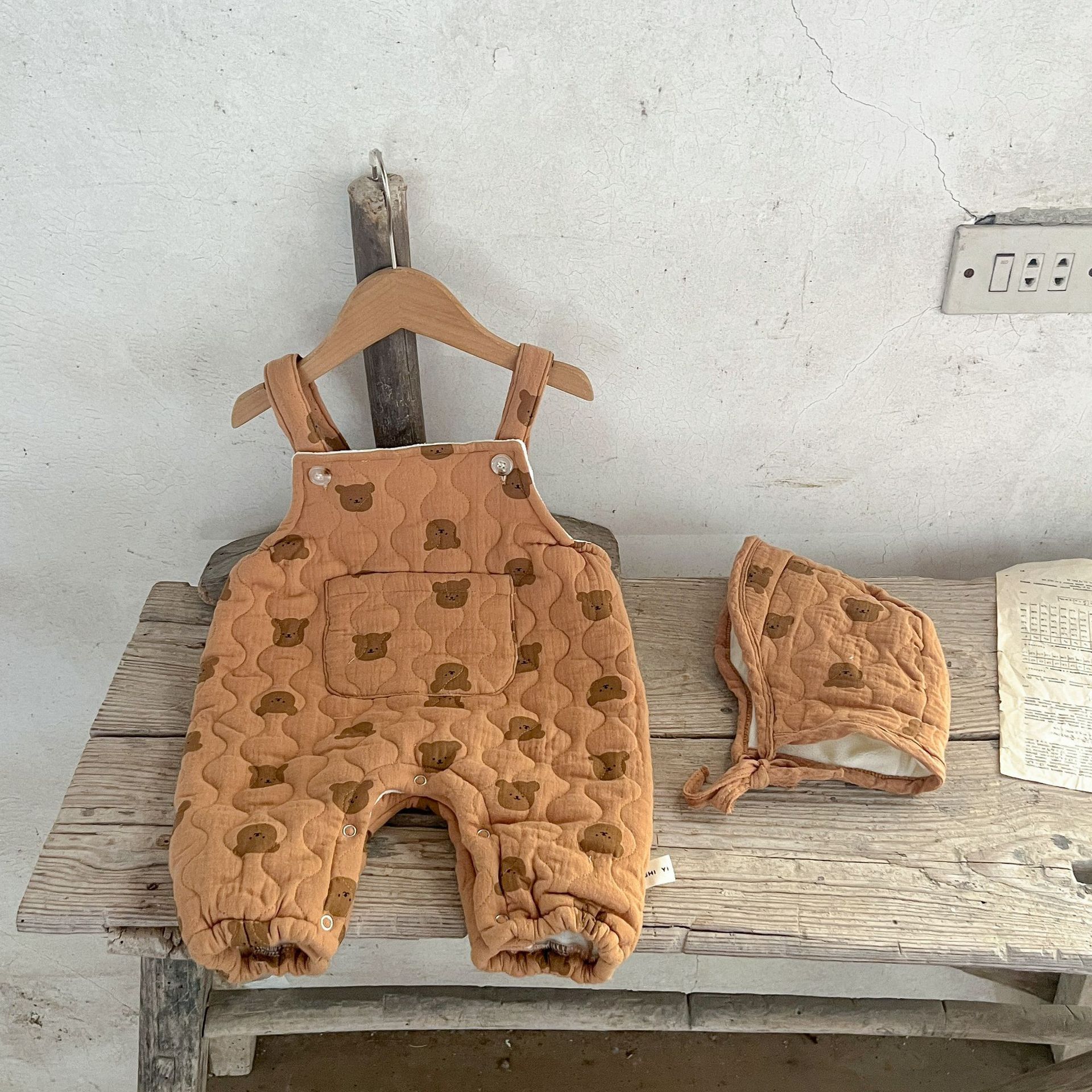 INS Bebé Ropa de otoño e invierno lindo bebé acolchado forrado de lana oso largo mameluco engrosado cálido recién nacido de una sola pieza