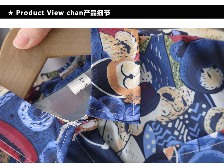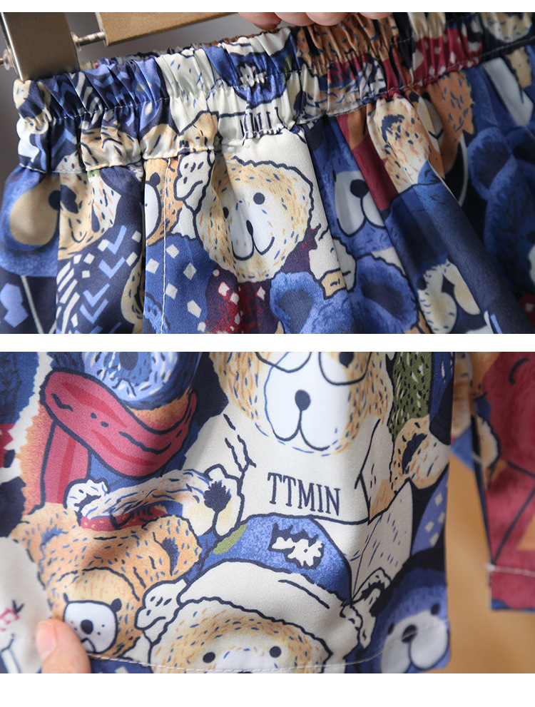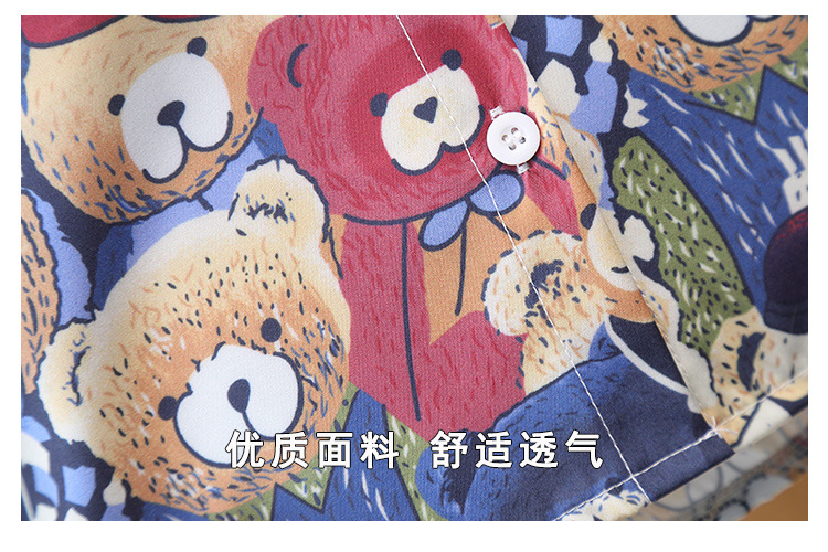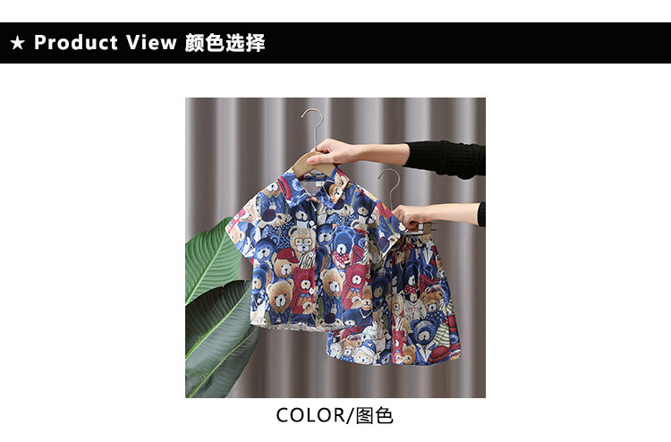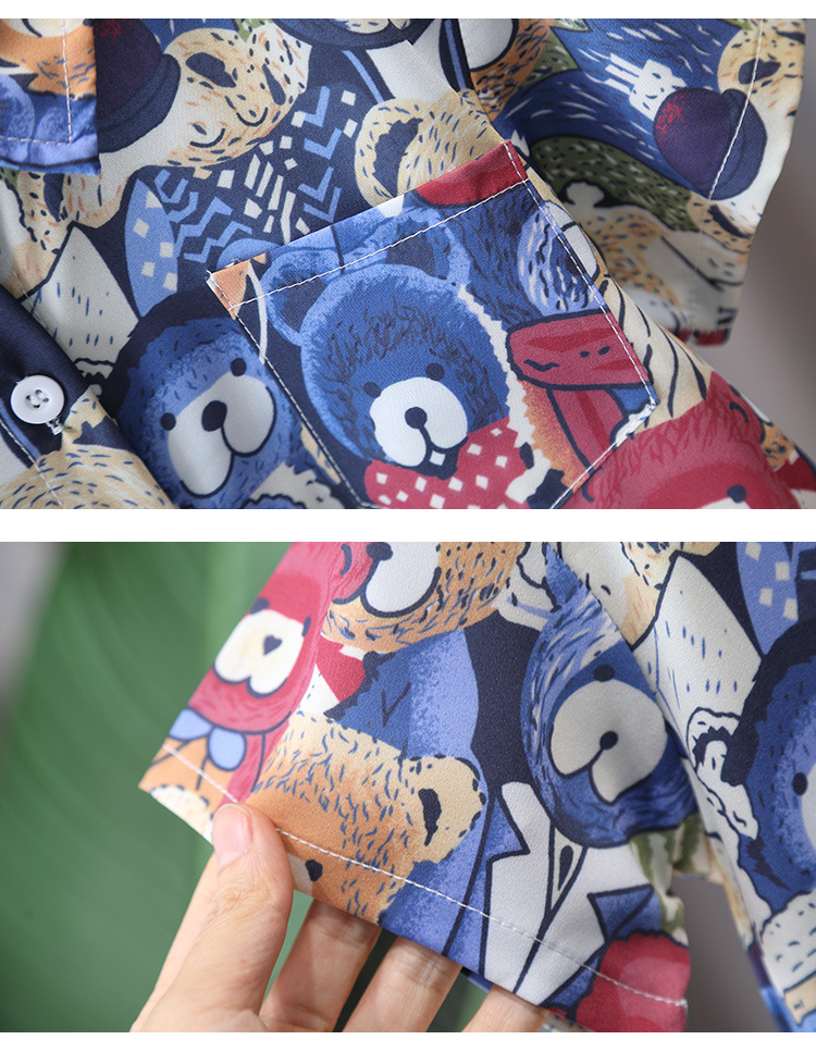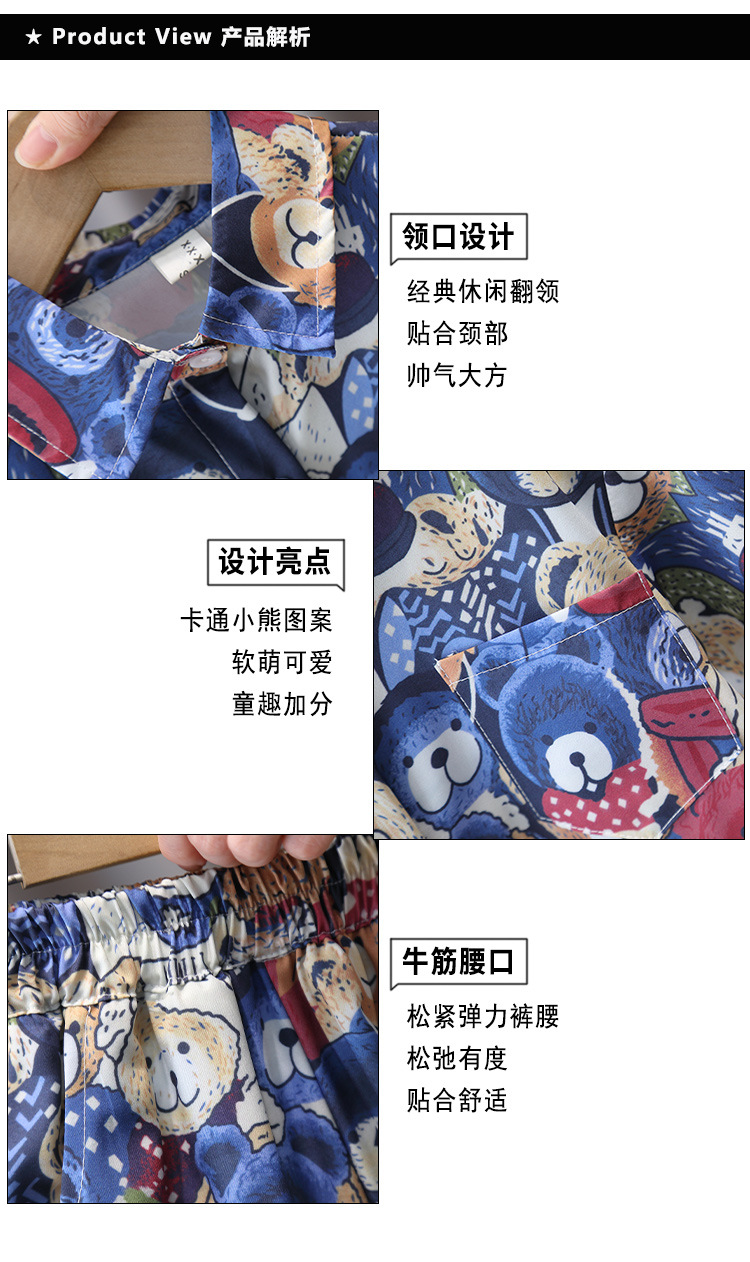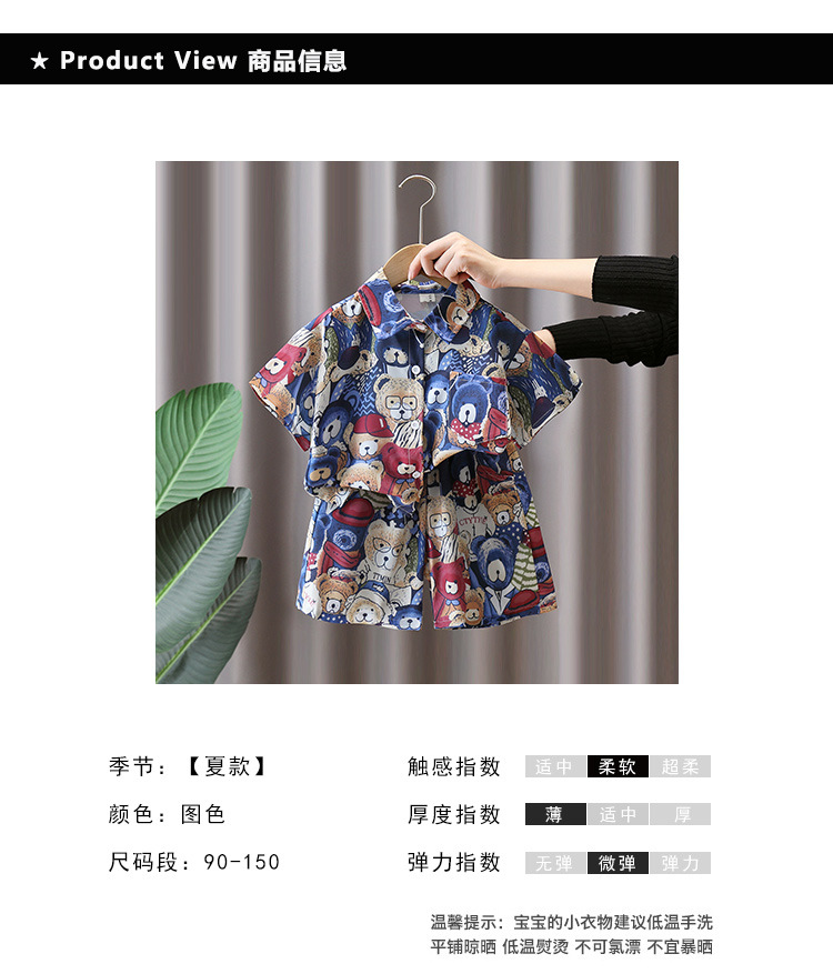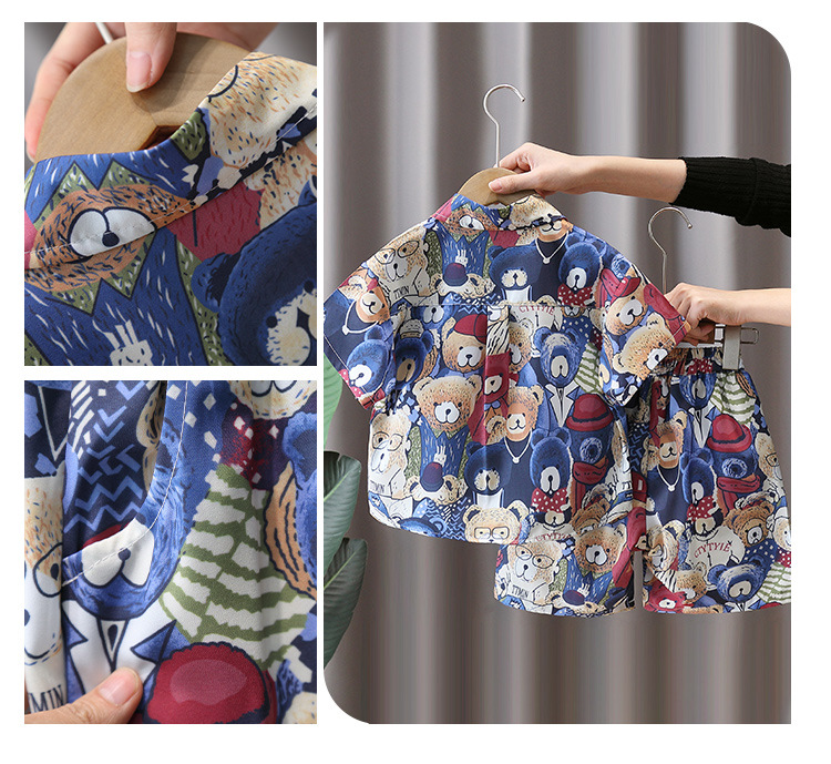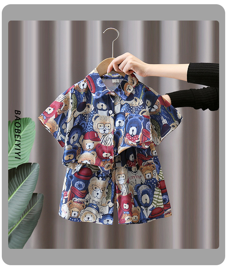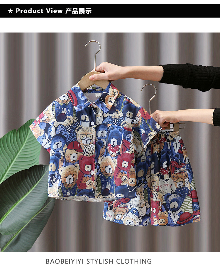 7181 Traje de camisa de oso para niños Verano de manga corta 2025 Nuevo estilo Camisa de dibujos animados de verano para niños Traje de tres piezas Verano