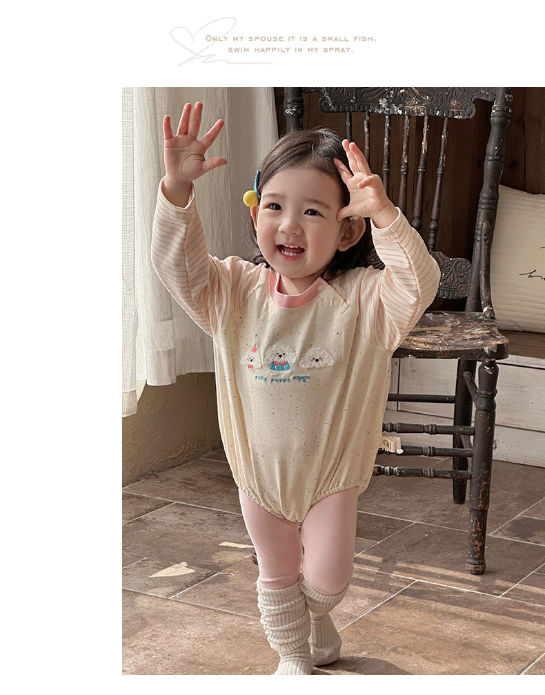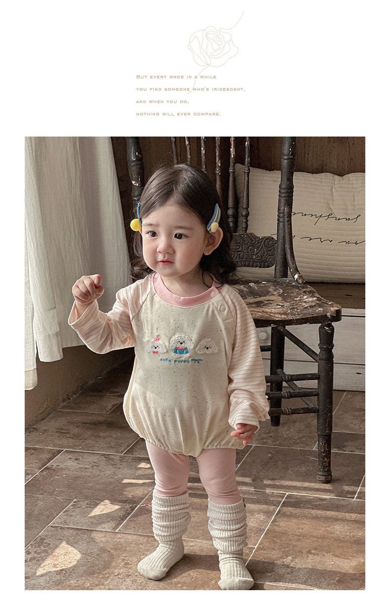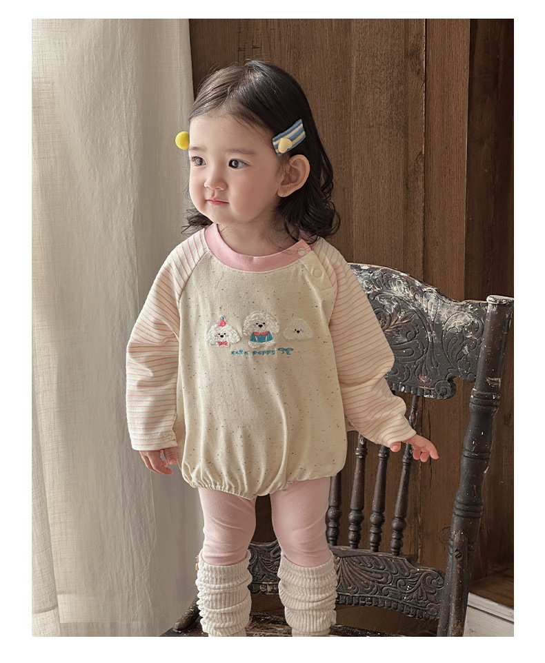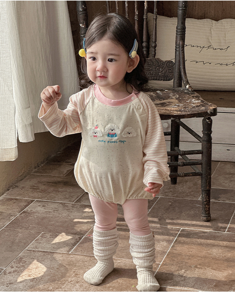 Ropa para niños coreanos, nuevos productos de primavera, bebés y niños pequeños, lindos cachorros de peluche, súper lindos, bebés femeninos, agradables para la piel, mamelucos
