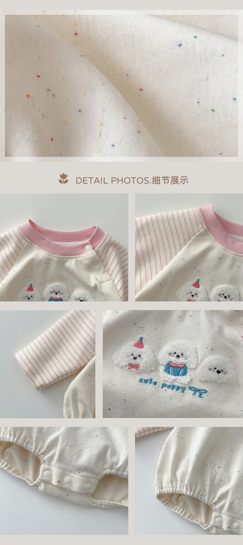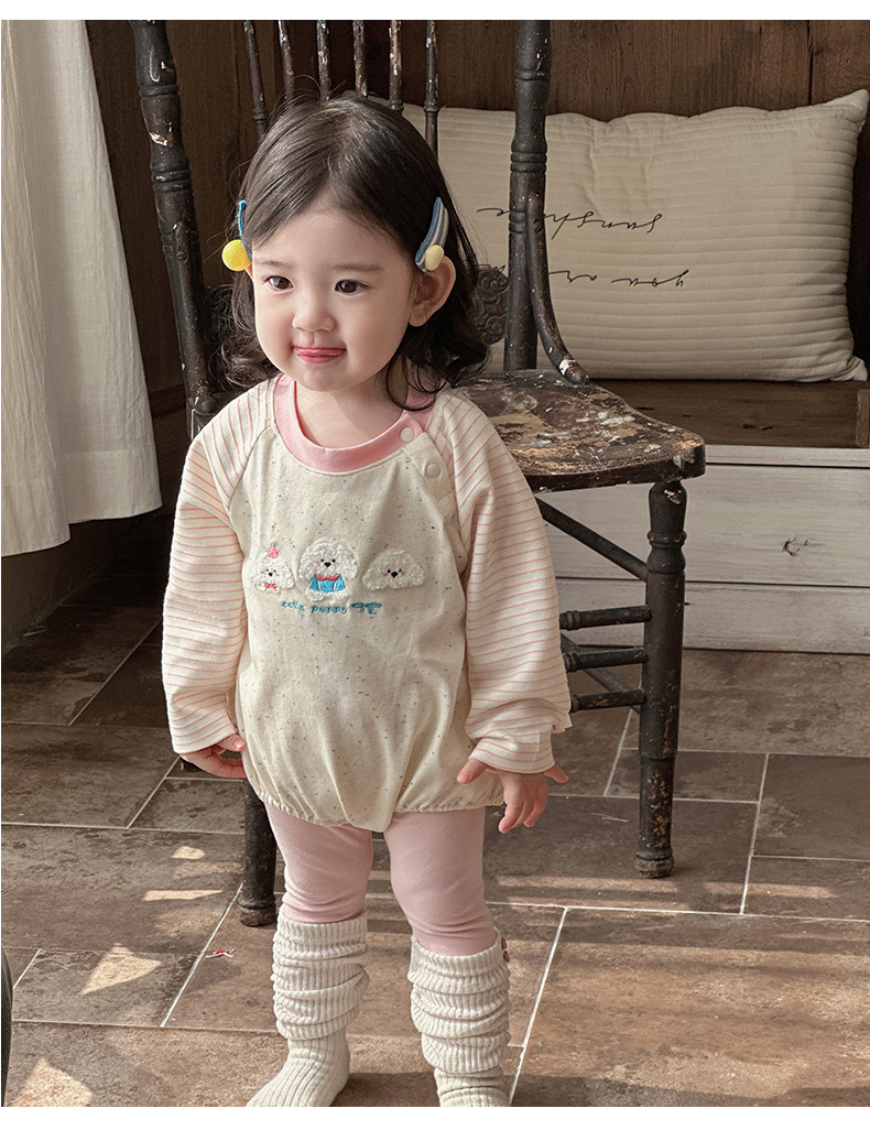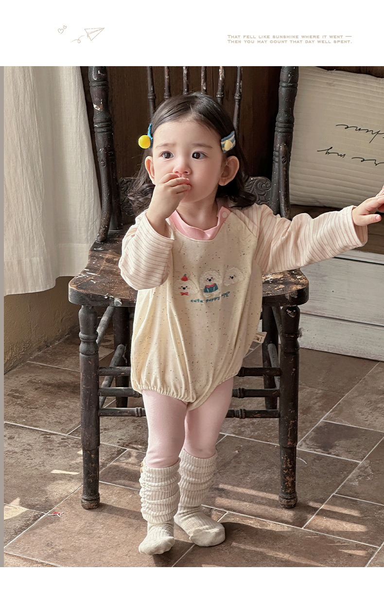 Ropa para niños coreanos, nuevos productos de primavera, bebés y niños pequeños, lindos cachorros de peluche, súper lindos, bebés femeninos, agradables para la piel, mamelucos