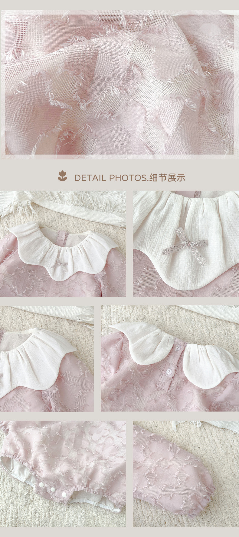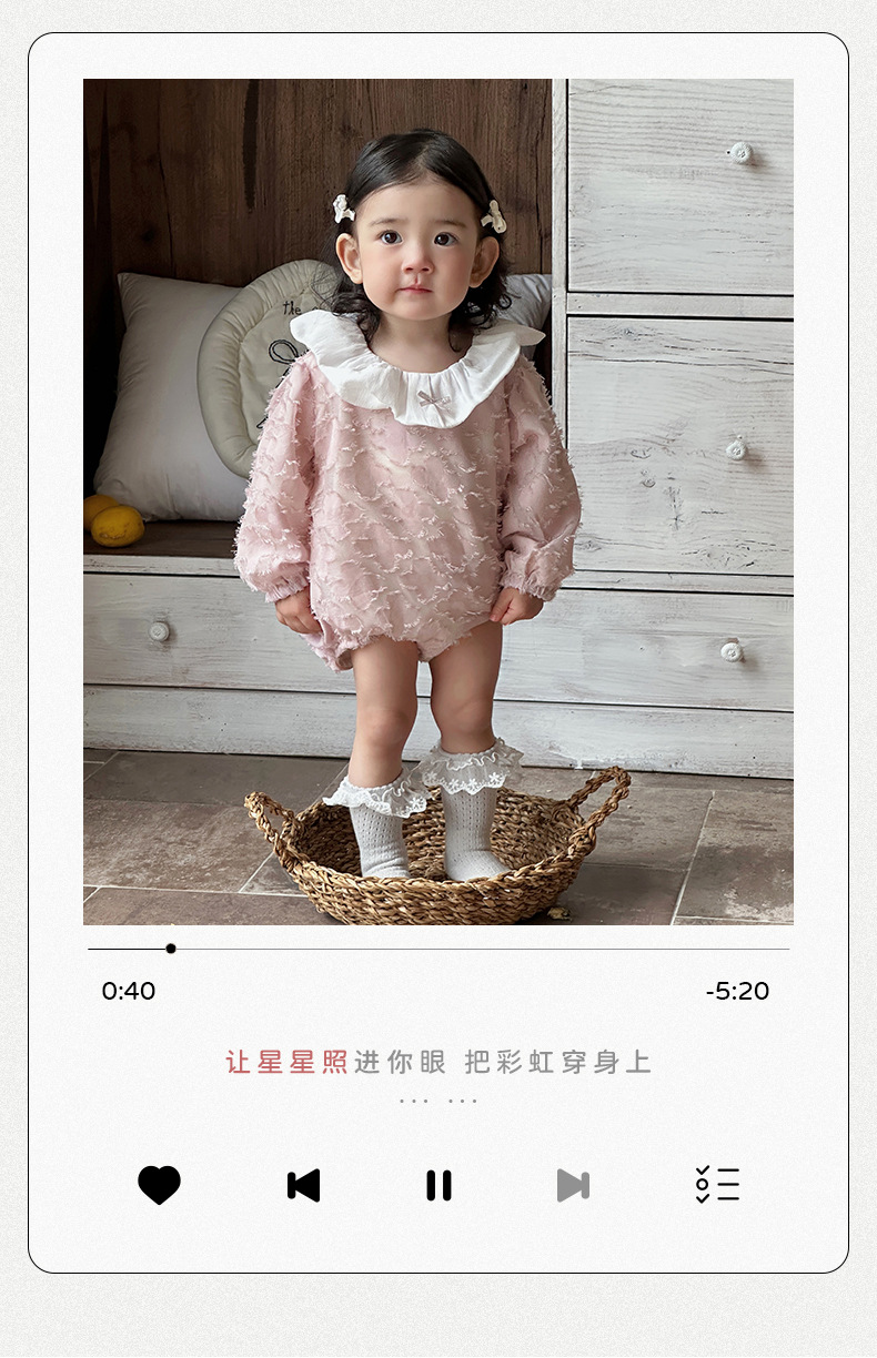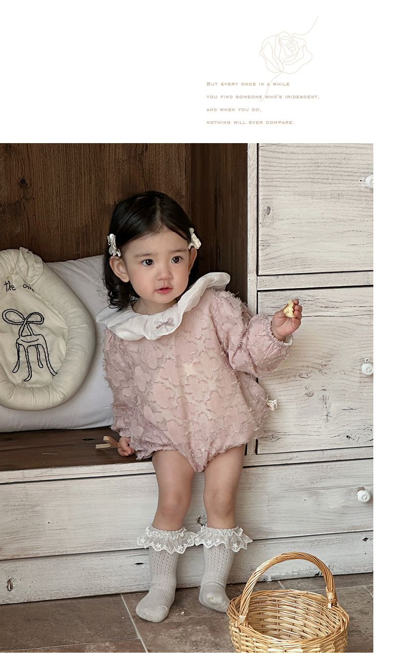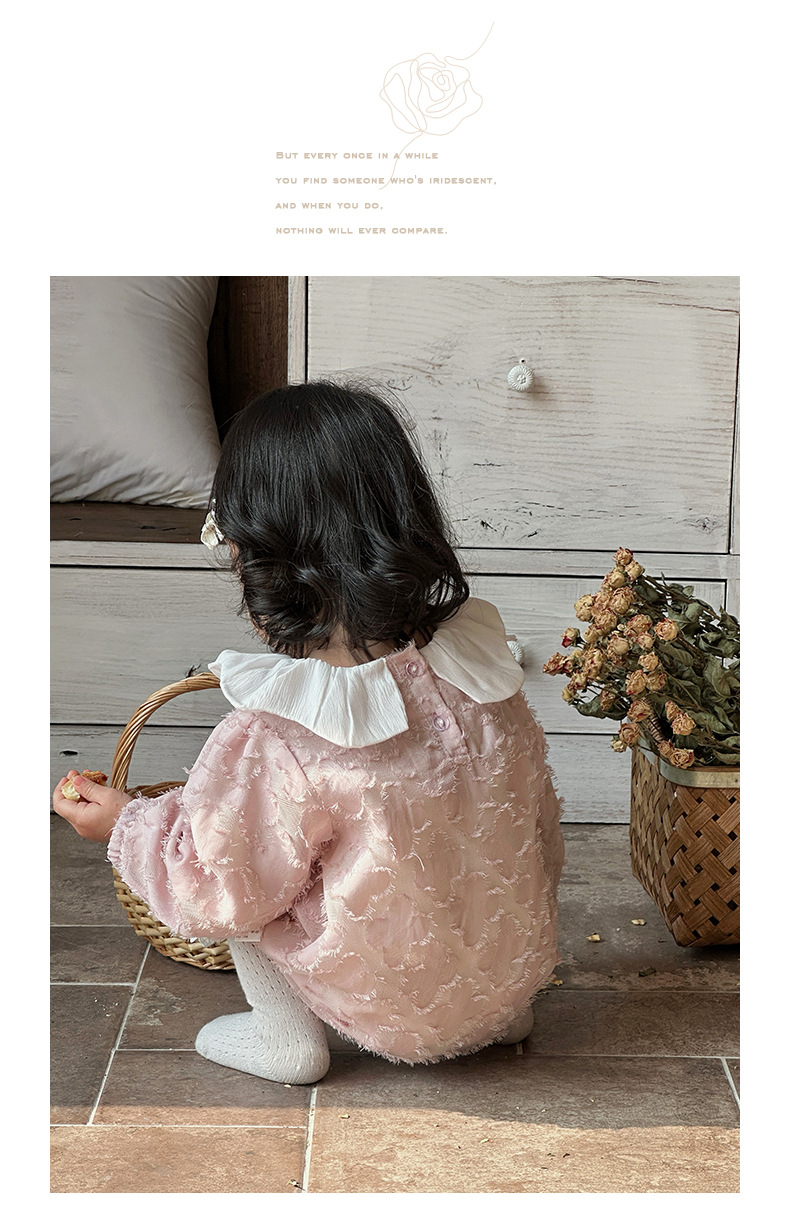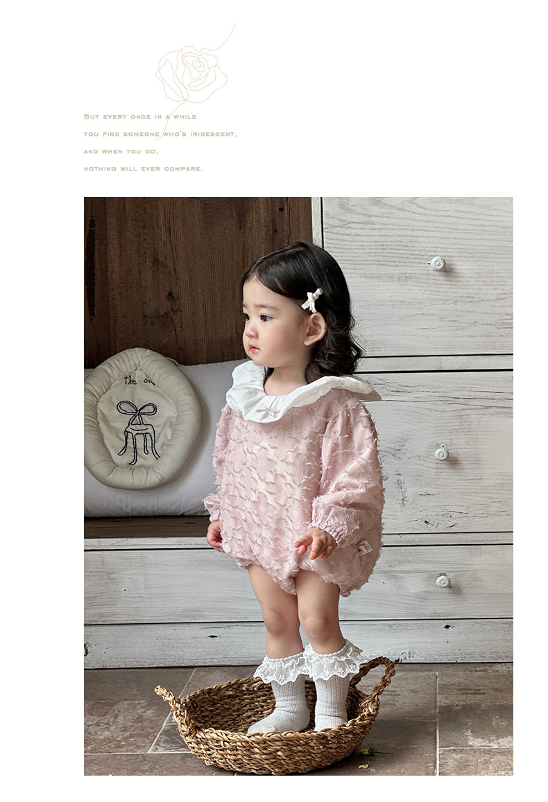 2025 bebé bebé primavera ropa para niños dulce rosa manga larga culo super lindo encaje solapa triángulo mameluco
