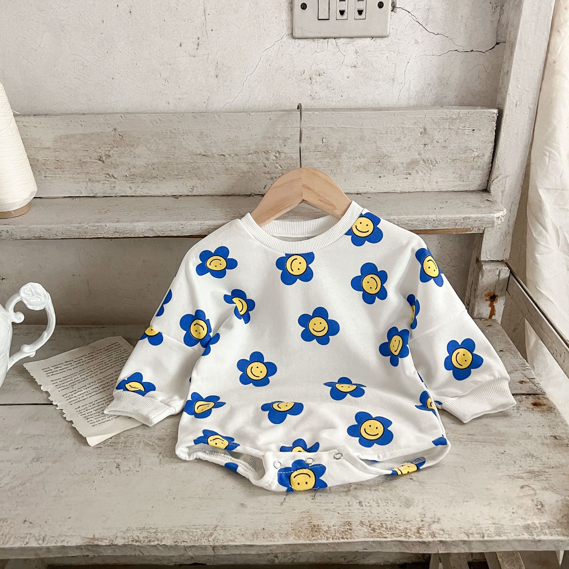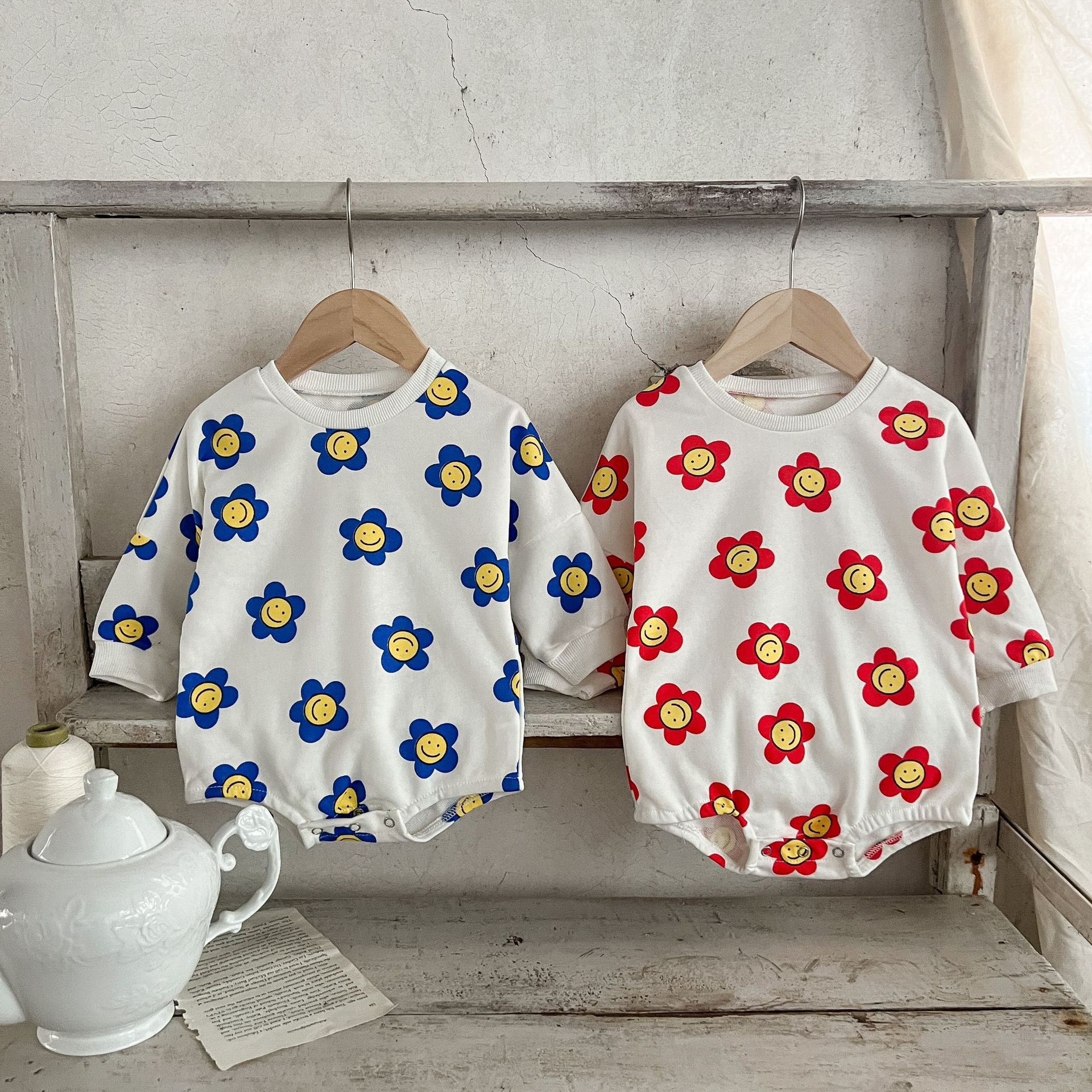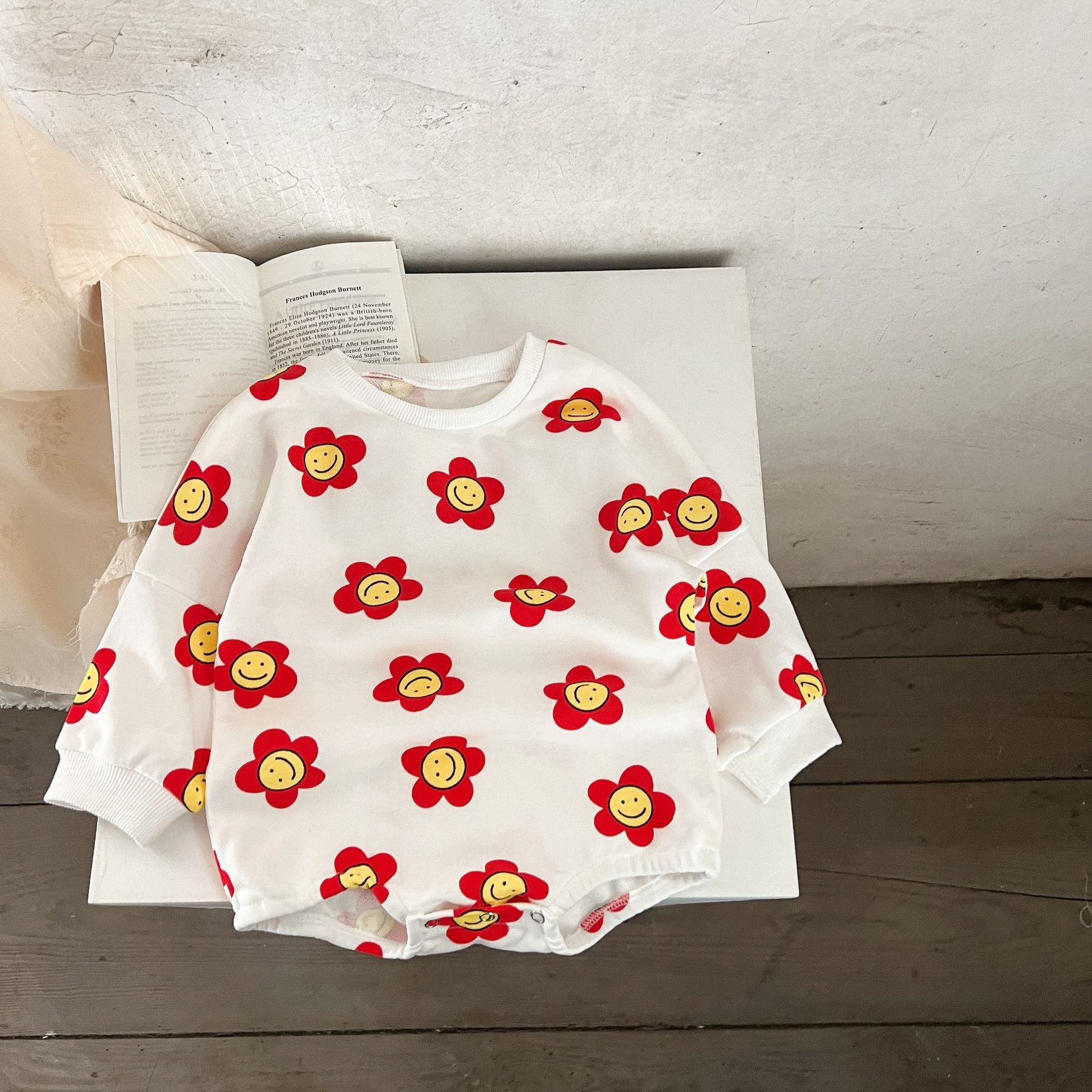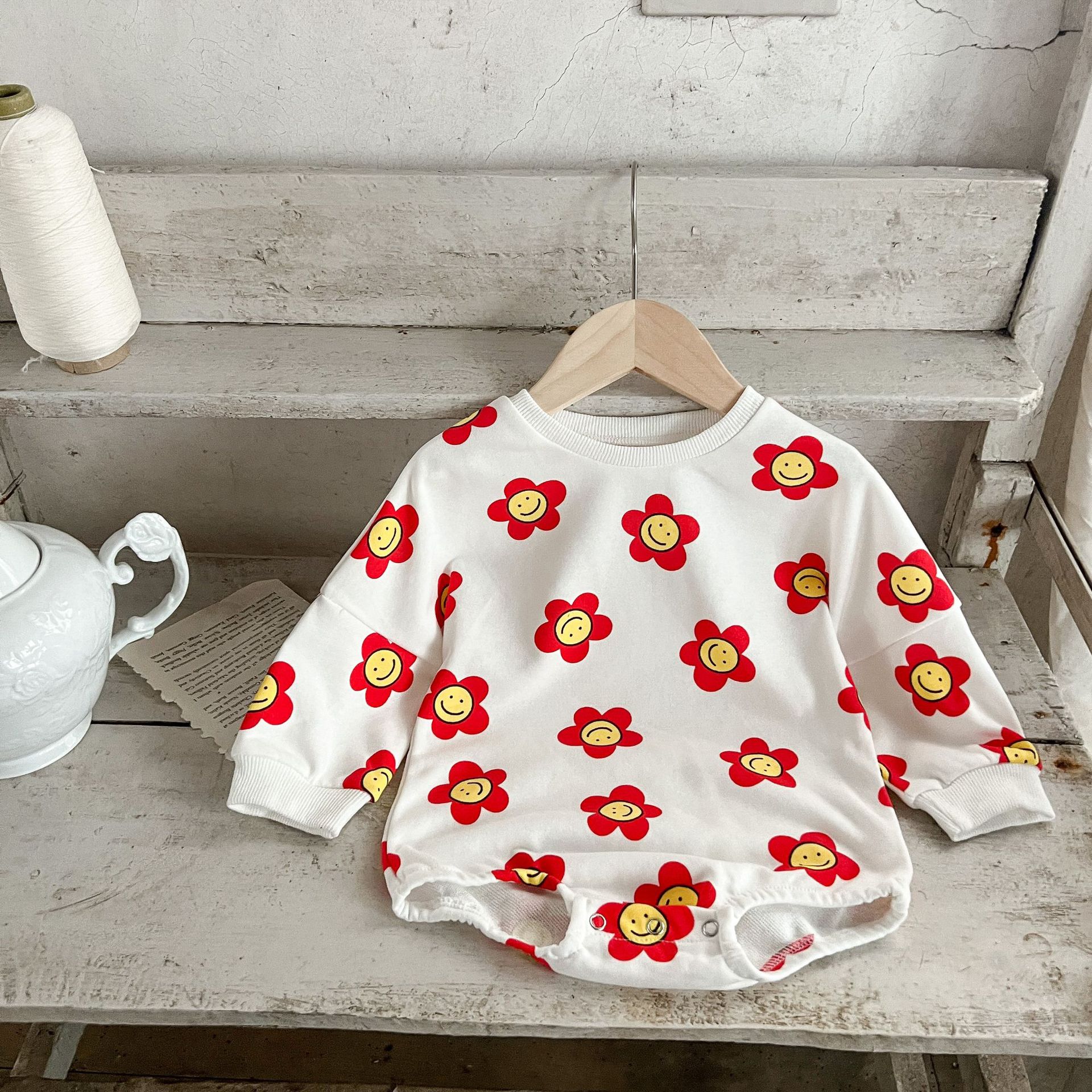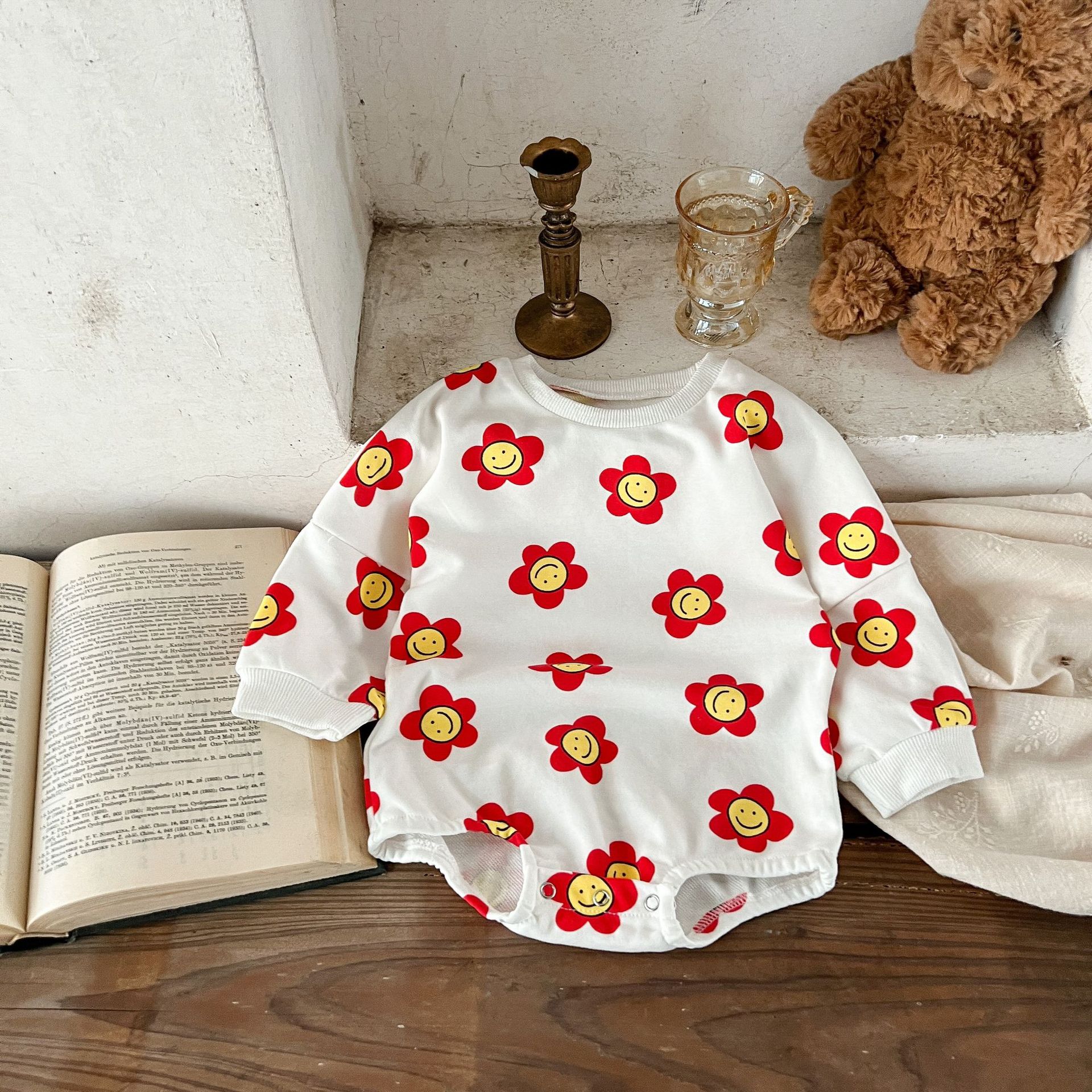 Ins estilo coreano algodón para niñas otoño estampado de flores mameluco suéter suelto batwing mono mameluco