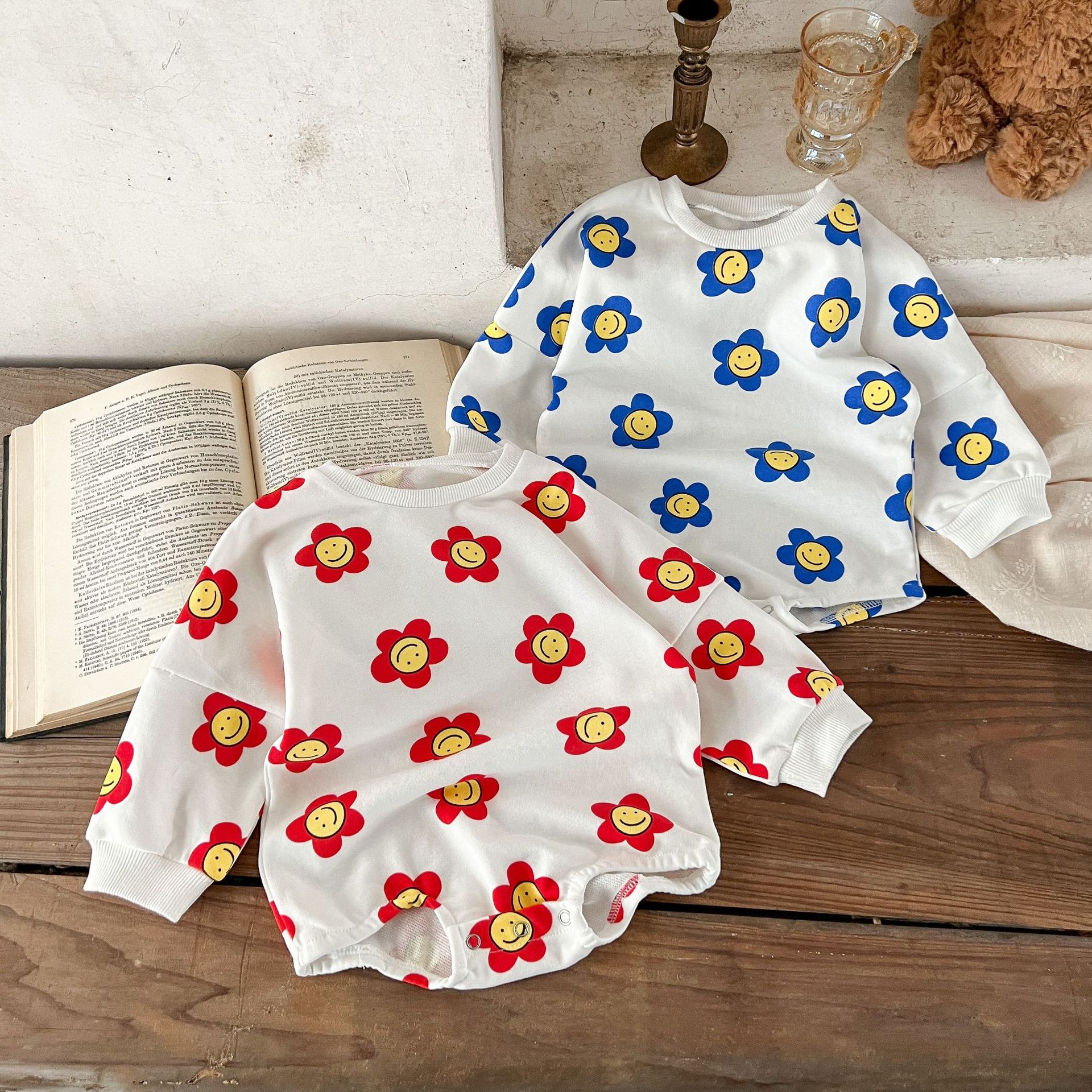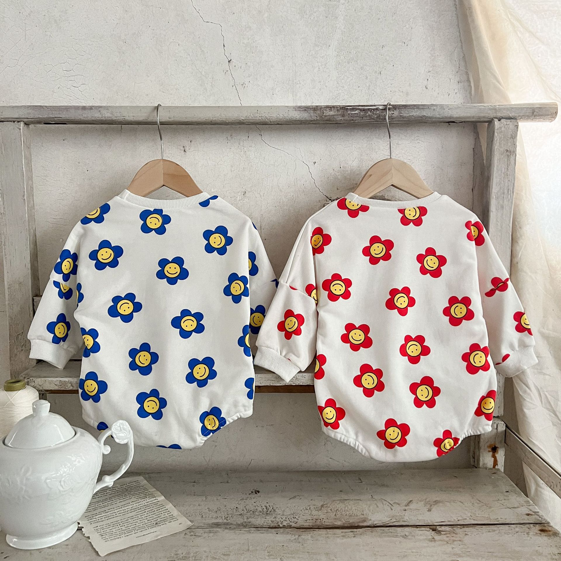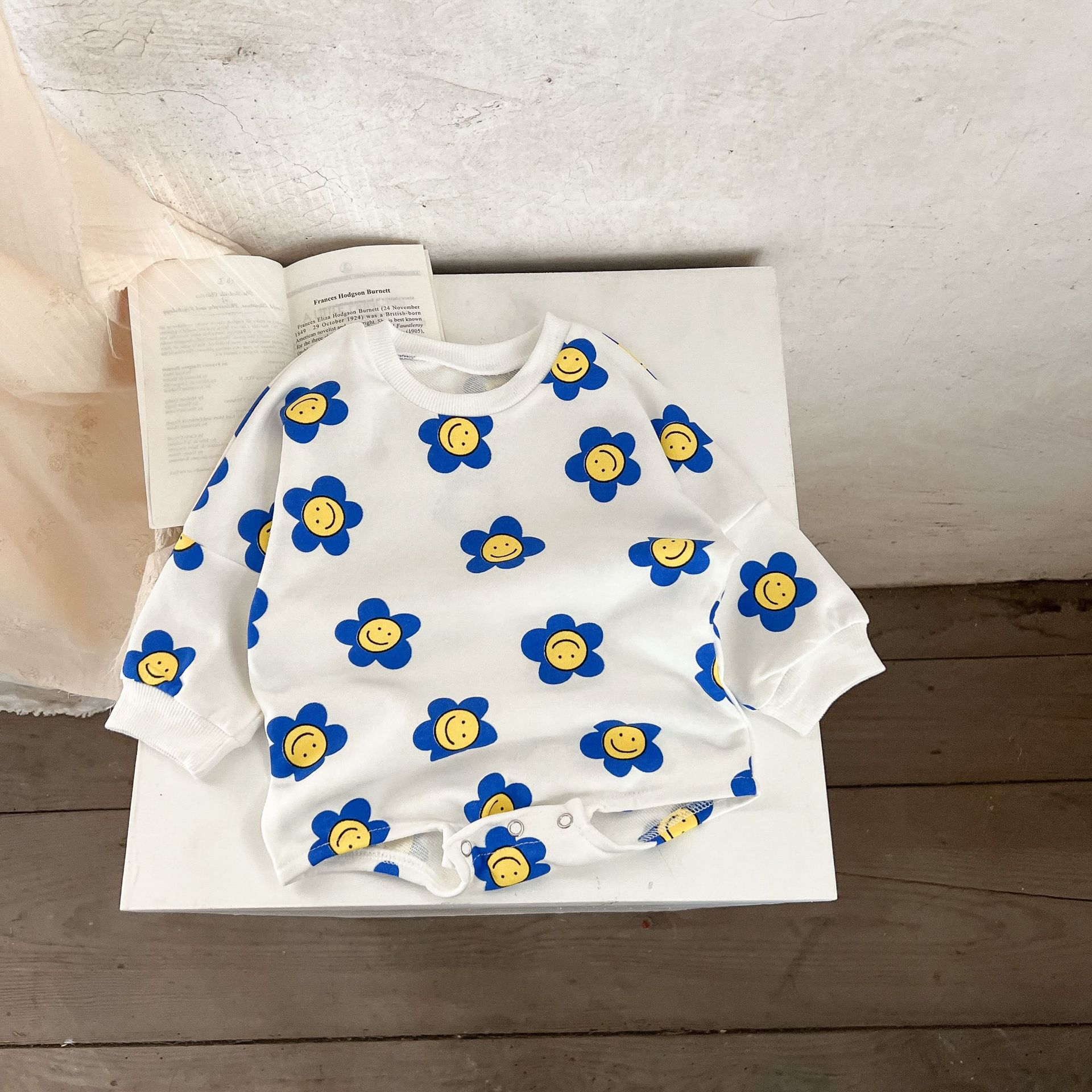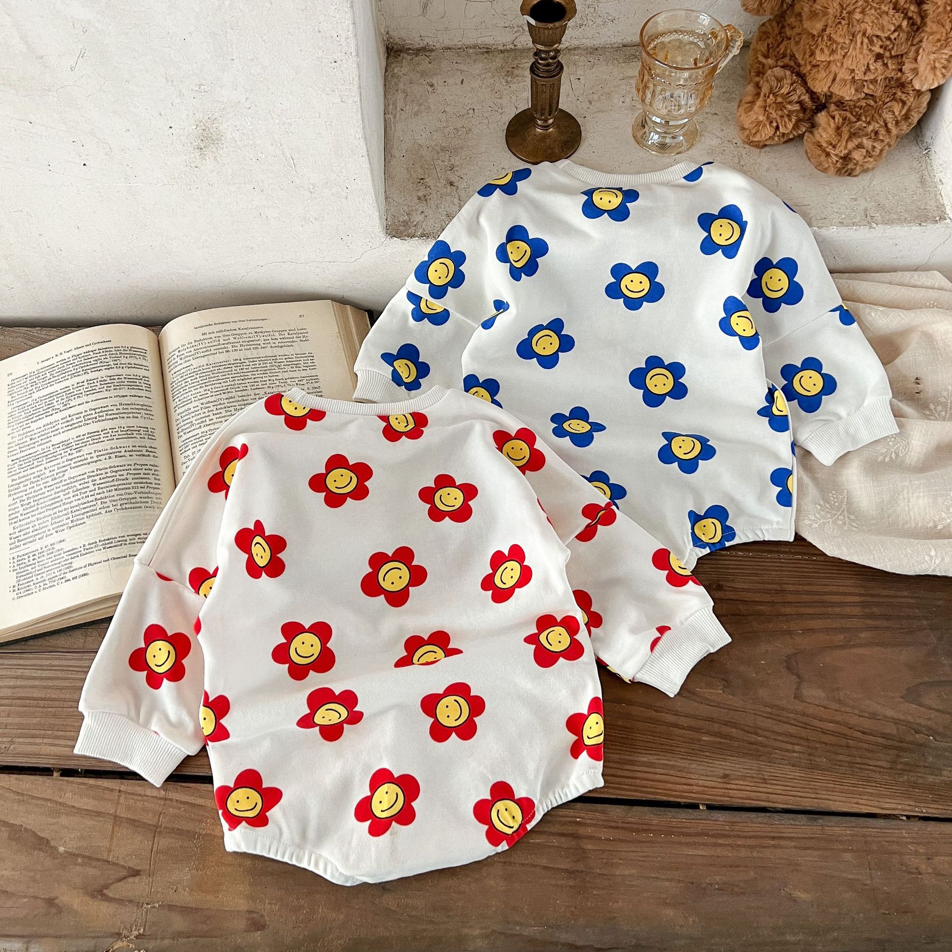 Ins estilo coreano algodón para niñas otoño estampado de flores mameluco suéter suelto batwing mono mameluco