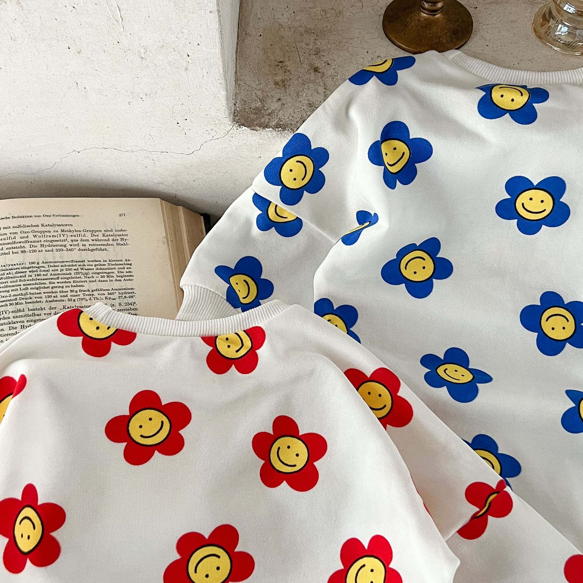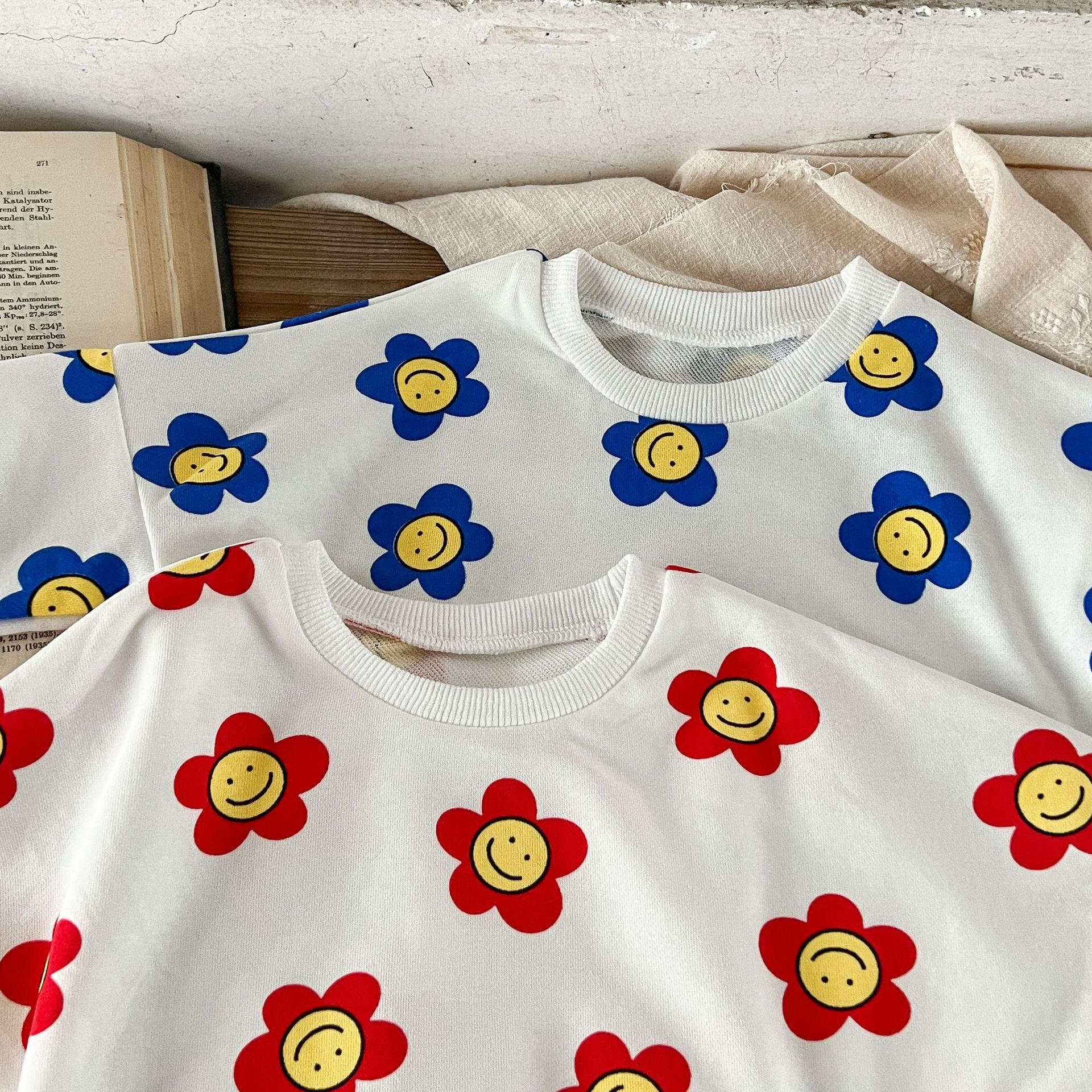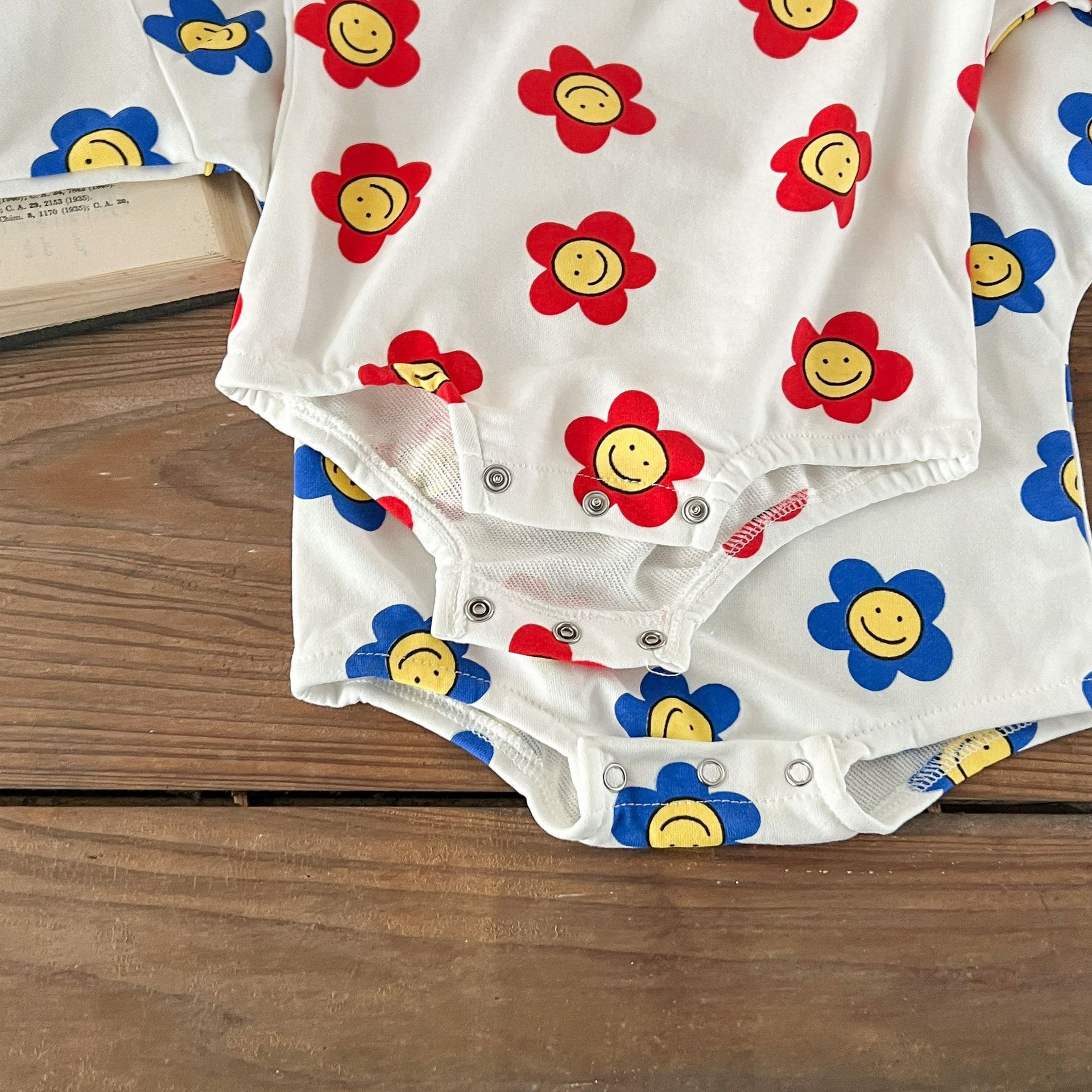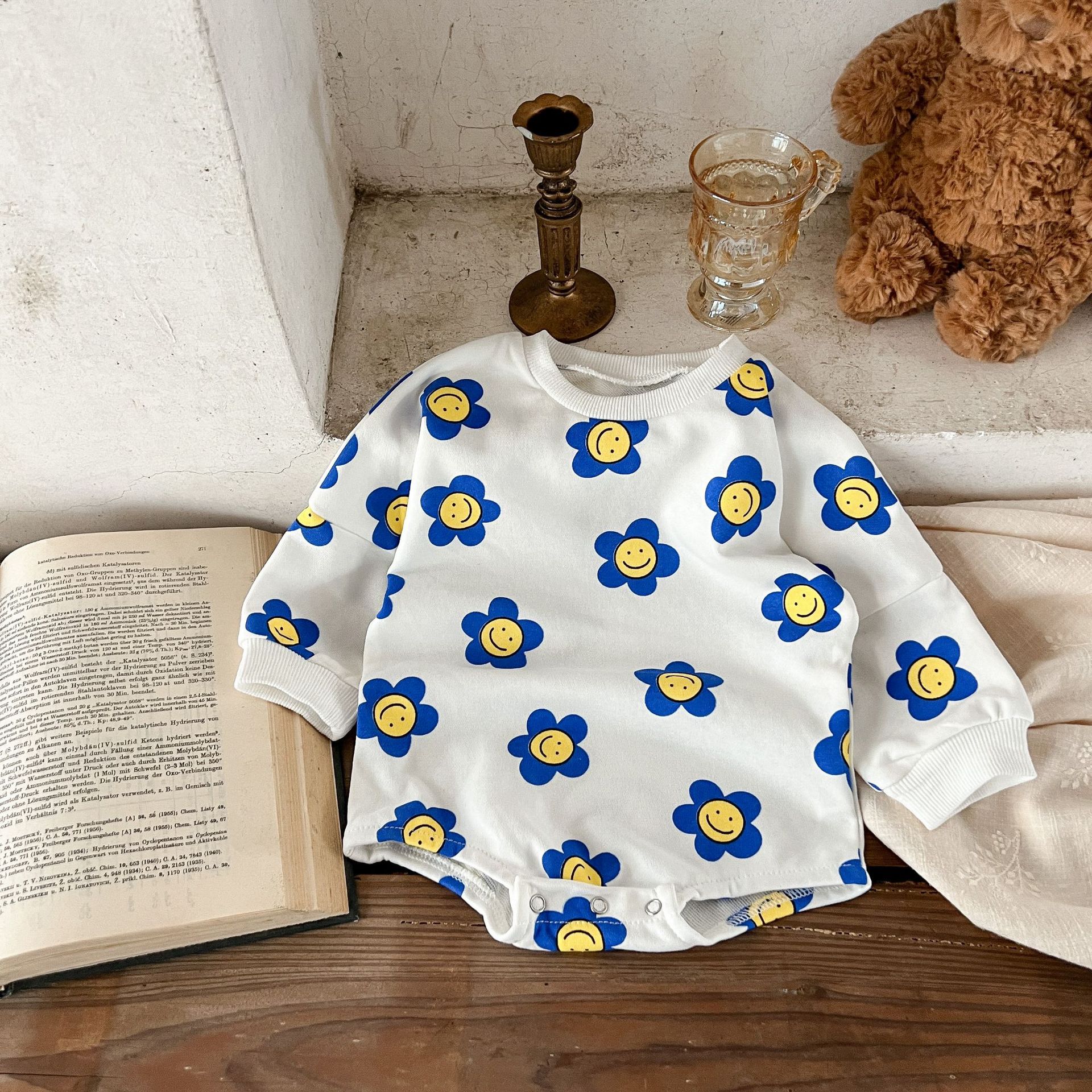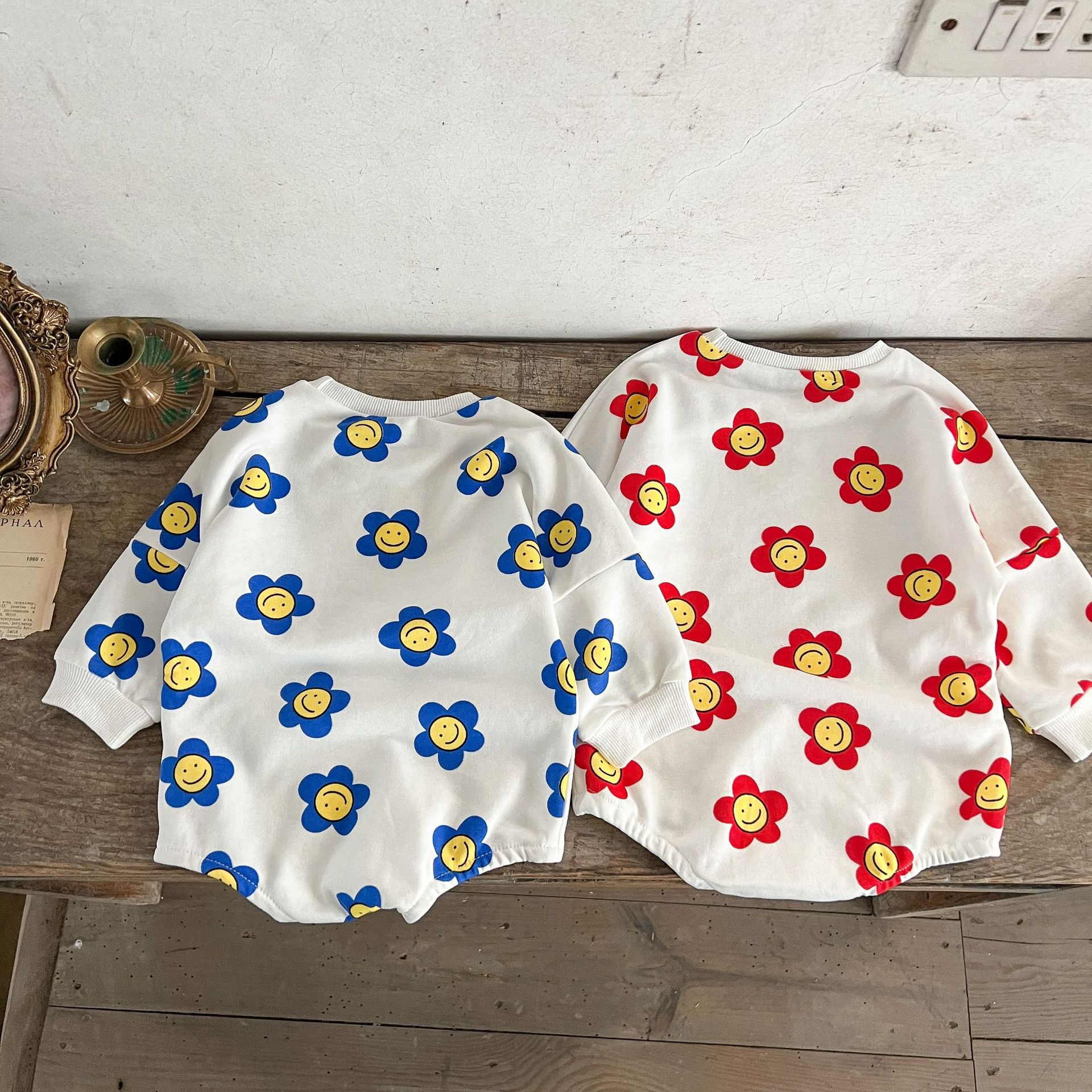 Ins estilo coreano algodón para niñas otoño estampado de flores mameluco suéter suelto batwing mono mameluco