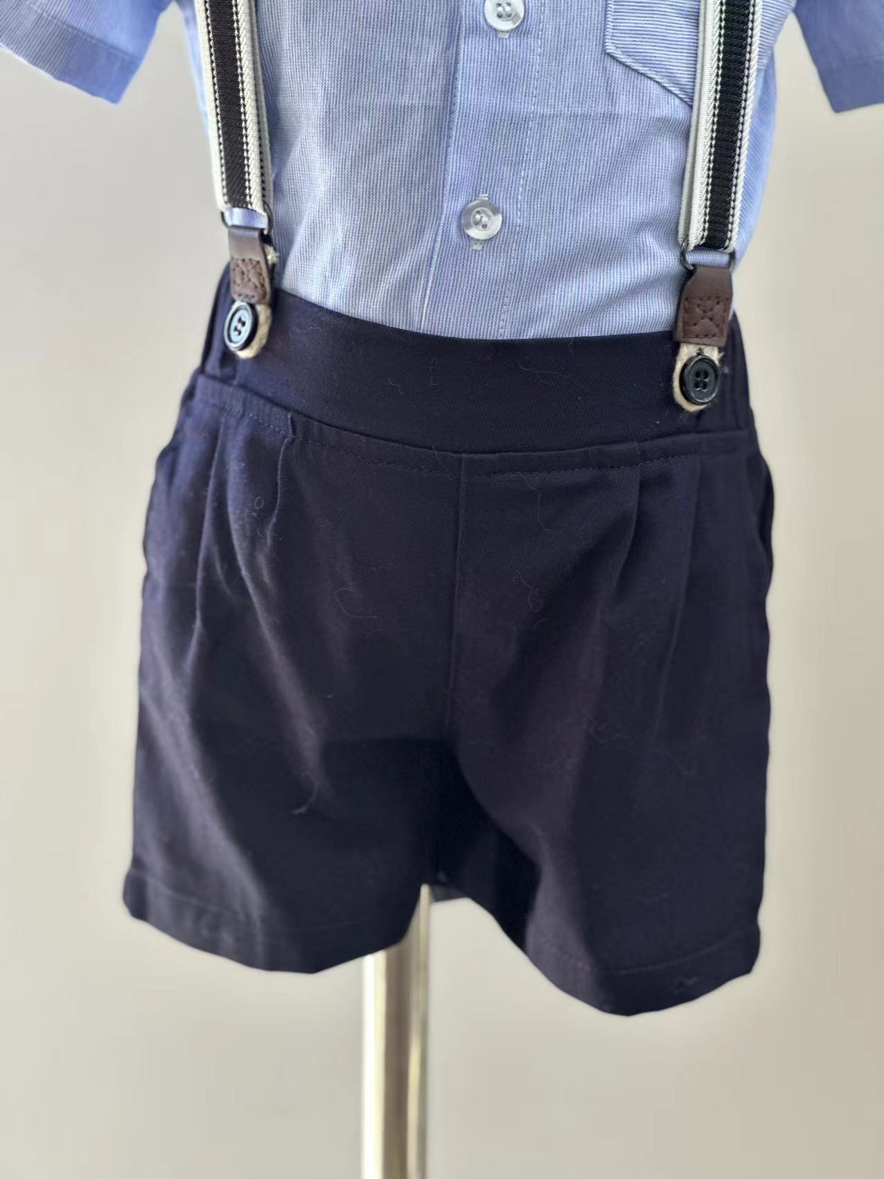 2025 vestido de verano para niños, rebeca de algodón de manga corta con lazo de solapa para niños, pantalones cortos con tirantes coreanos, kids de dos piezas