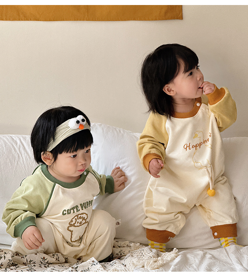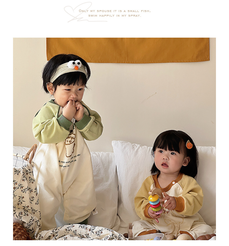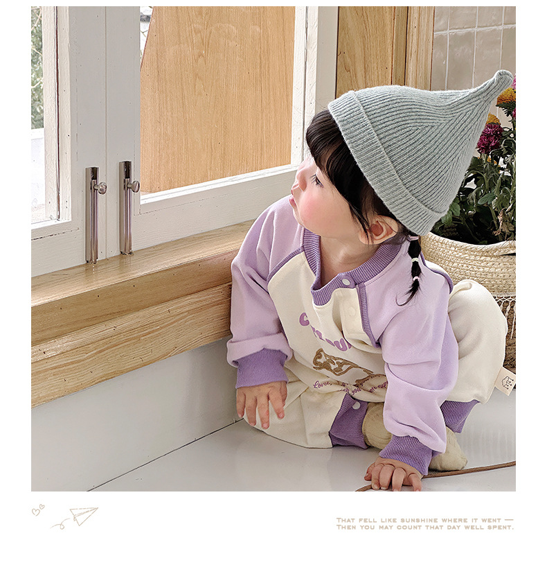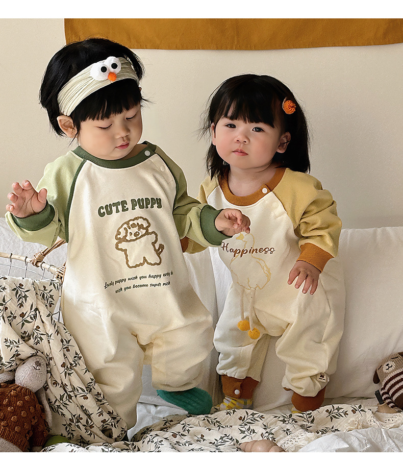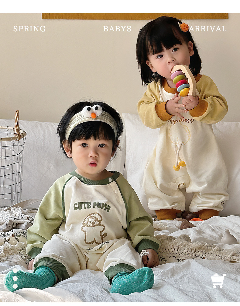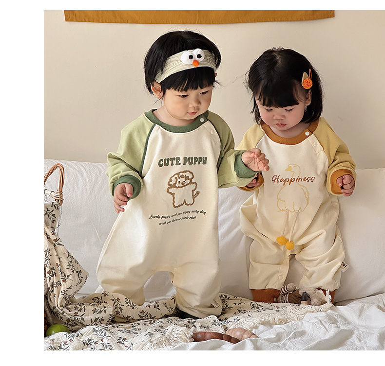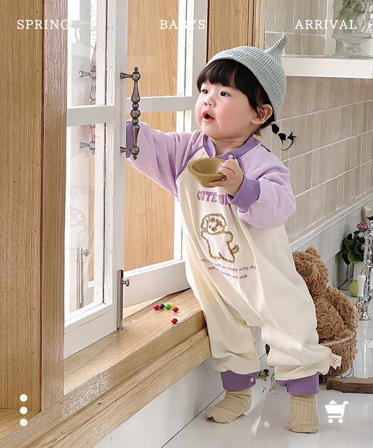 Primavera nuevo estilo bebé mono recién nacido dibujos animados casual cuello redondo mameluco de manga larga ropa de casa ropa de escalada