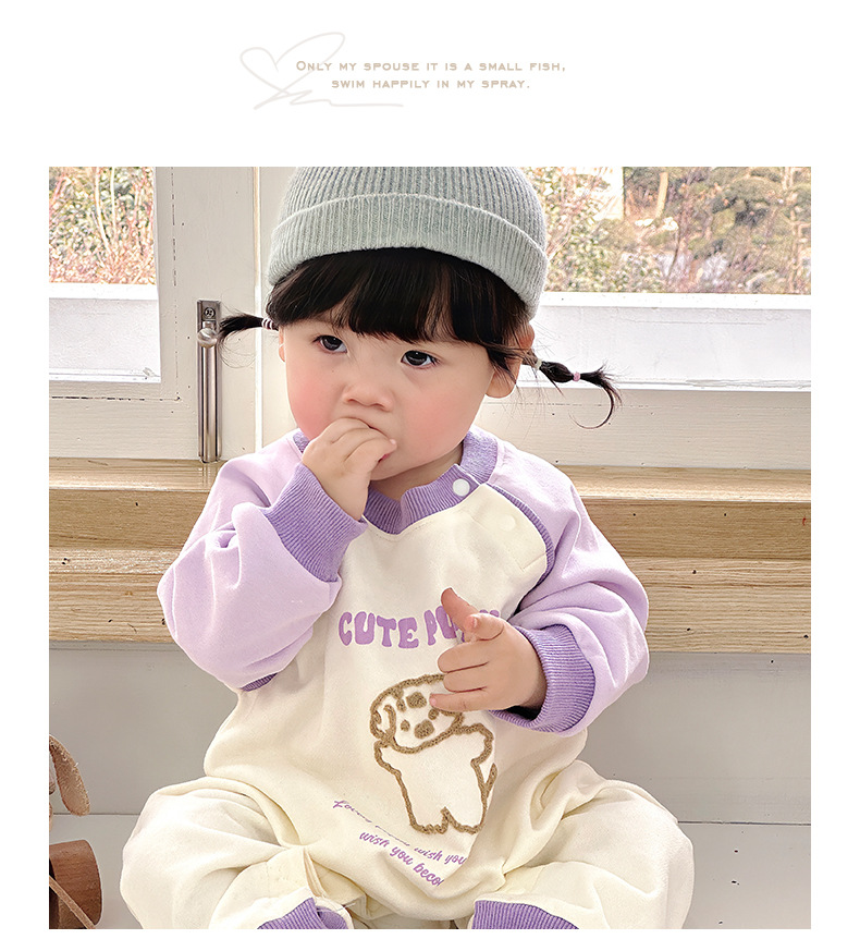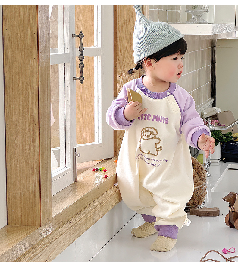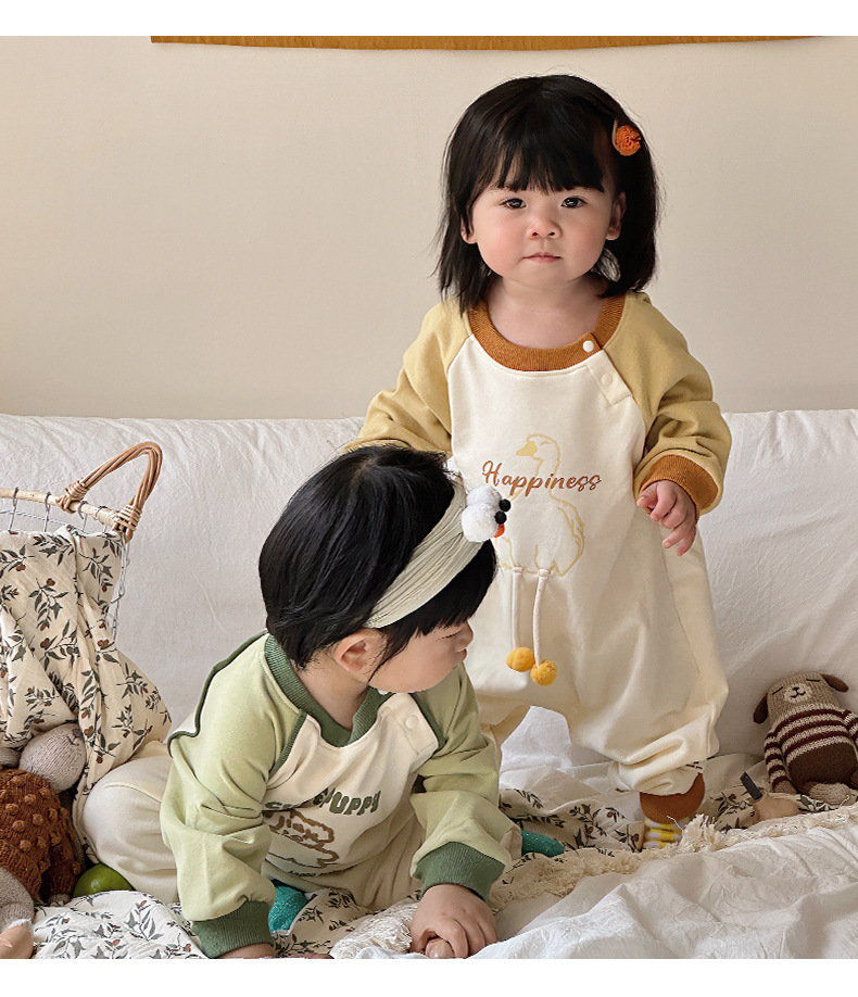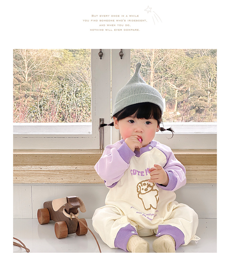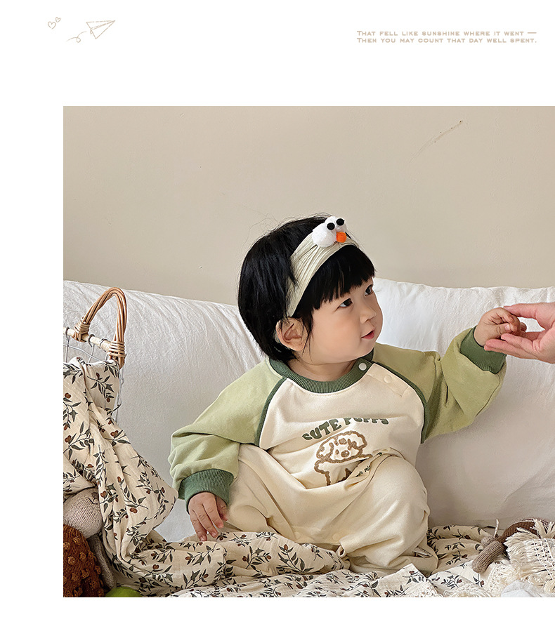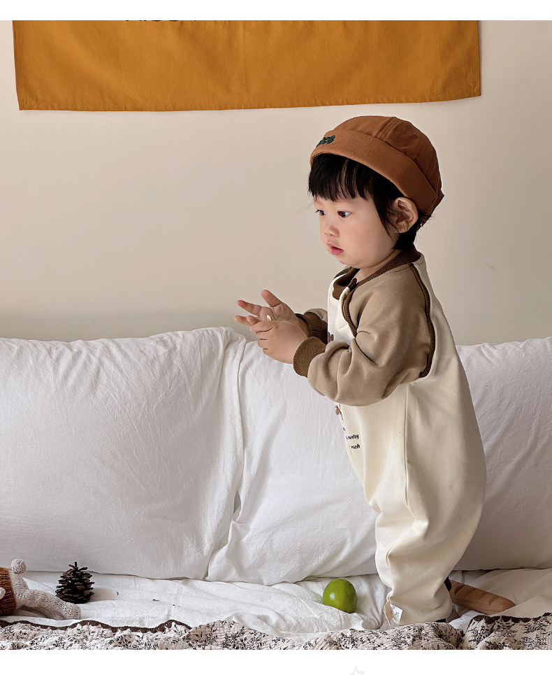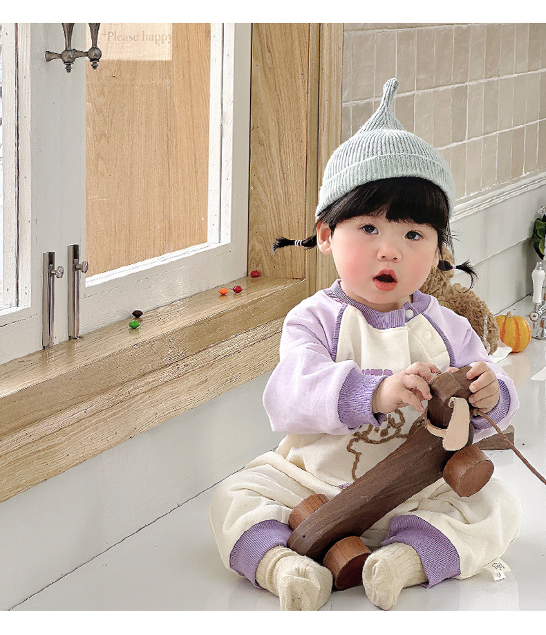 Primavera nuevo estilo bebé mono recién nacido dibujos animados casual cuello redondo mameluco de manga larga ropa de casa ropa de escalada