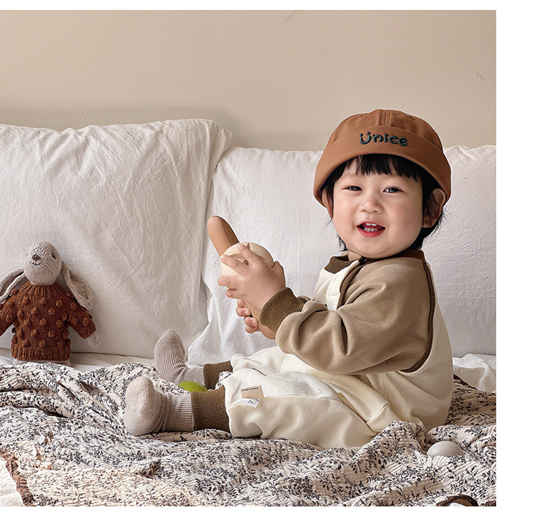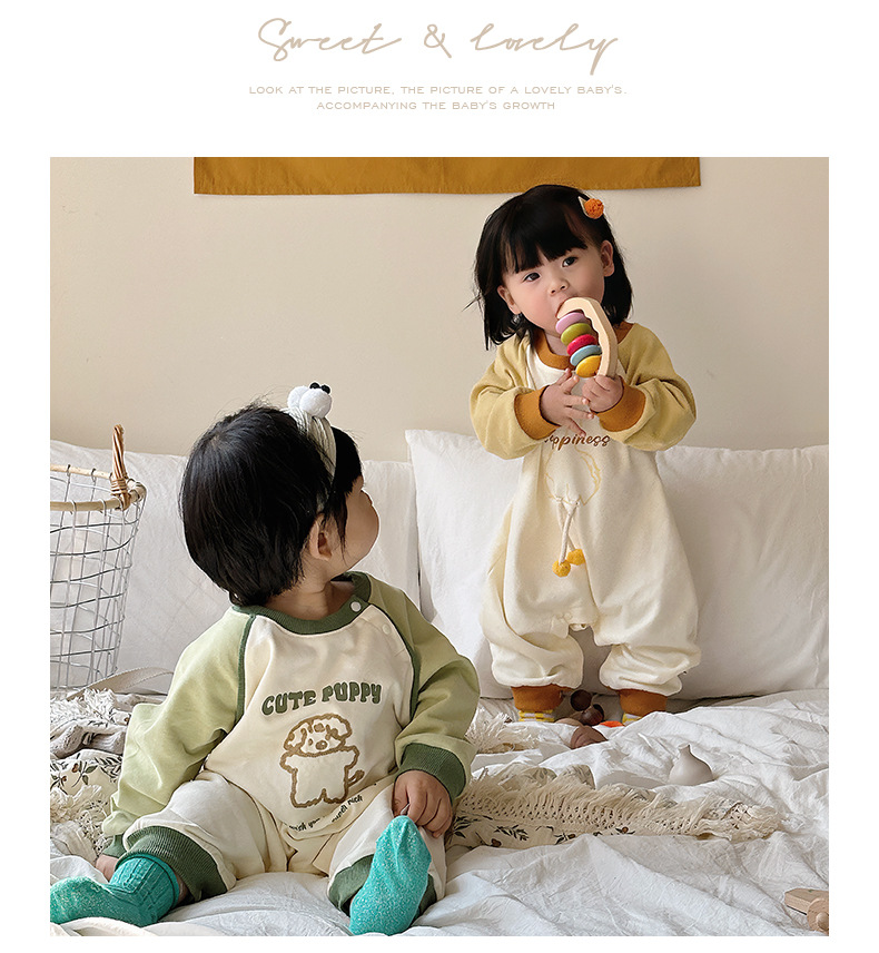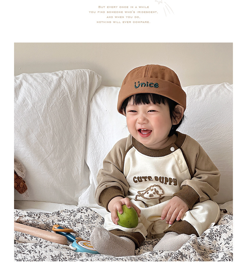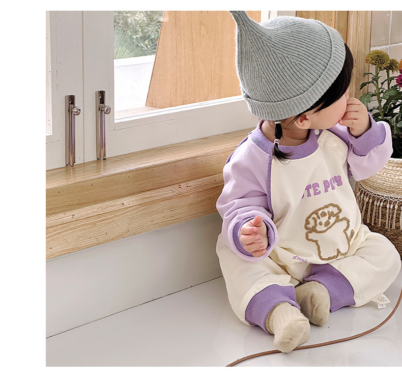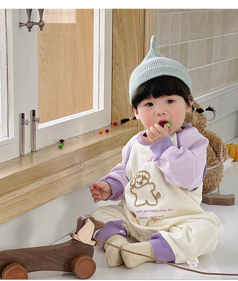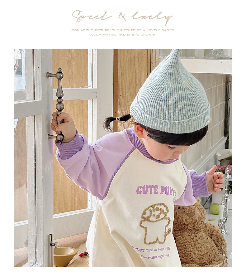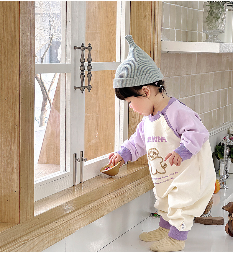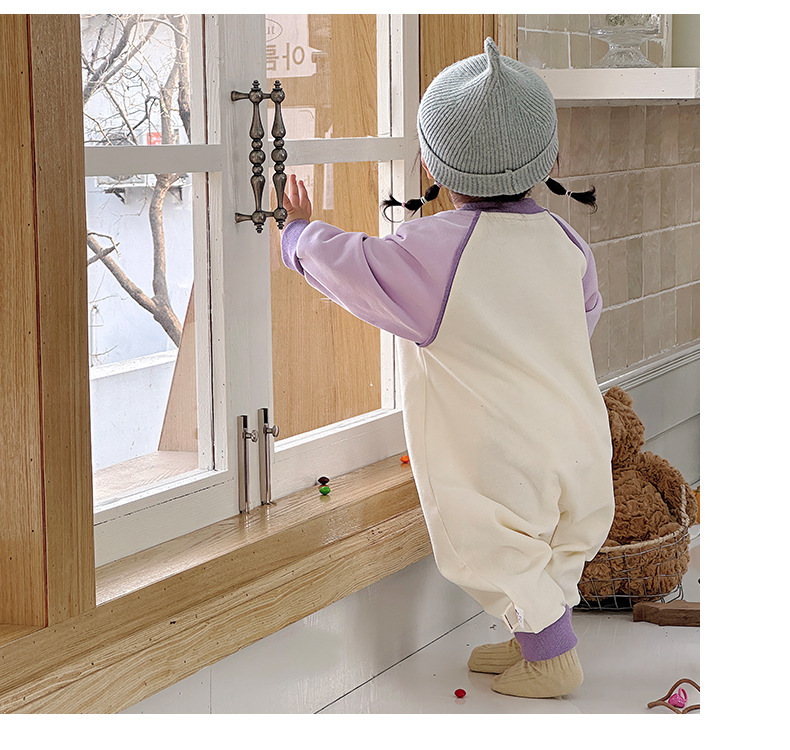 Primavera nuevo estilo bebé mono recién nacido dibujos animados casual cuello redondo mameluco de manga larga ropa de casa ropa de escalada