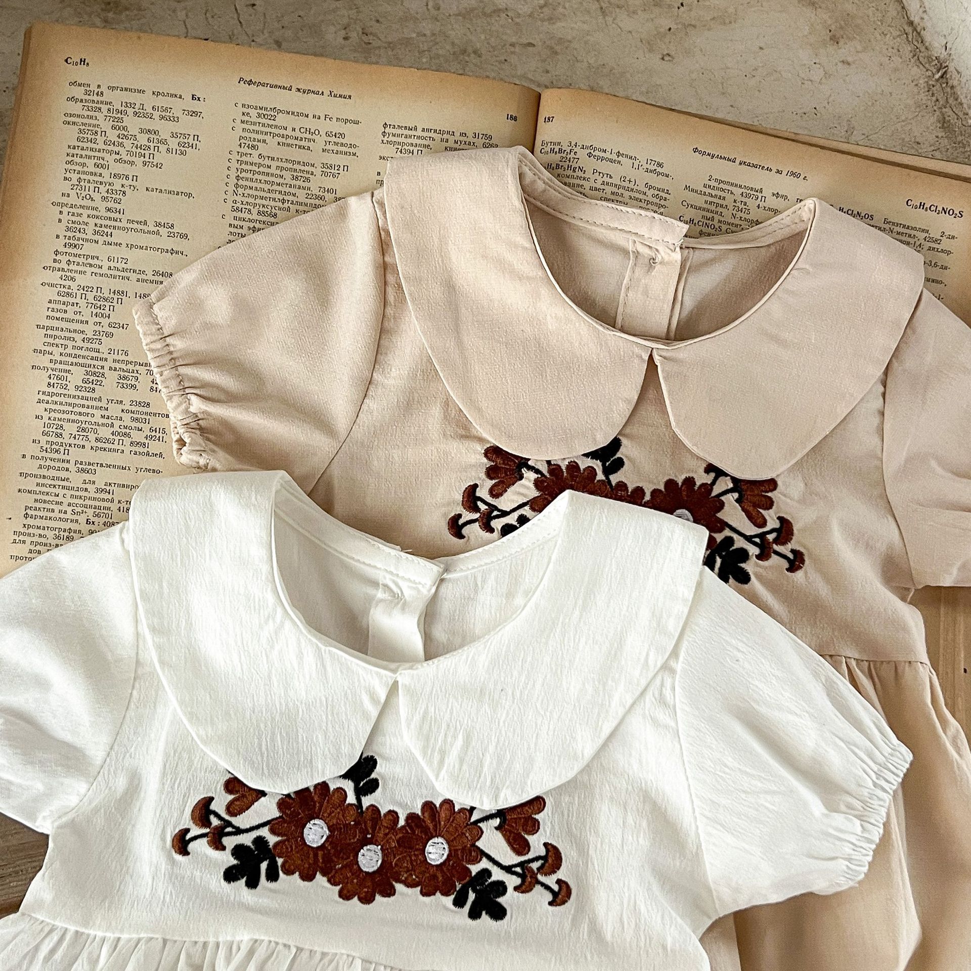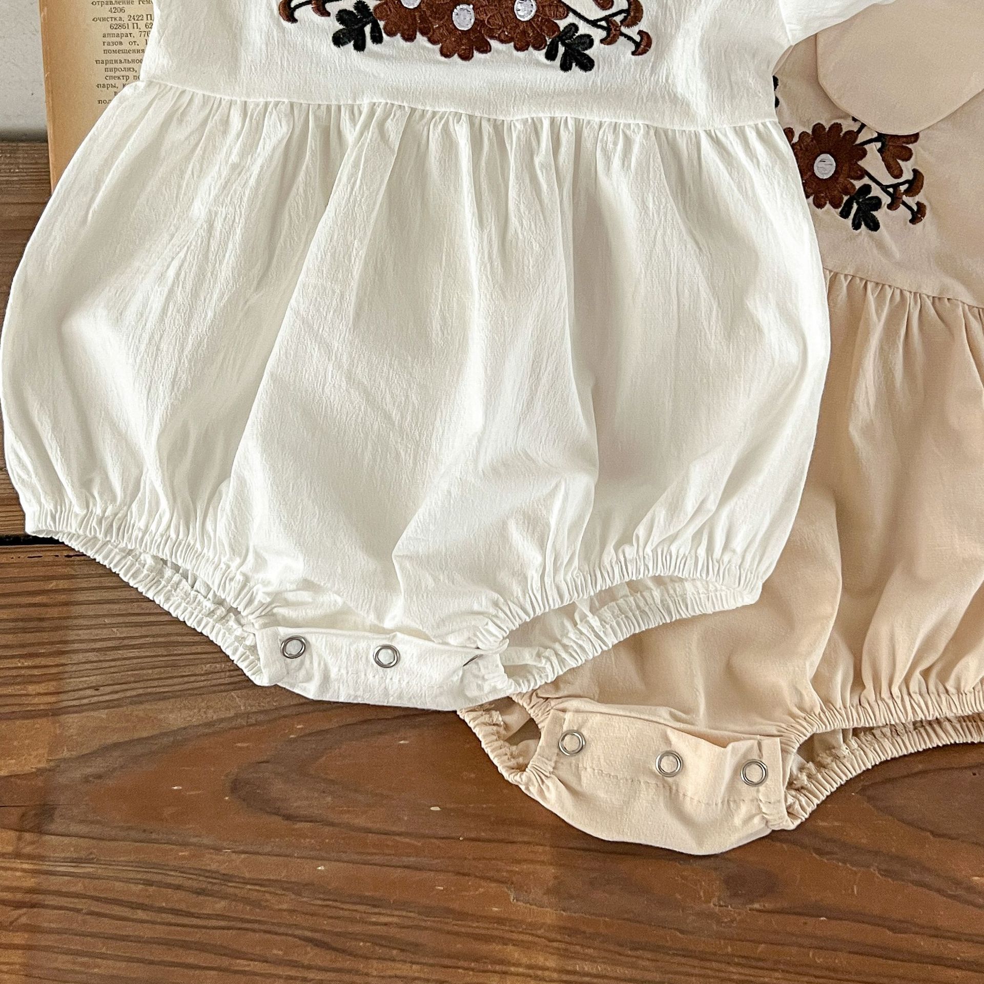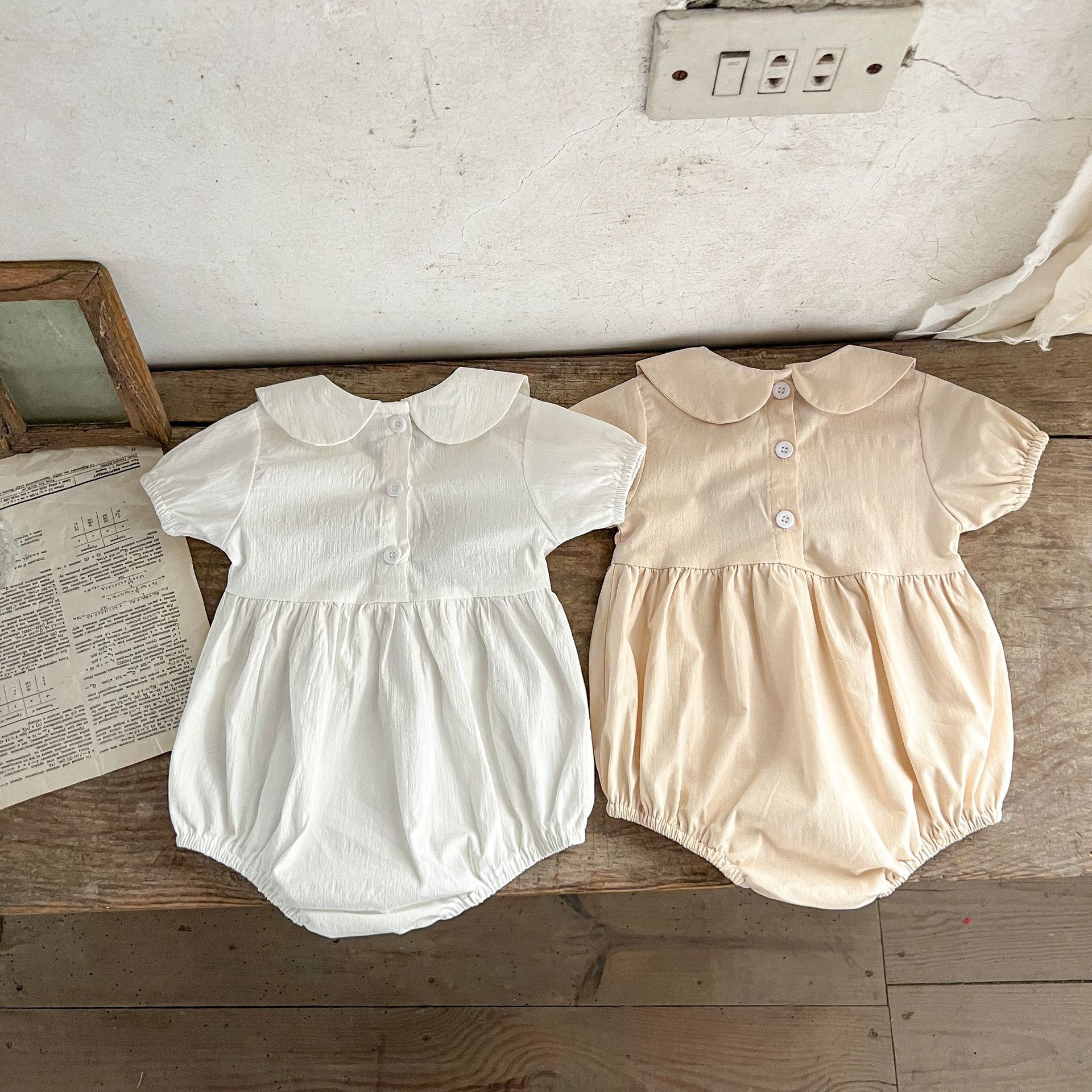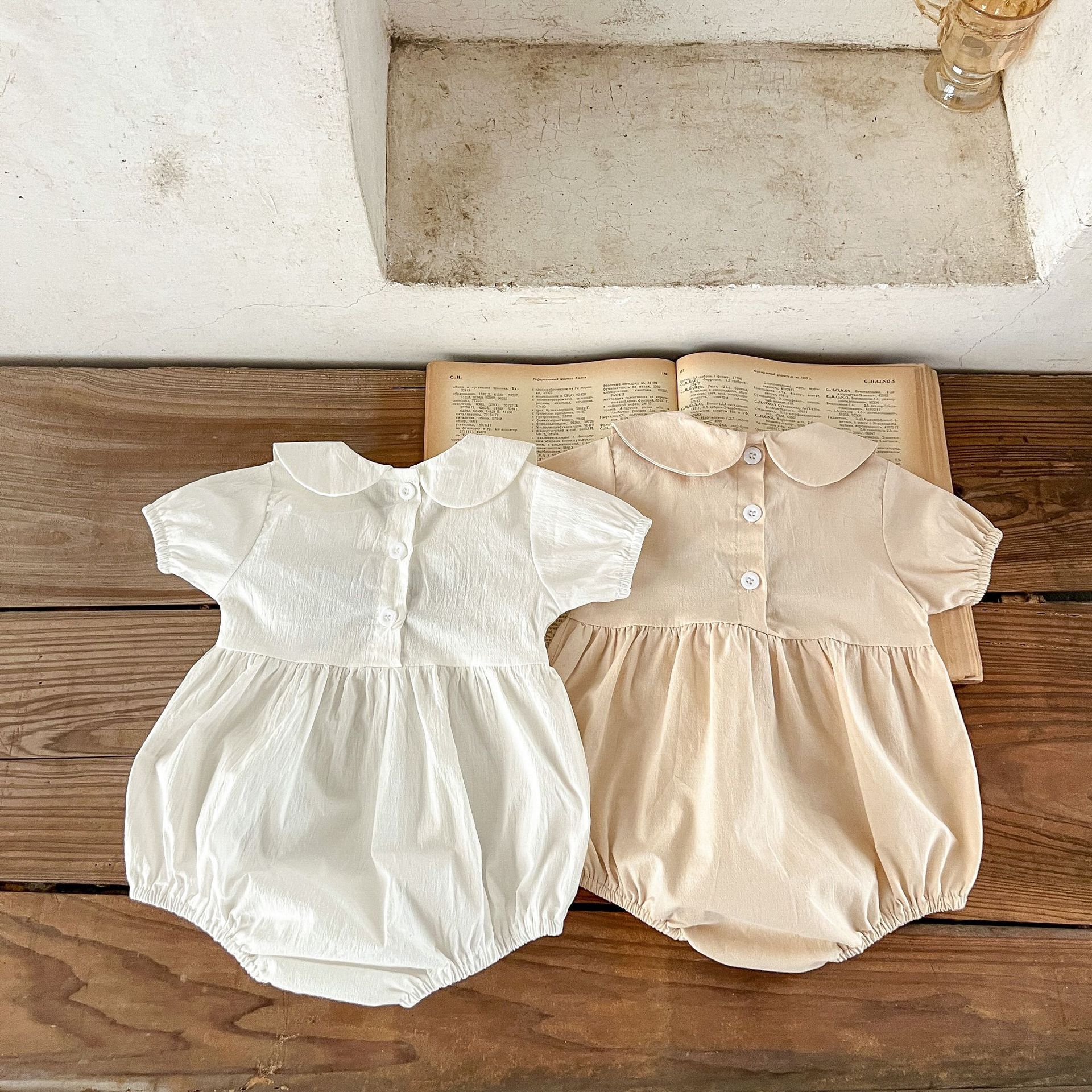 2023 nuevo estilo coreano niñas bebé muñeca collar bordado mameluco ins recién nacido algodón suelta manga corta mameluco