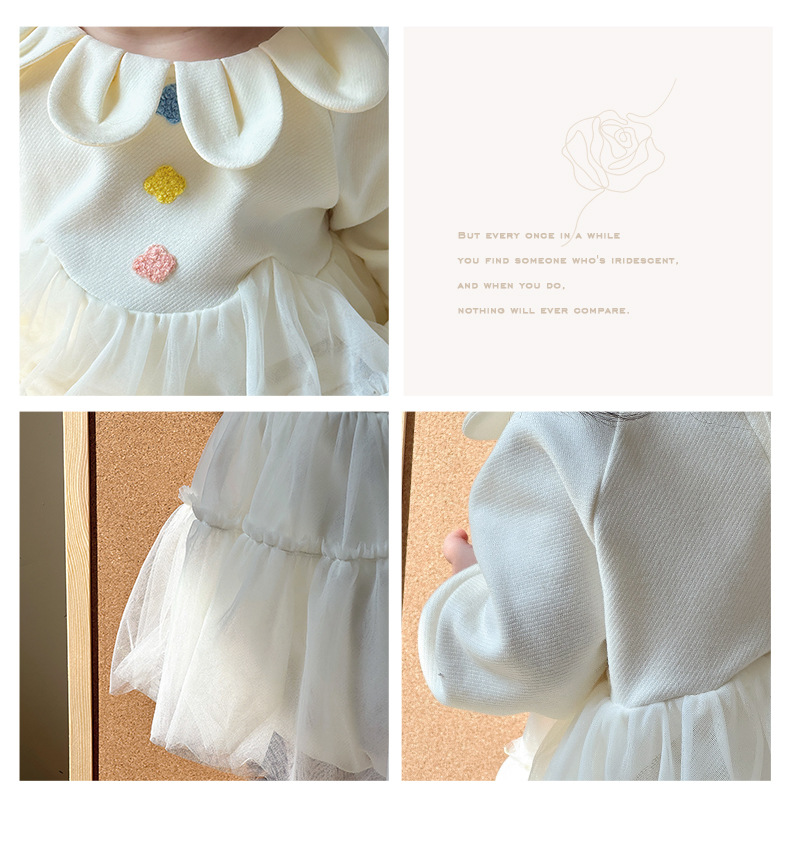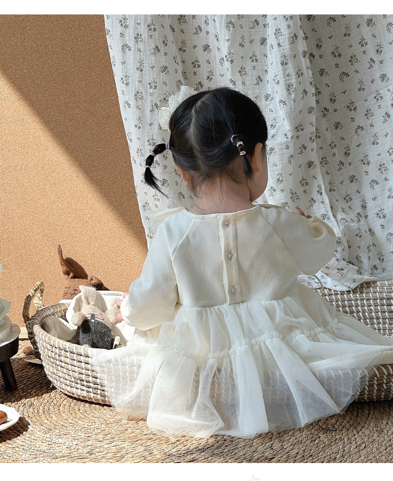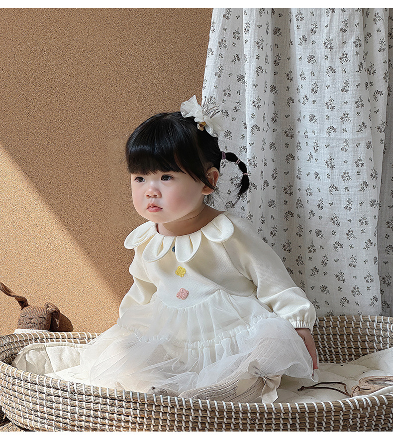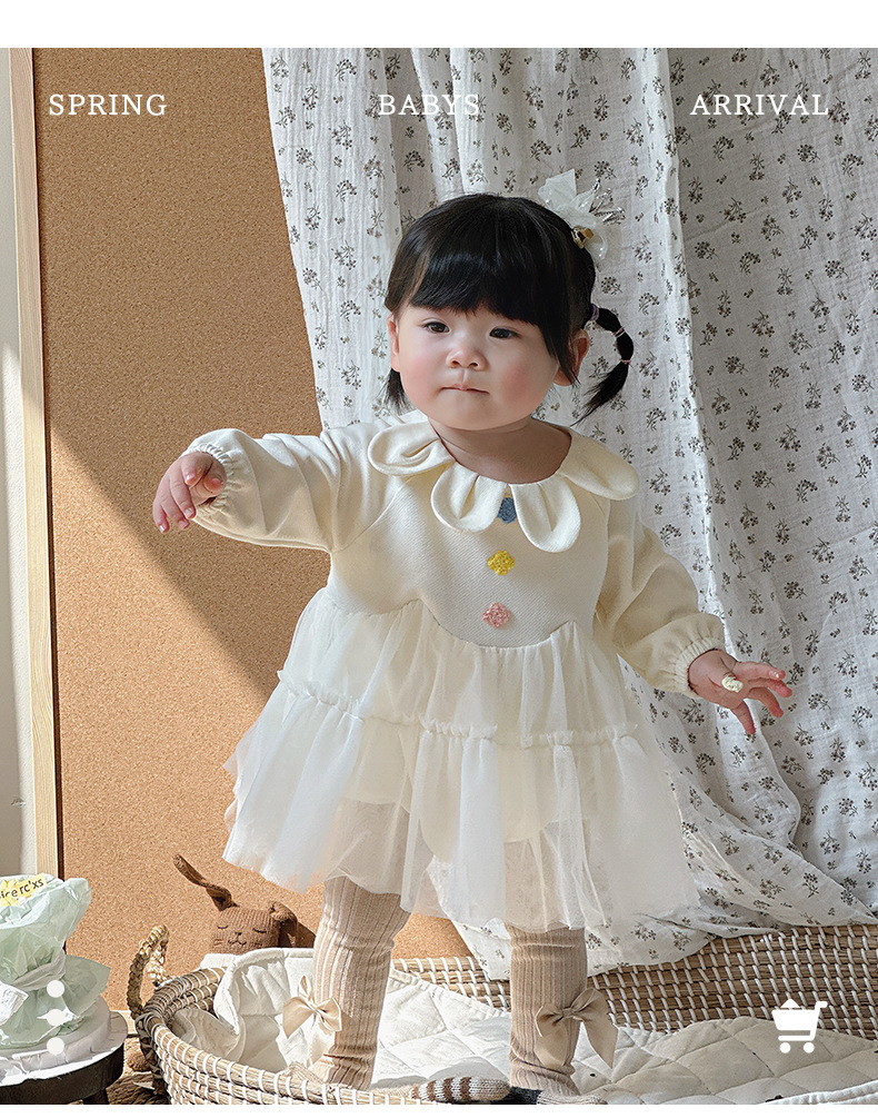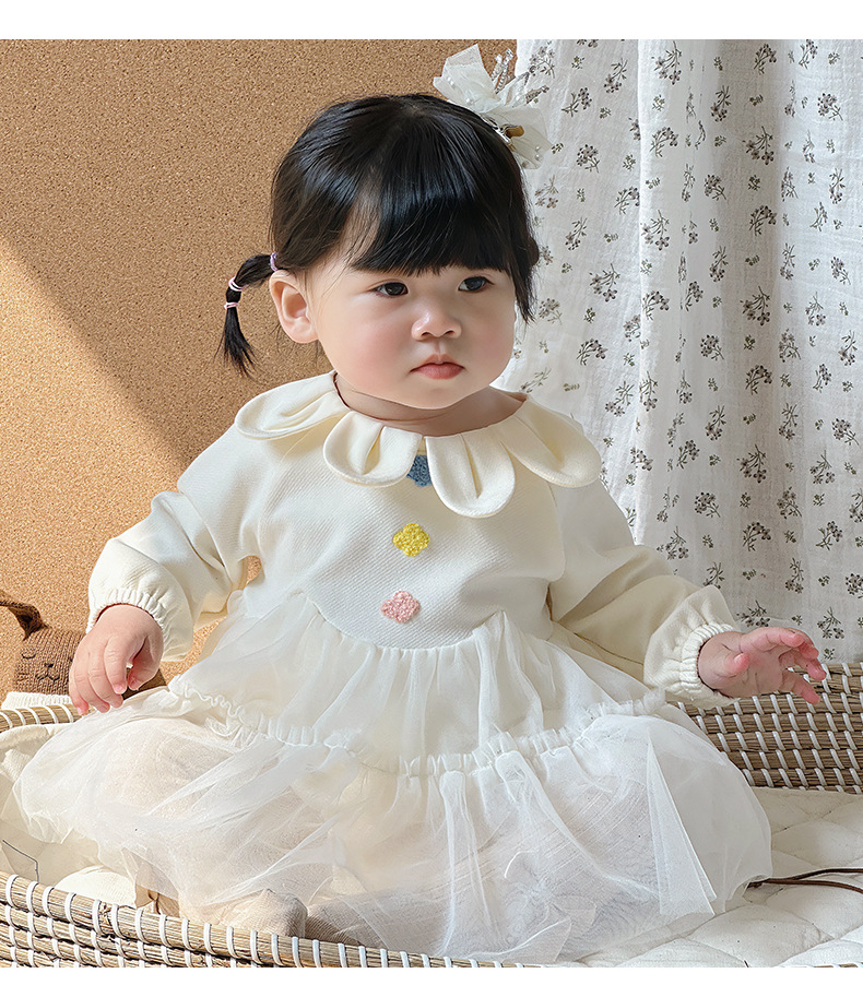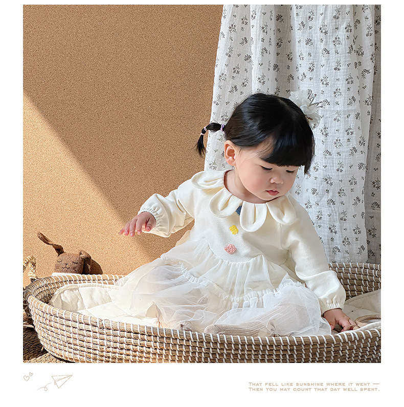 Primavera y otoño ropa para niños niñas bebé coreano cuello de pétalo hilo de red lindo vestido de princesa de una pieza vestido de una pieza vestido de bebé