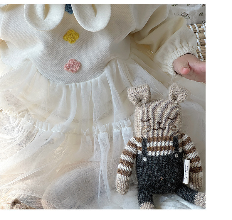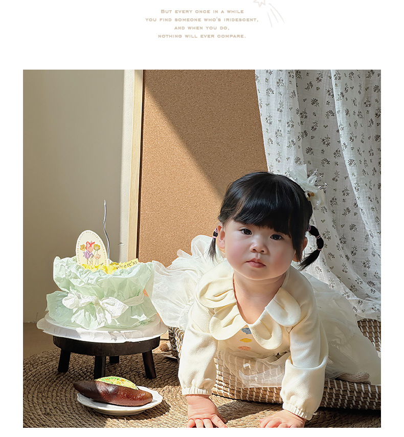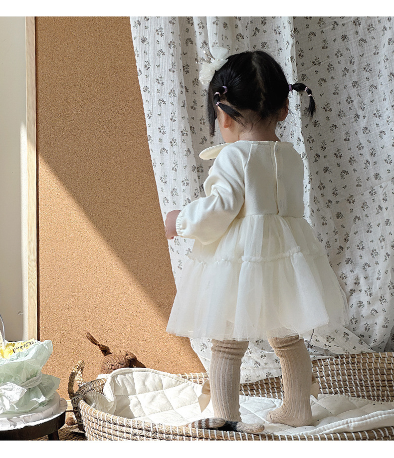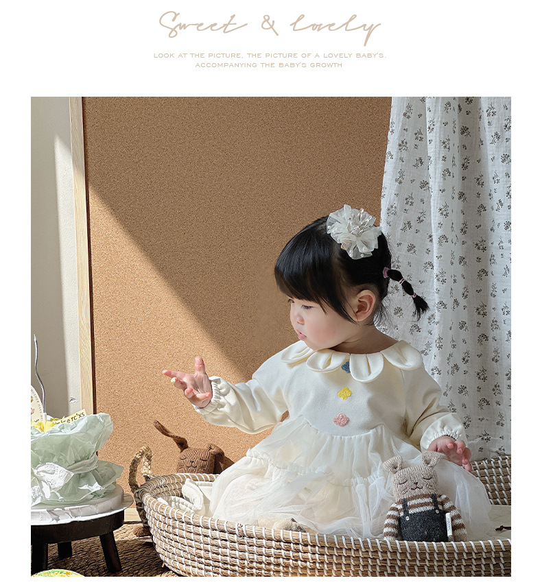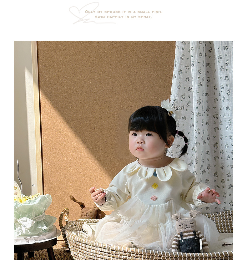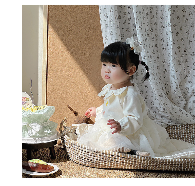 Primavera y otoño ropa para niños niñas bebé coreano cuello de pétalo hilo de red lindo vestido de princesa de una pieza vestido de una pieza vestido de bebé