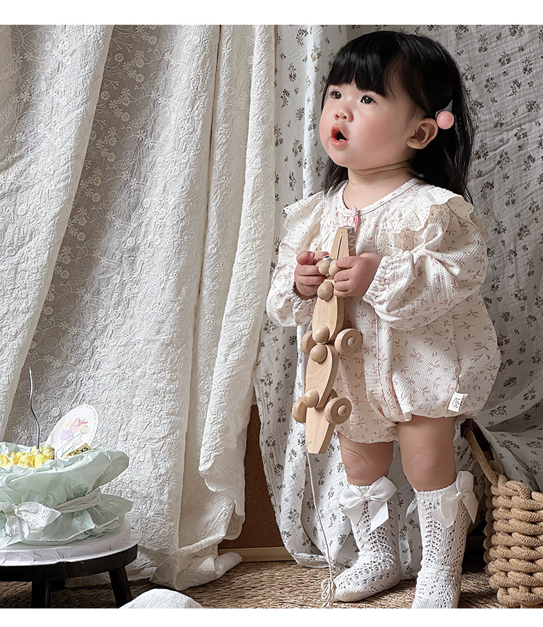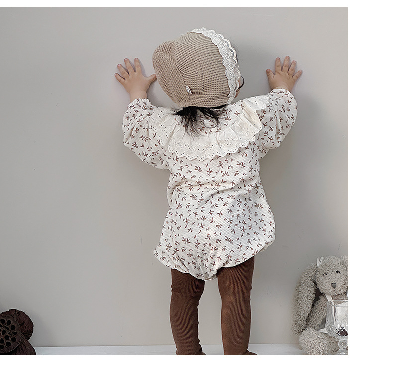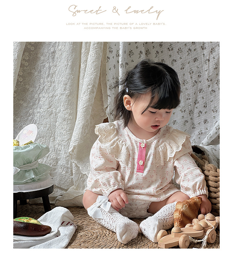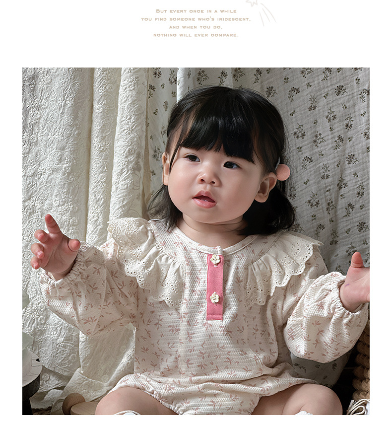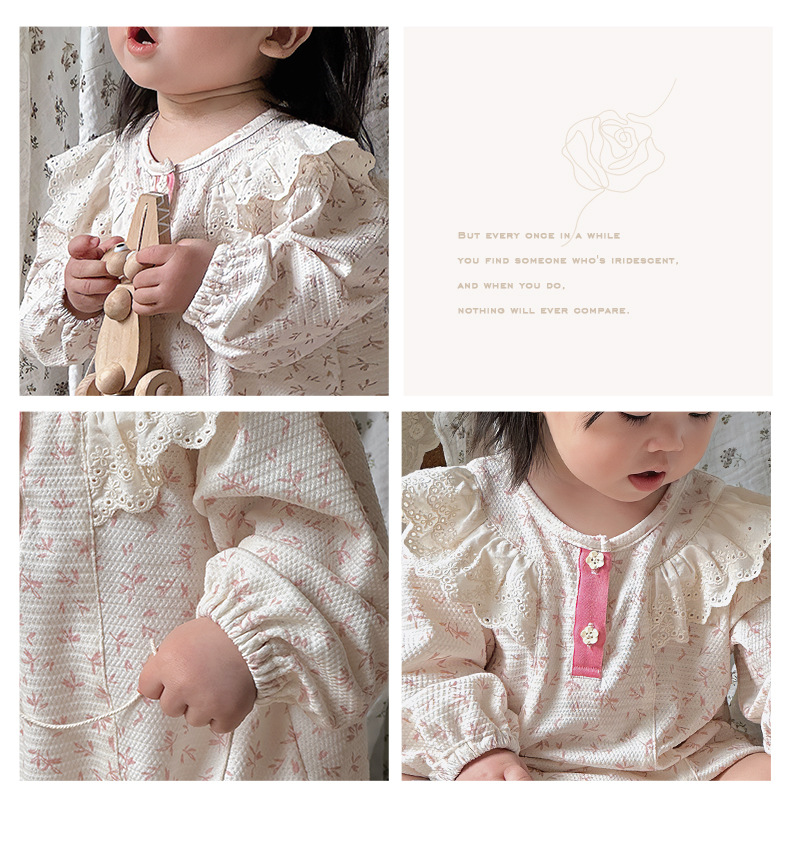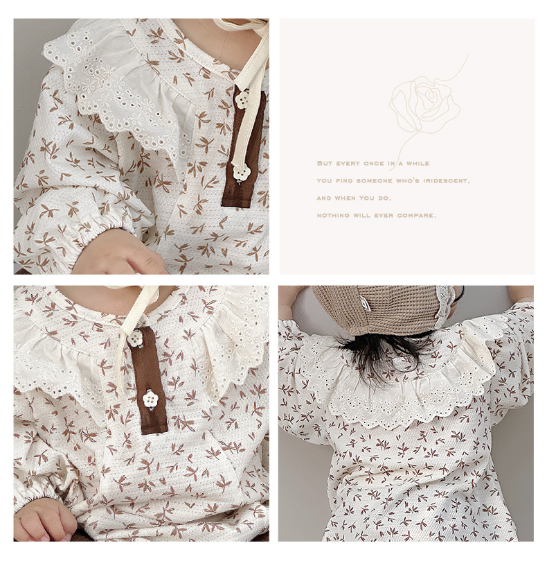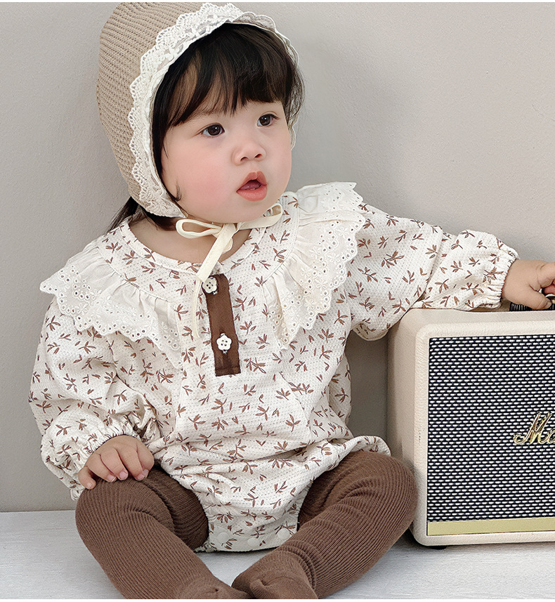 Primavera nuevo estilo bebé francés dulce floral de manga larga pedo estilo occidental princesa bebé hermana traje triángulo gatear