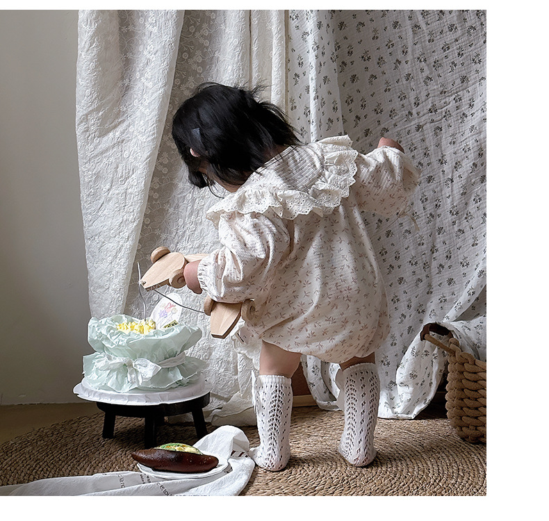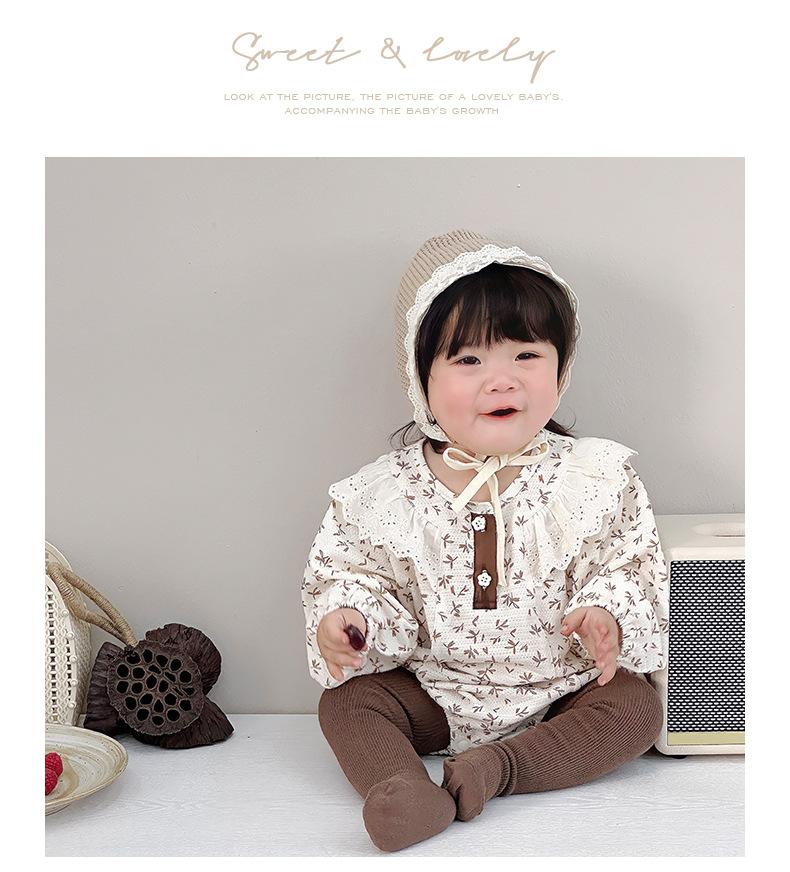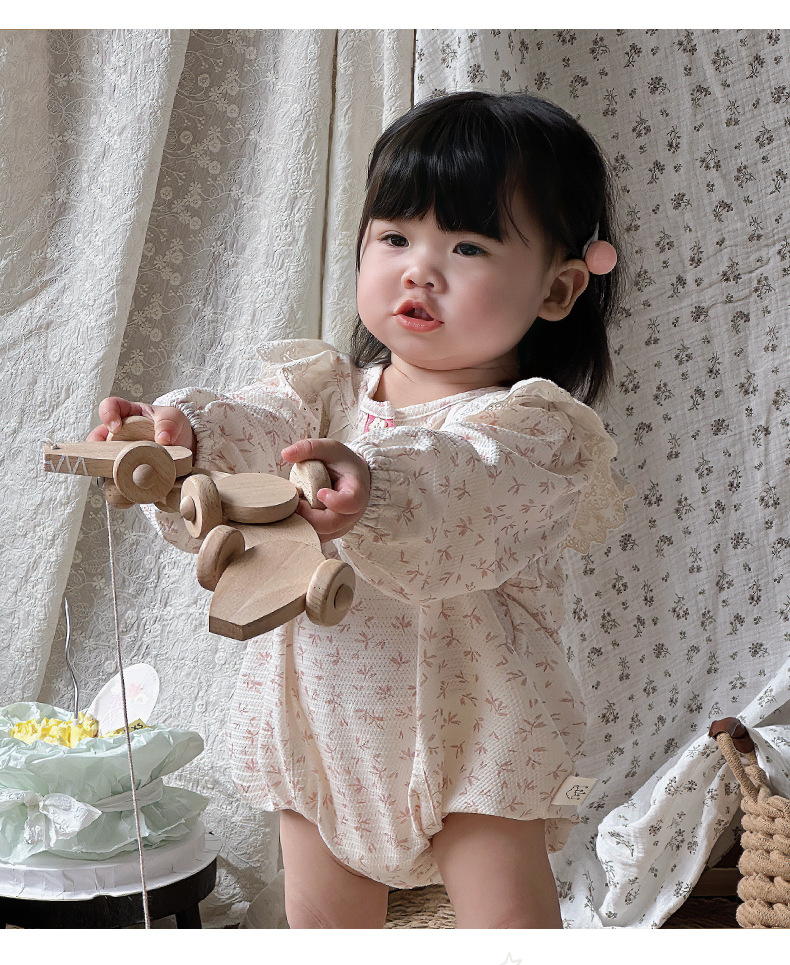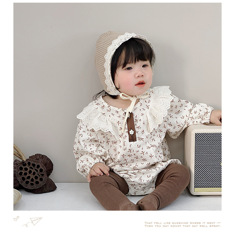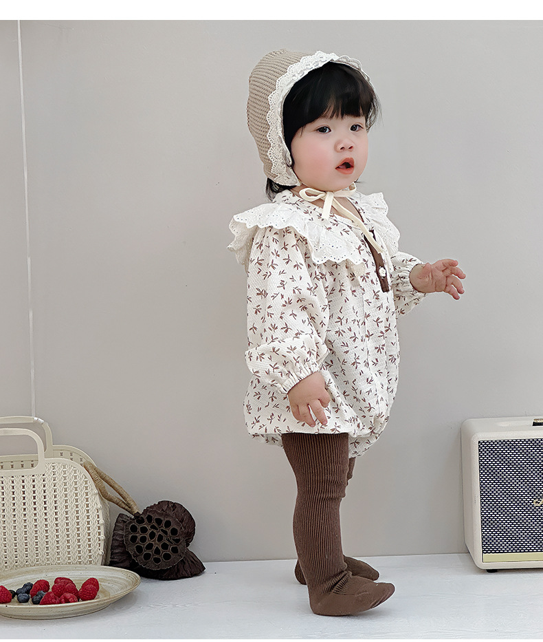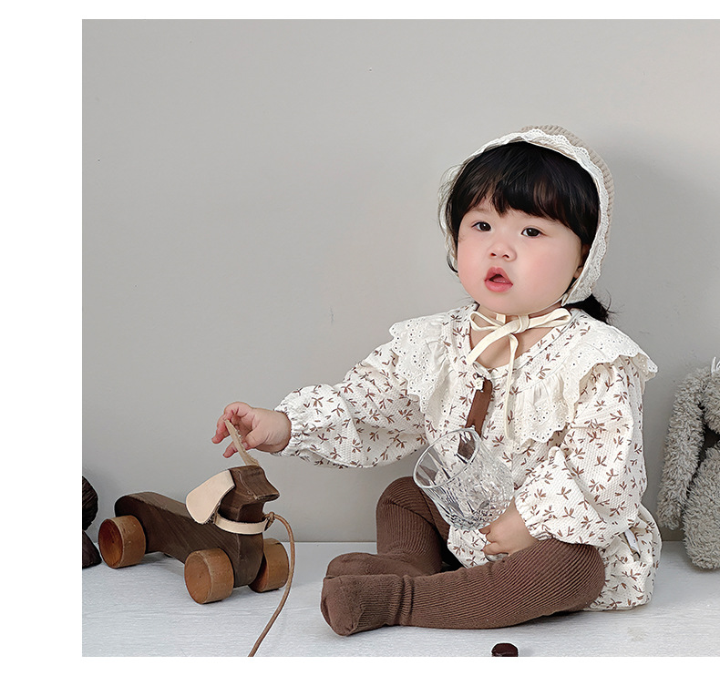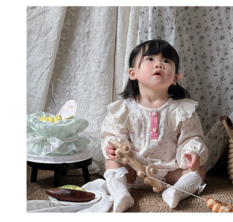 Primavera nuevo estilo bebé francés dulce floral de manga larga pedo estilo occidental princesa bebé hermana traje triángulo gatear