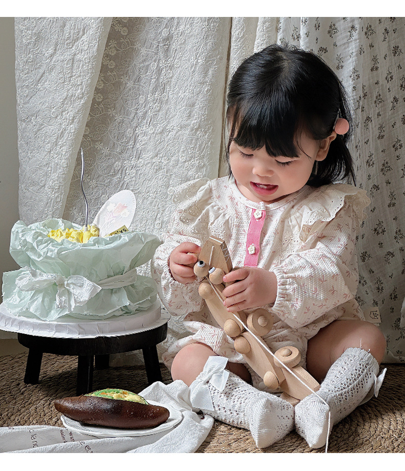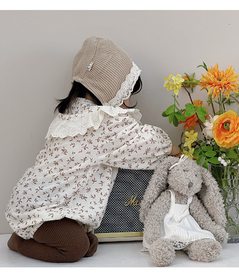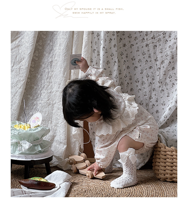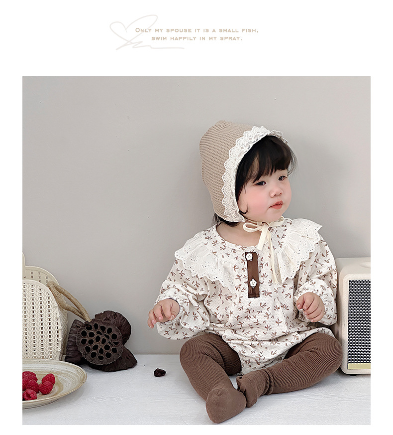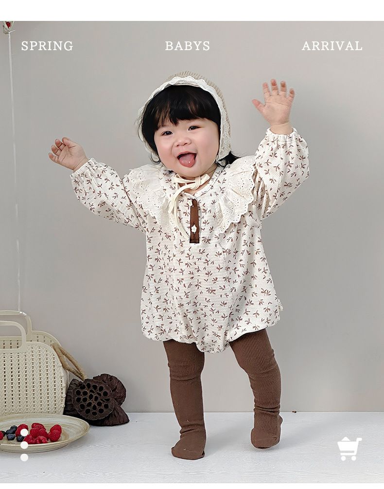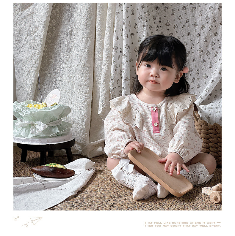 Primavera nuevo estilo bebé francés dulce floral de manga larga pedo estilo occidental princesa bebé hermana traje triángulo gatear