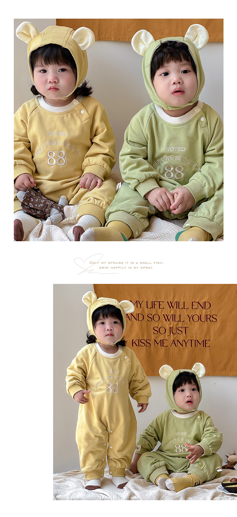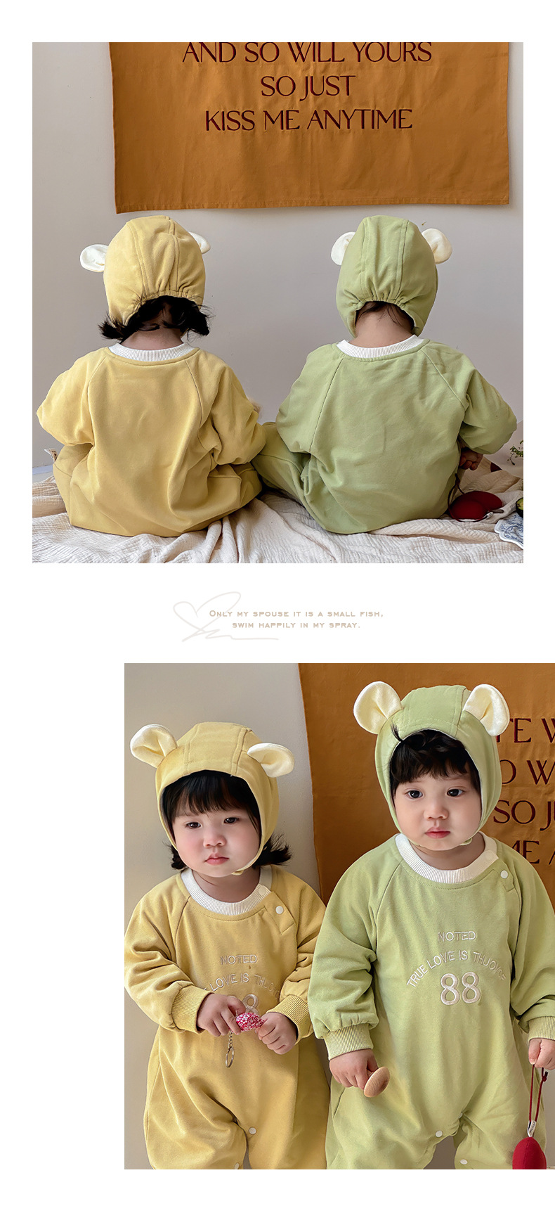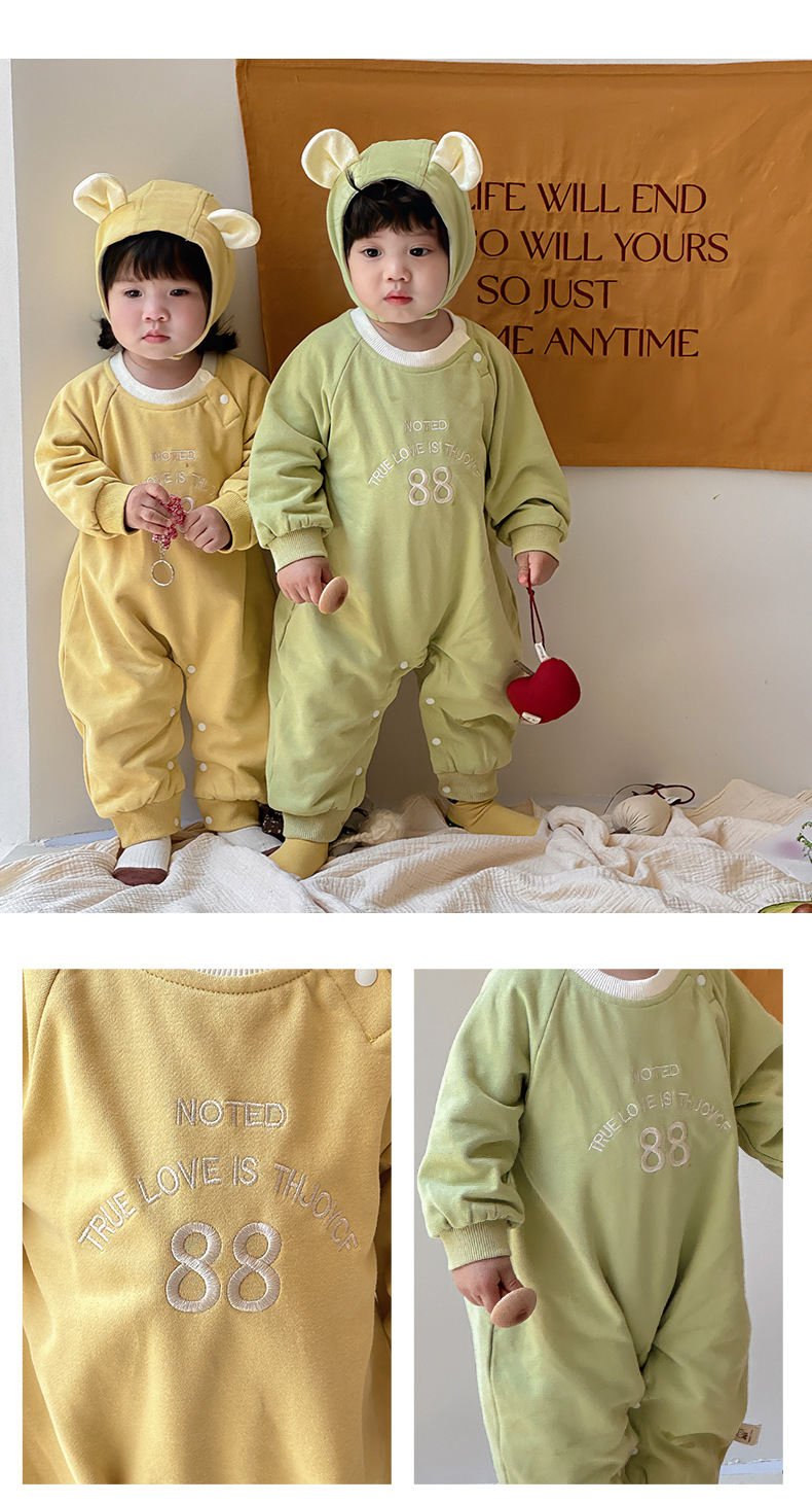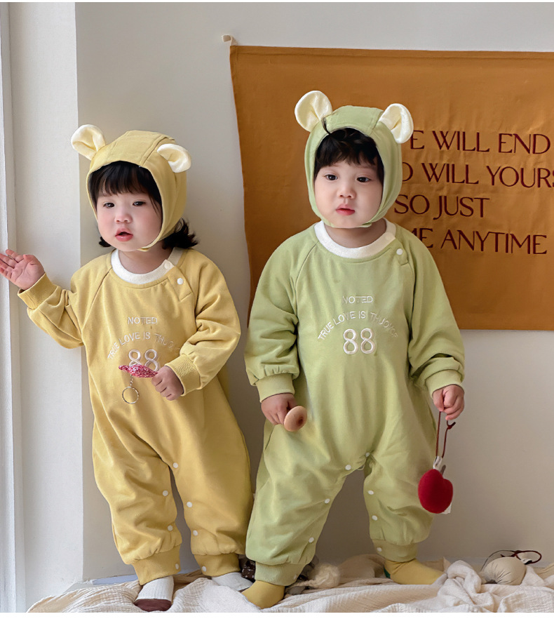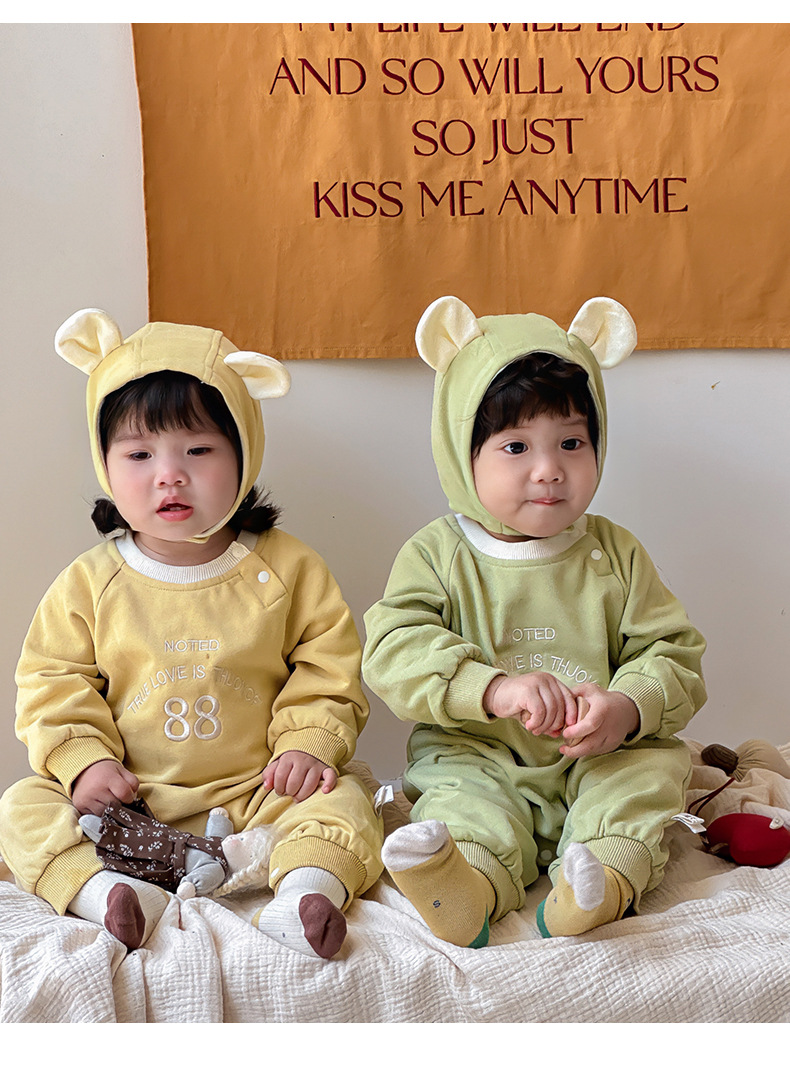 Ropa para niños coreanos 2025 ropa de primavera mono de 0-2 años mampara bebé con gorra, bebé desmontable, mampara de hermano y hermana