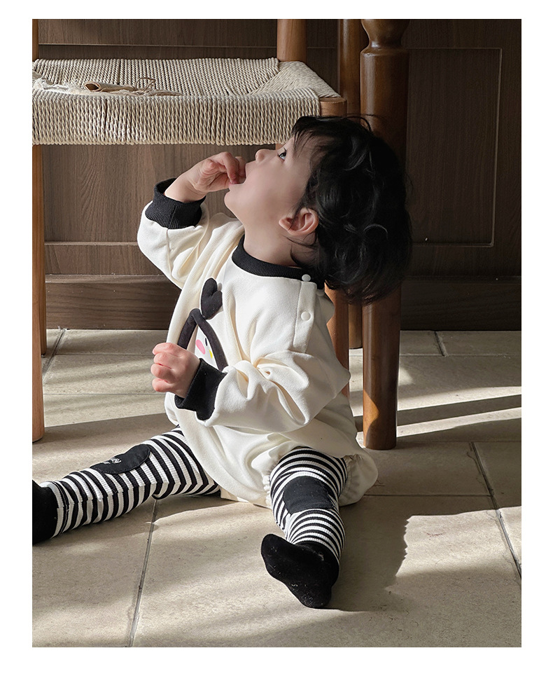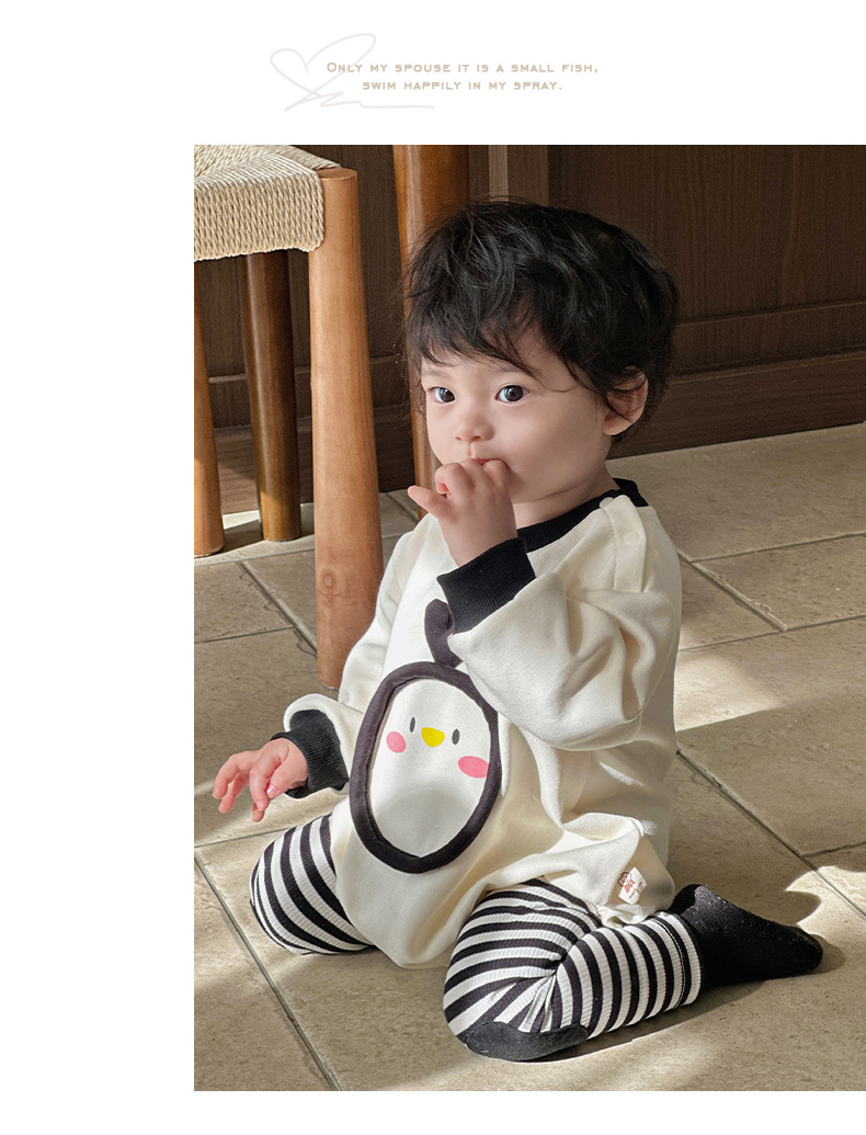 Ropa para niños coreanos, primavera de 2025, traje de gatear para bebés de manga larga, traje de una pieza para bebés masculinos, traje de gatear triangular