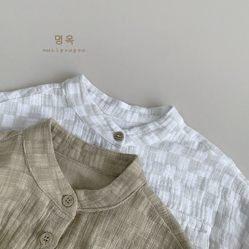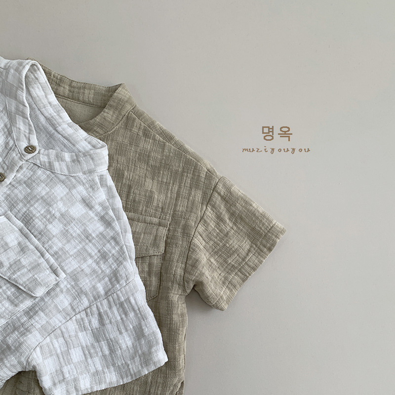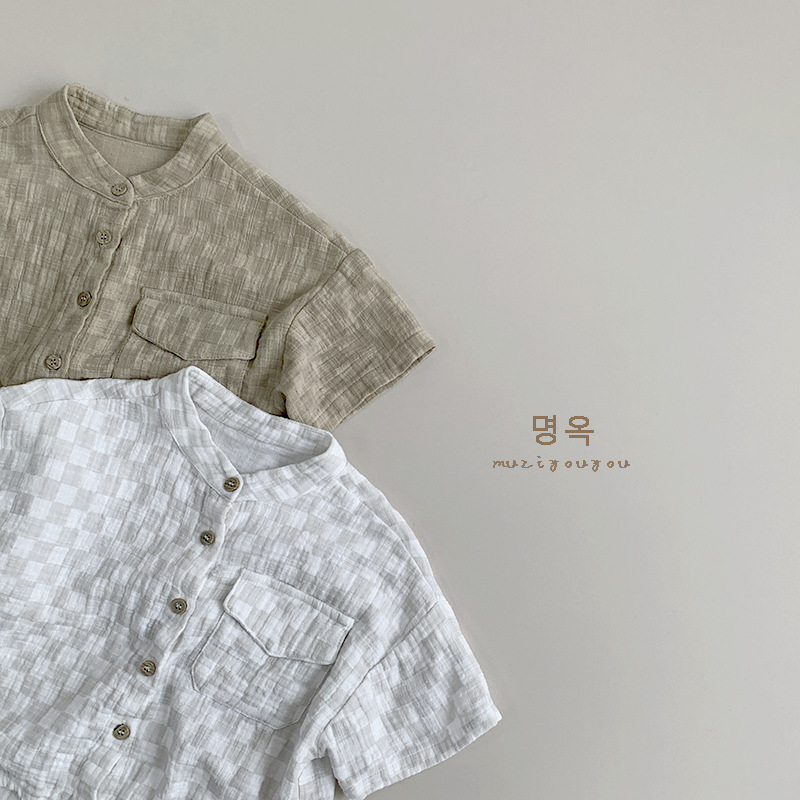 Camisa a cuadros para niños Camisa de manga corta de algodón fino para niños y niñas de verano