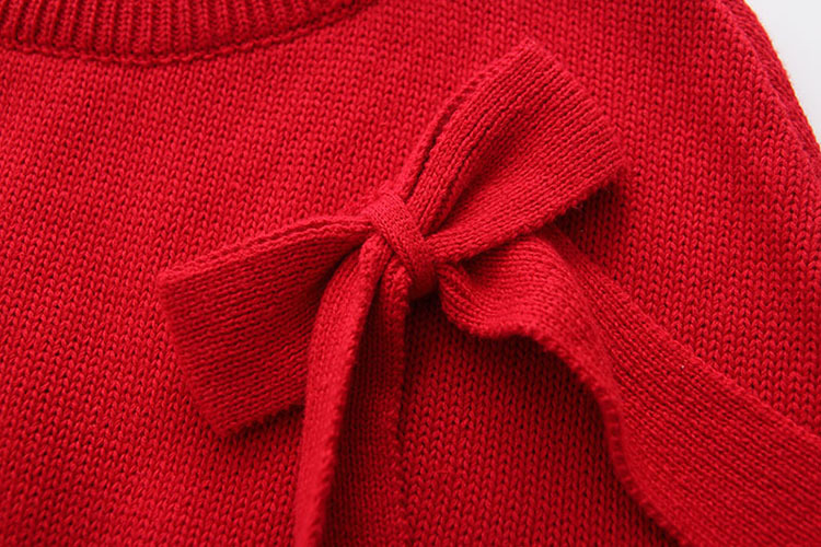 Chal de ropa infantil de otoño e invierno europeo y americano 2020 para niños capa de punto rojo para niños arco suéter de niña capa superior