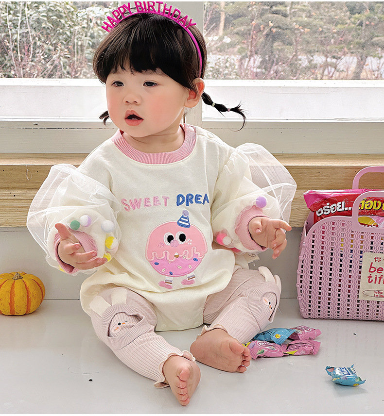 Primavera 2025 nuevo traje de escalada de bola de lana de jaula de manga de malla lindo y súper lindo bebé recién nacido abrigo de pedo femenino