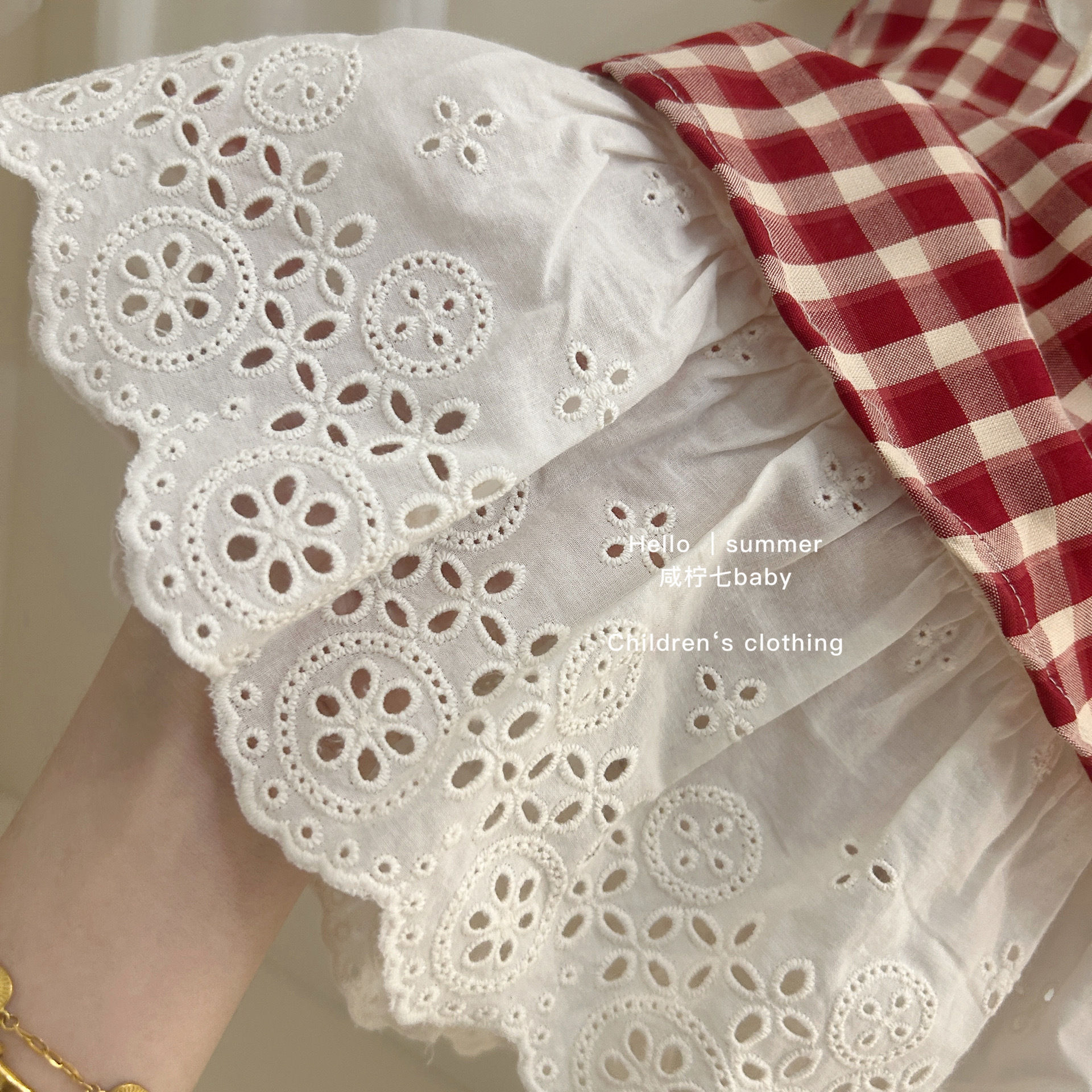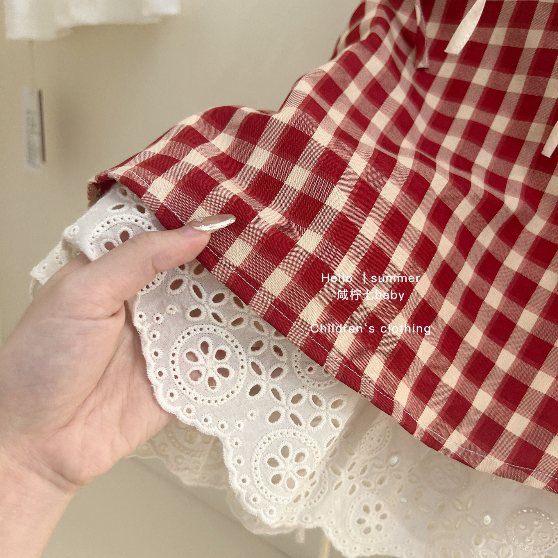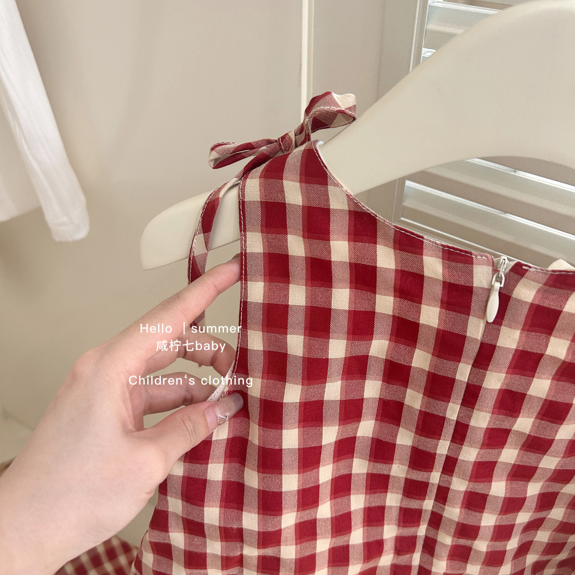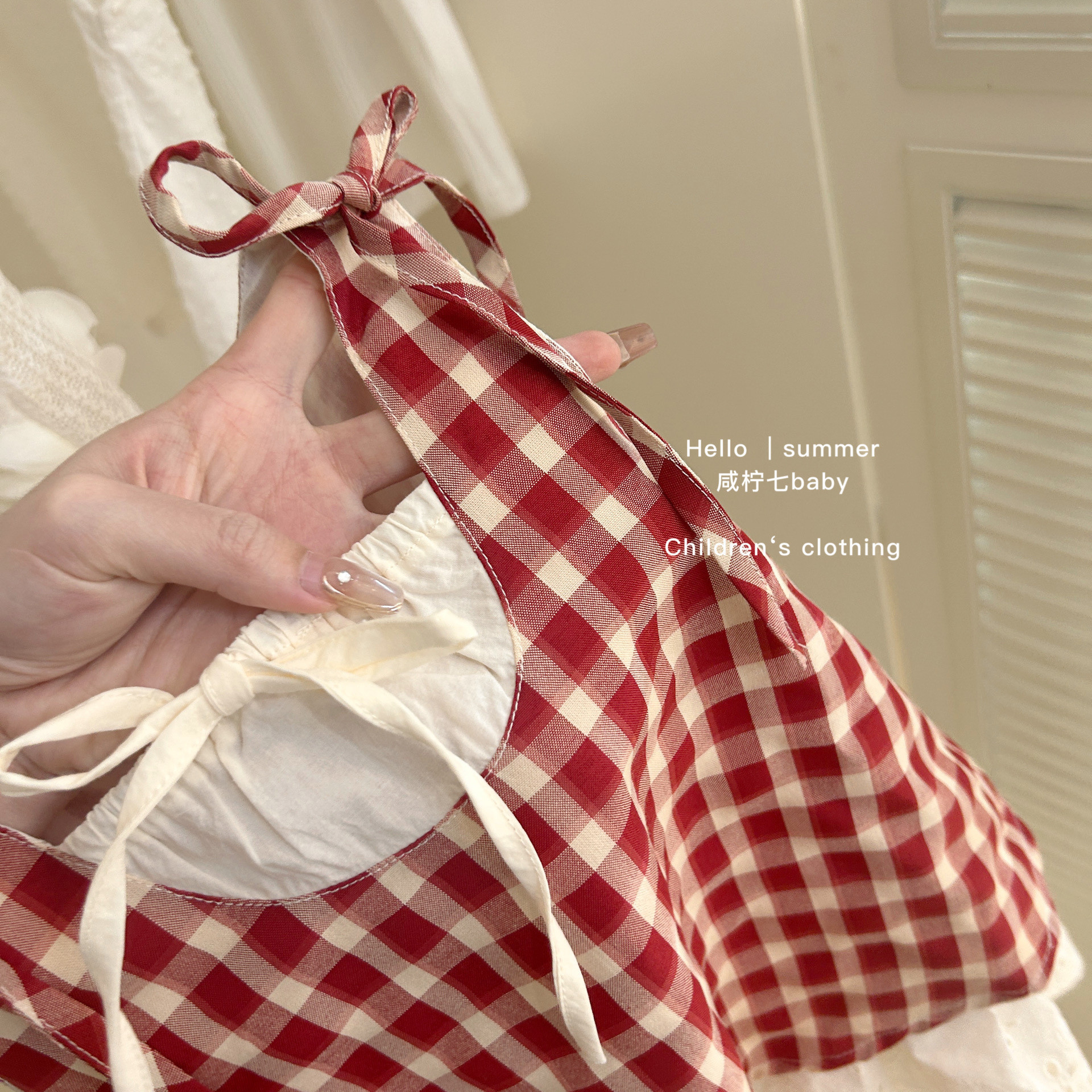 Qianqi ropa infantil de chicas cuadrado rojo falso vestido de dos piezas de verano nuevo chaleco de bebé de moda