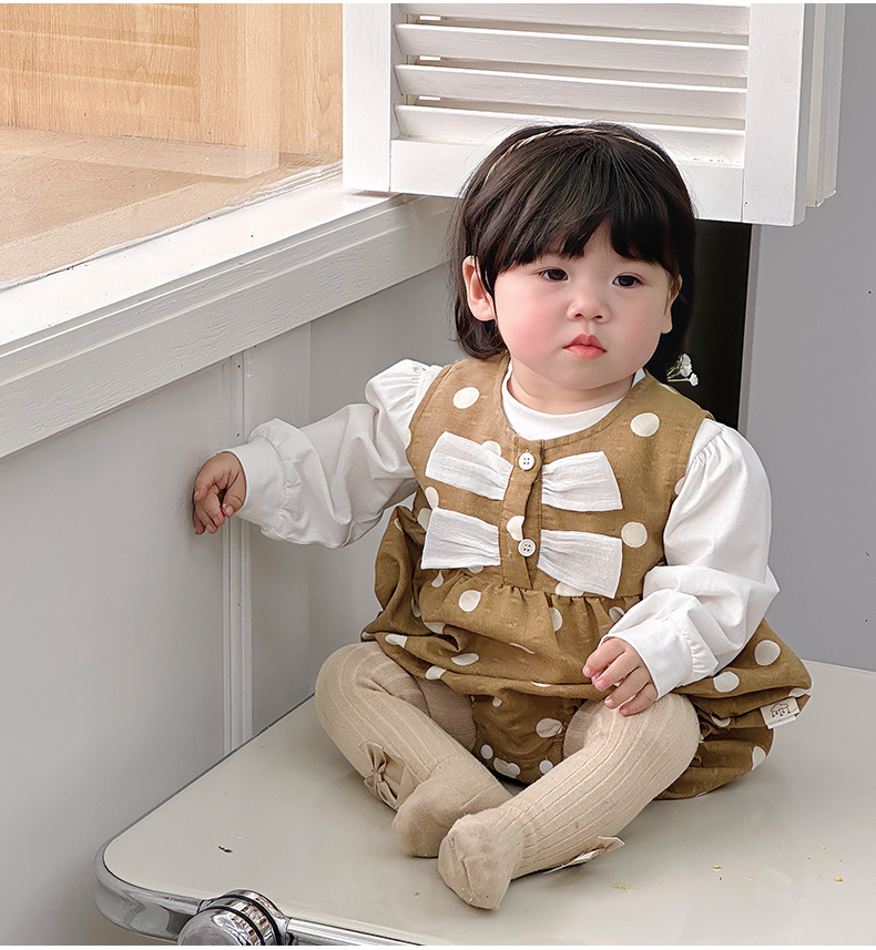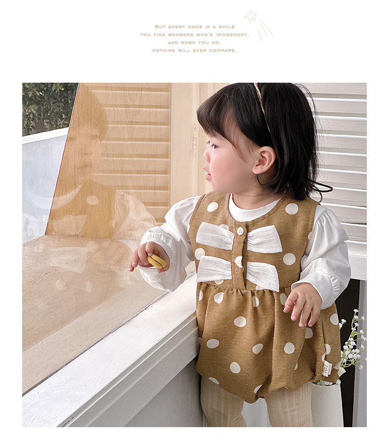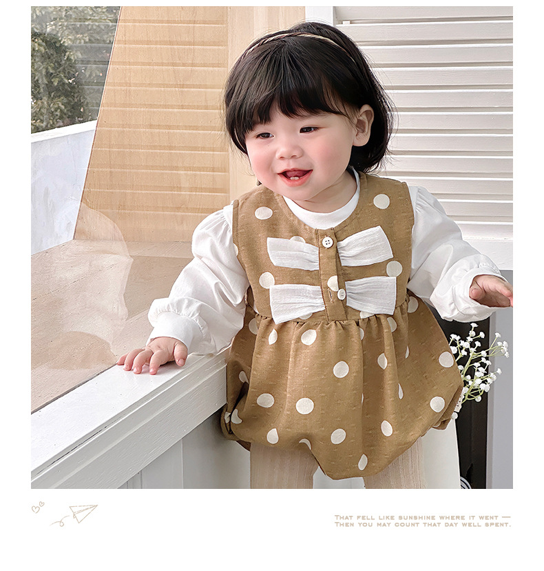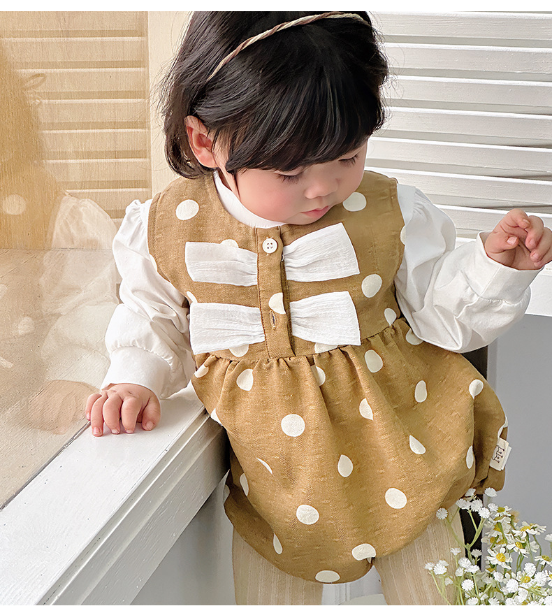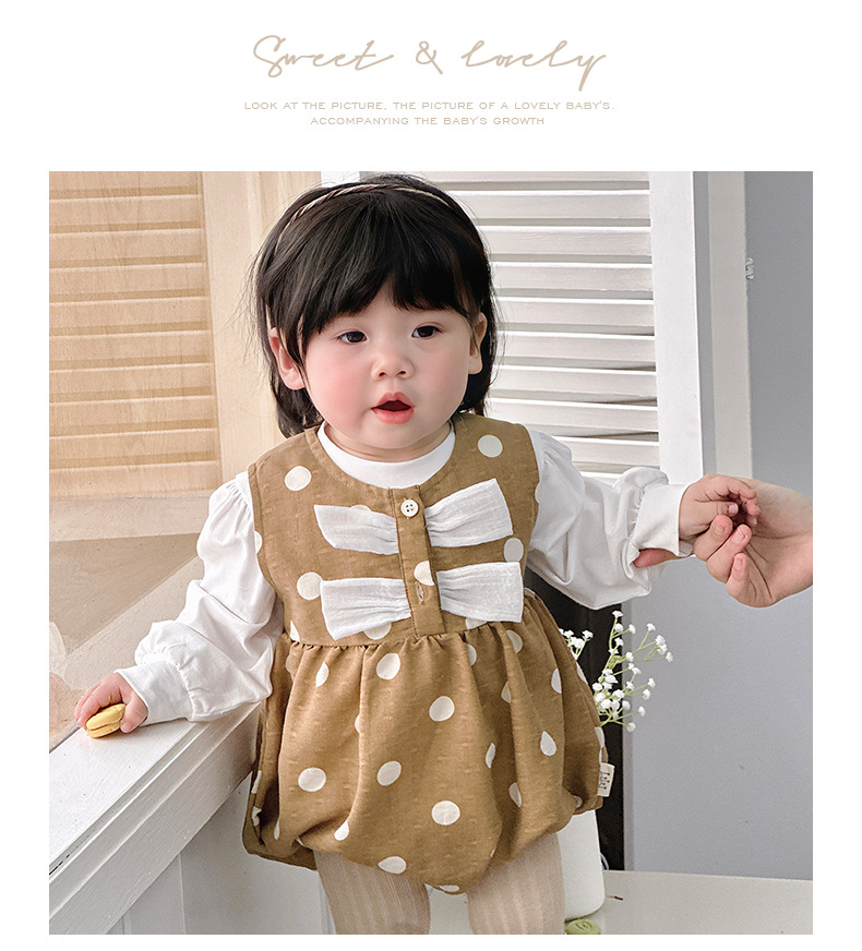 Primavera 2025 nuevo estilo bebé lunares lazo de dos piezas mamelucos mujer bolso de bebé traje de estilo occidental