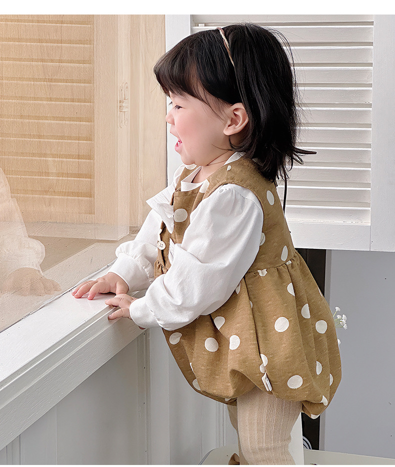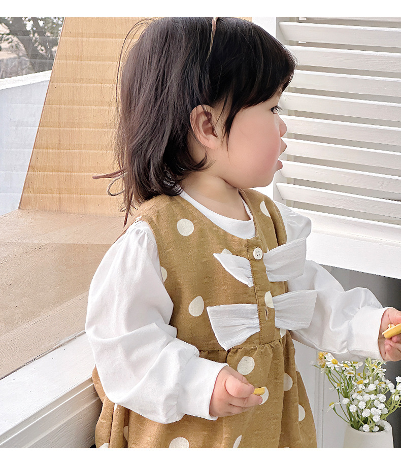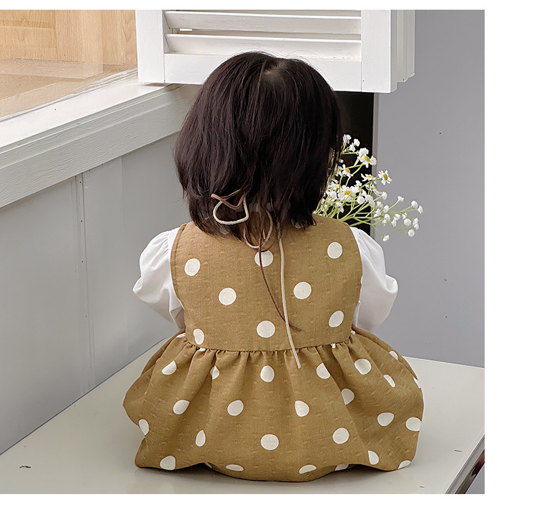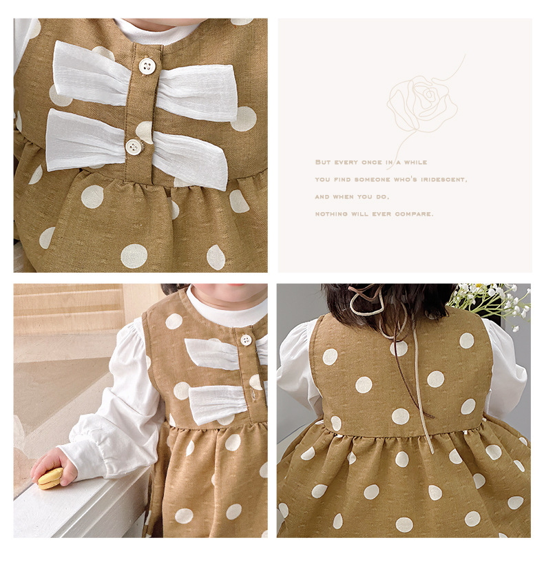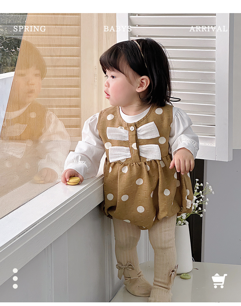 Primavera 2025 nuevo estilo bebé lunares lazo de dos piezas mamelucos mujer bolso de bebé traje de estilo occidental