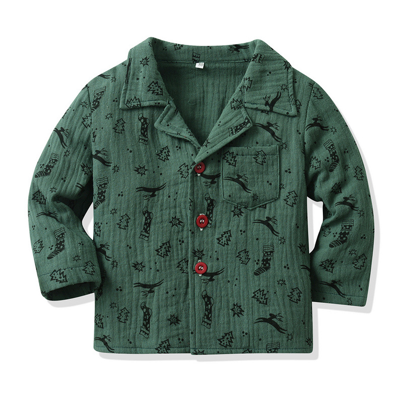 Pijamas infantiles europeos y estadounidenses, camisetas de algodón de mangas largas para niños y niñas, primavera y otoño, impresión de Navidad, nueva ropa de hogar de dos piezas