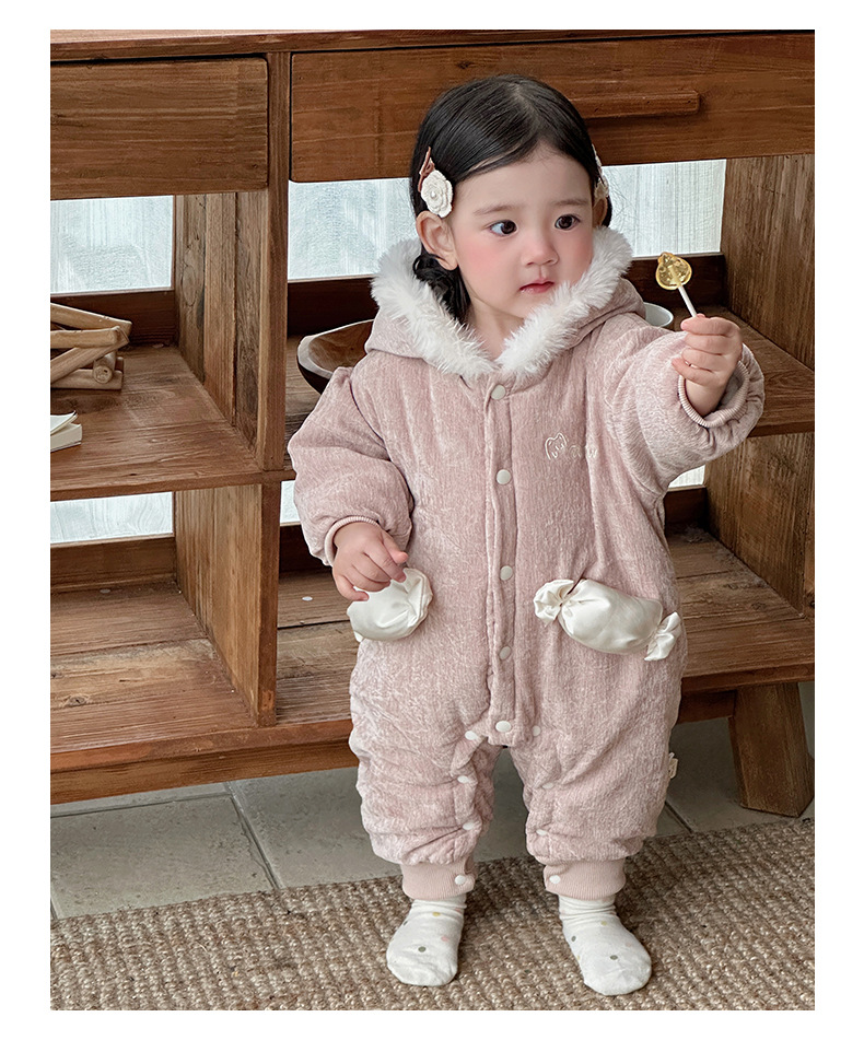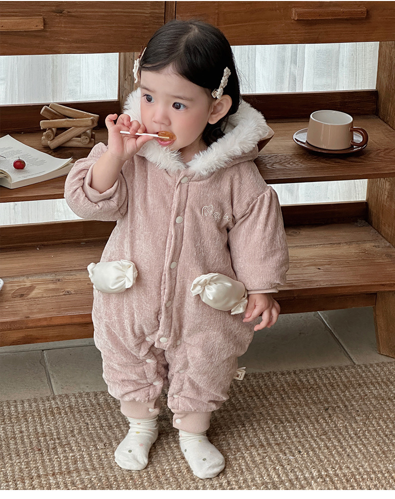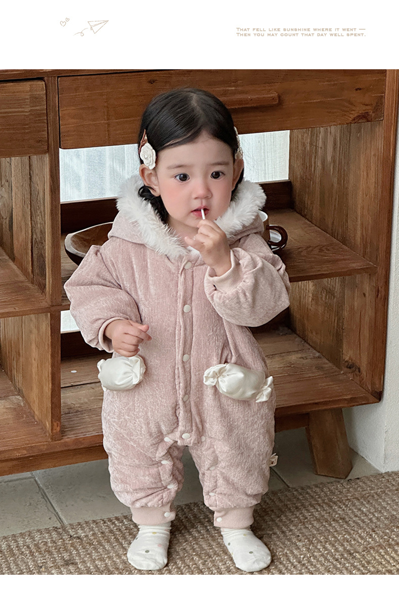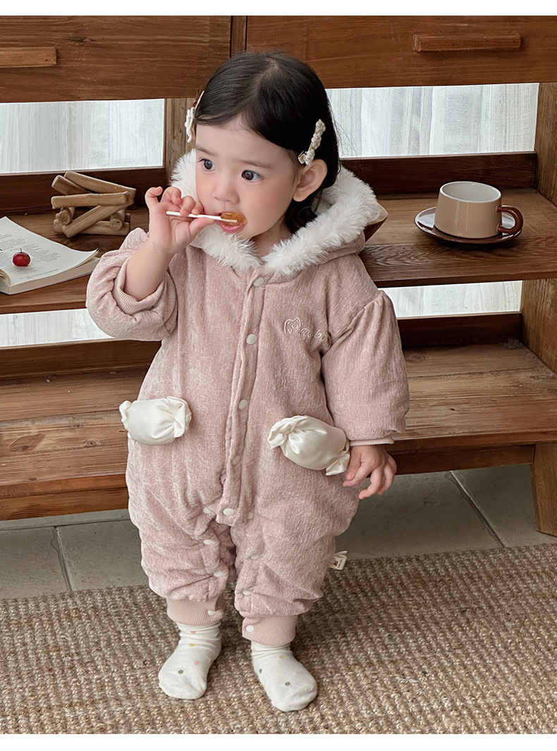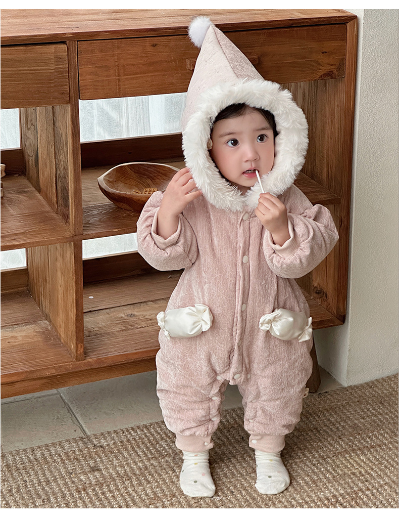 Abrigo de algodón de invierno para bebé, mamelero de caramelo tridimensional grueso estilo princesa para bebé, cien días de luna llena, chaqueta de algodón de una pieza