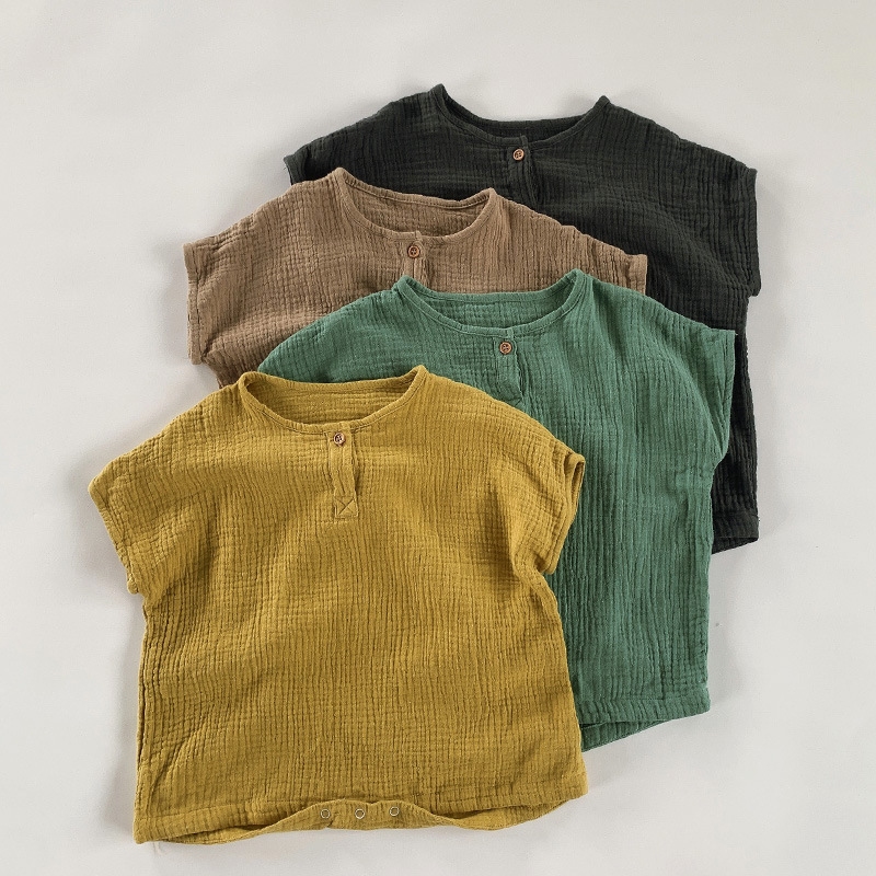 Mono para niños de verano de doble capa de algodón arena delgada transpirable bebé sin mangas mameluco estilo coreano bebé niña ropa para niños