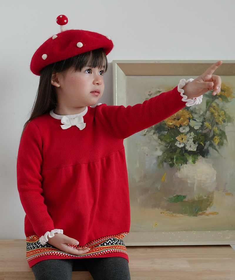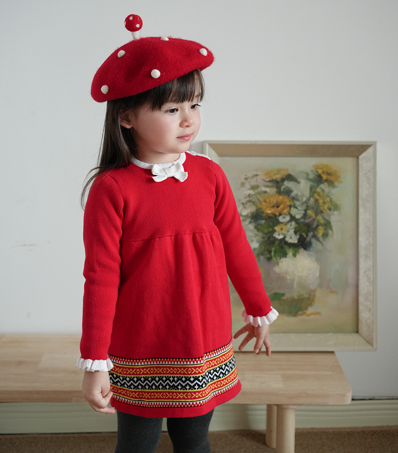 2024 nuevo vestido de punto de las niñas europeas y americanas de primavera y otoño Vestido de princesa Xiaoqi mismo estilo vestido de suéter de algodón para niños