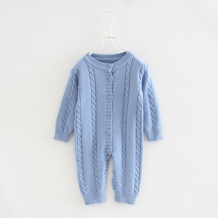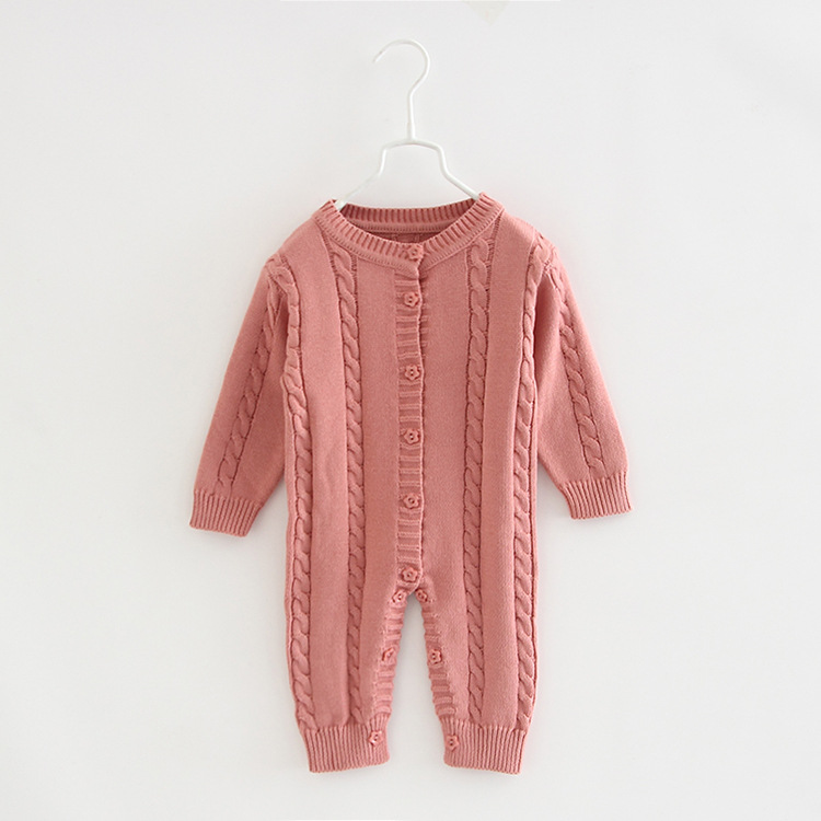Primavera y otoño europeo y americano bebé mameluco de punto invierno de manga larga recién nacido niña suéter de algodón mameluco infantil mono