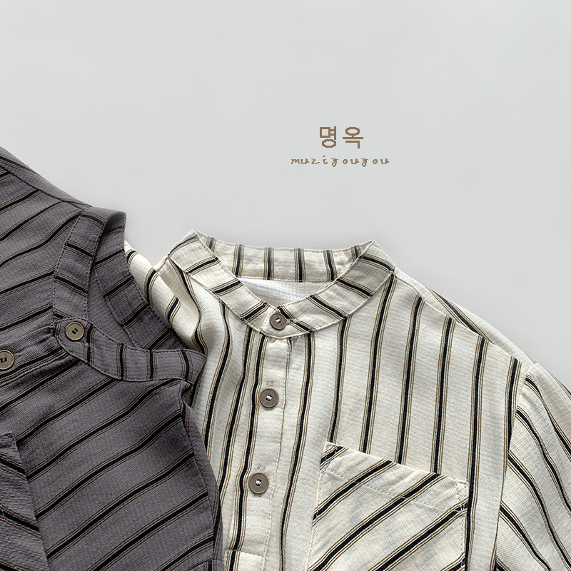 Camisas de moda personales para niños ~ verano nuevo estilo para bebés masculinos y femeninos japoneses de manga corta a rayas rígidas para niños