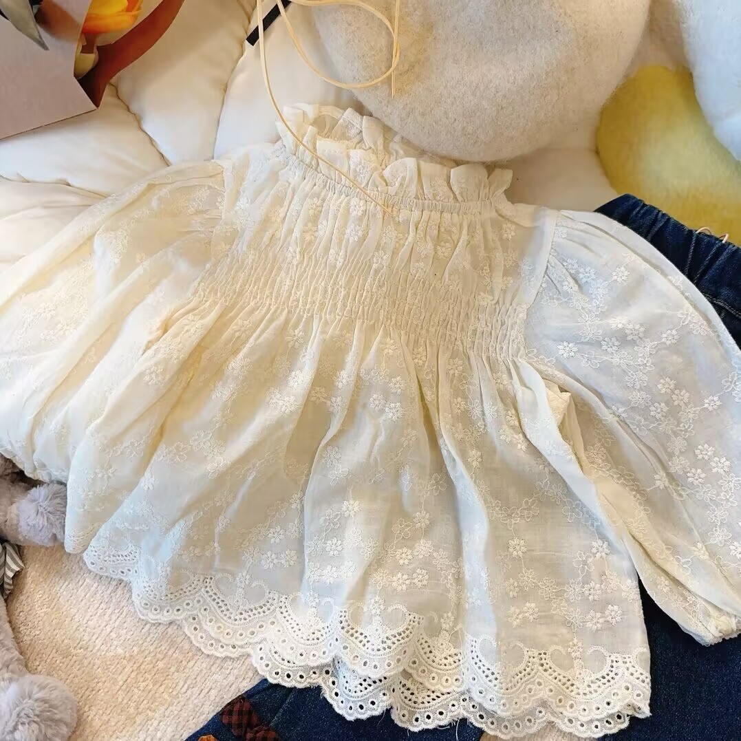 Salty Lime siete camisa para niños Otoño Nuevo estilo coreano ropa para niños bebé lindo encaje bordado camisa de muñeca de alto grado