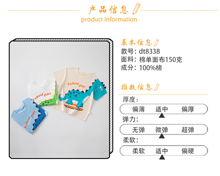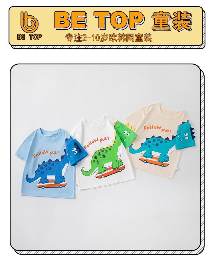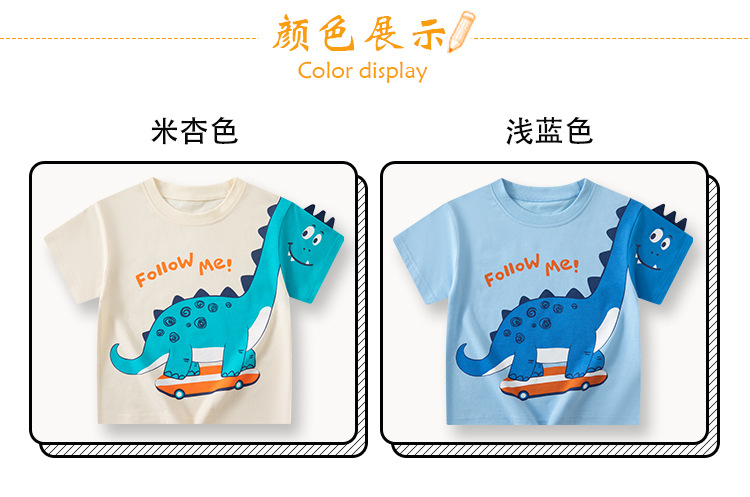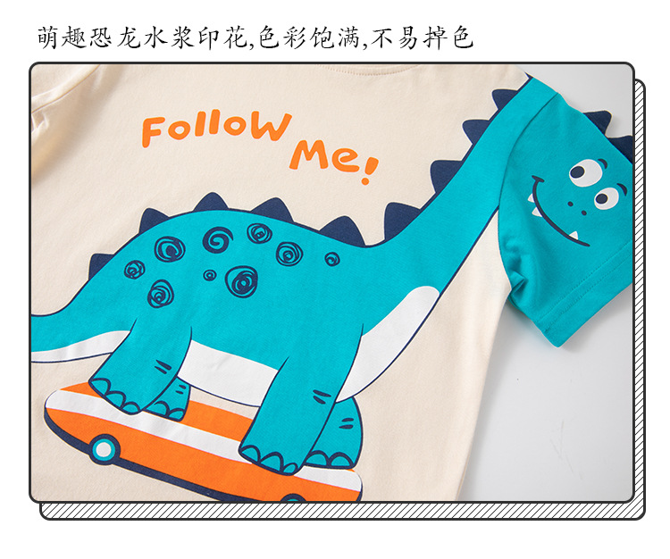 Ropa para niños coreanos verano transfronterizo dinosaurio tridimensional dibujos animados camiseta de manga corta para niños ropa para bebés al por mayor entrega de una pieza