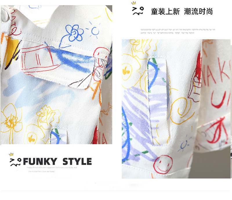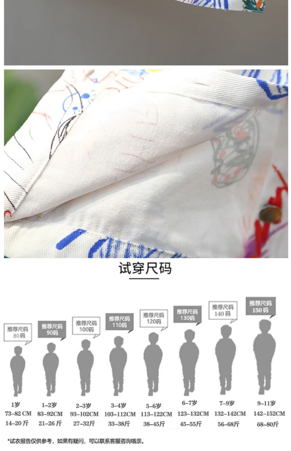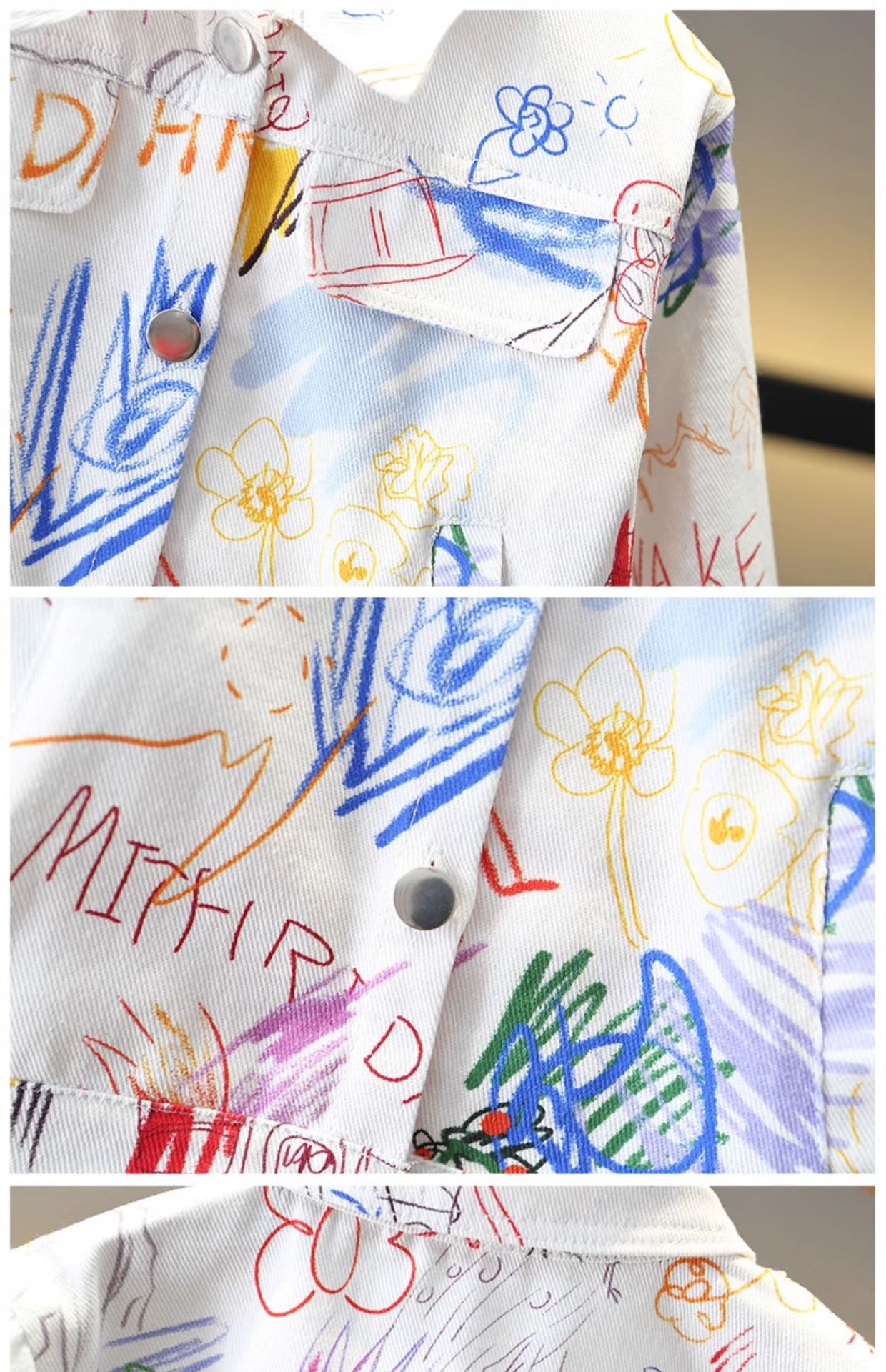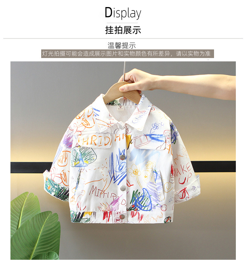 5867 Chaqueta de otoño para niños 2024 Chaqueta de mezclilla de graffiti de celebridades de Internet para niños Primavera y otoño Moda Fried Street