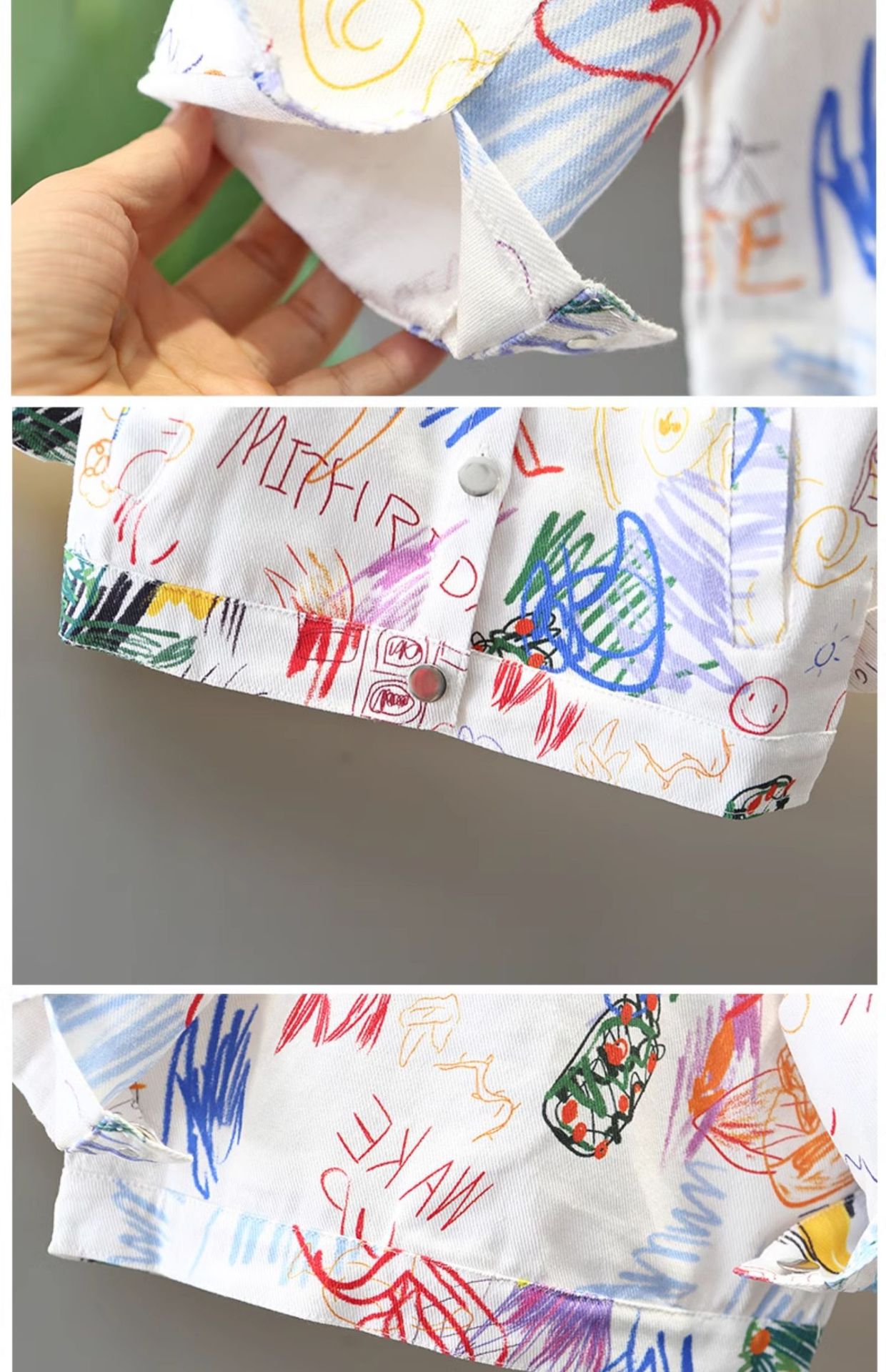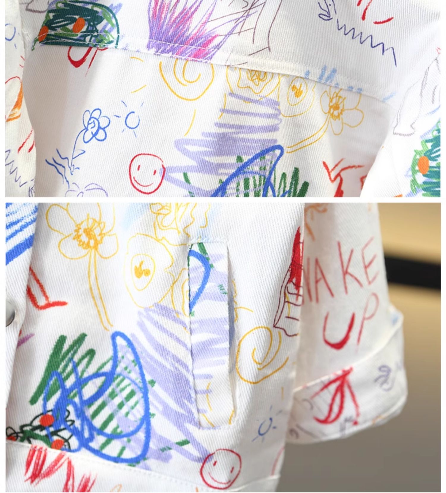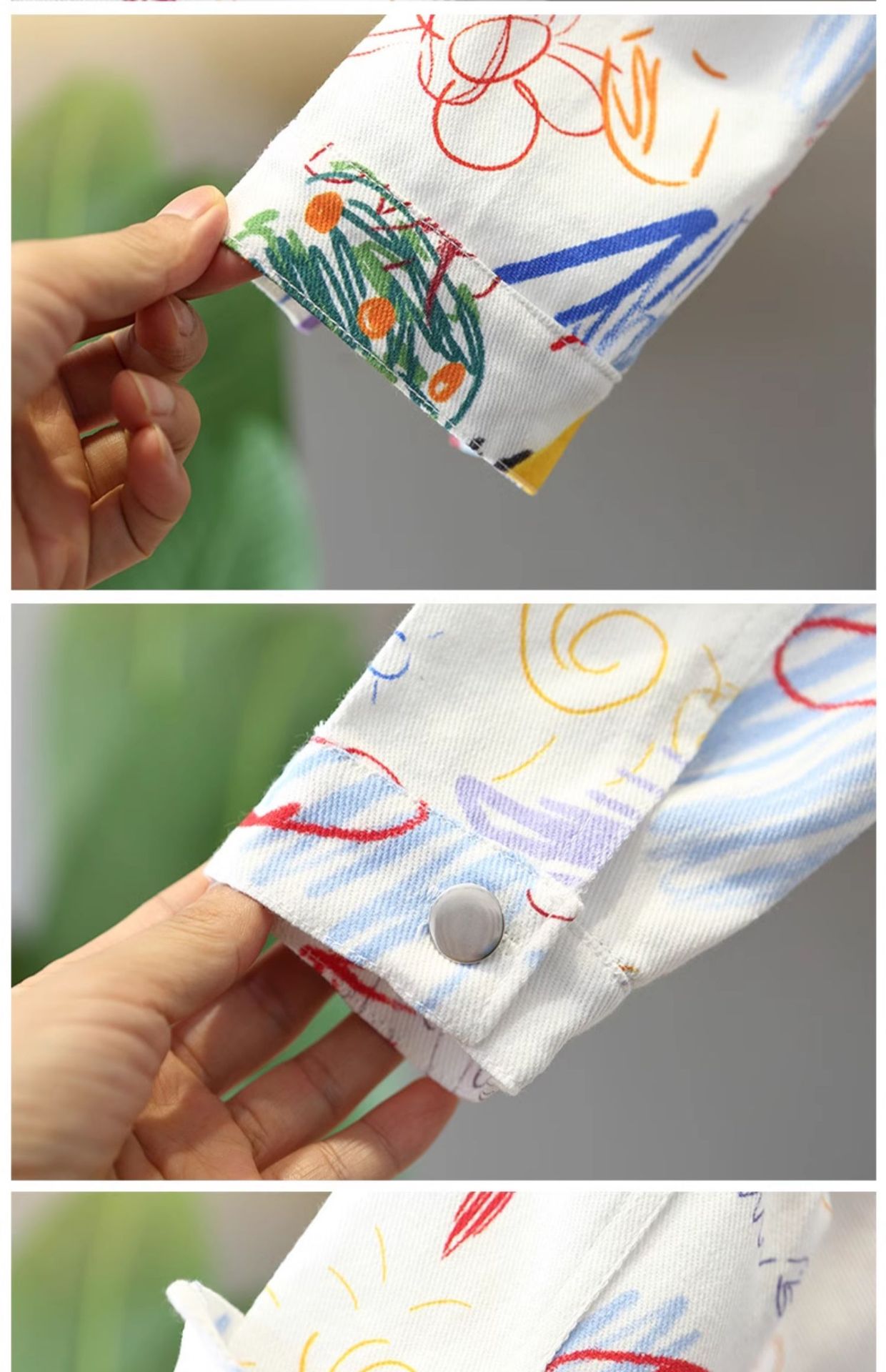 5867 Chaqueta de otoño para niños 2024 Chaqueta de mezclilla de graffiti de celebridades de Internet para niños Primavera y otoño Moda Fried Street